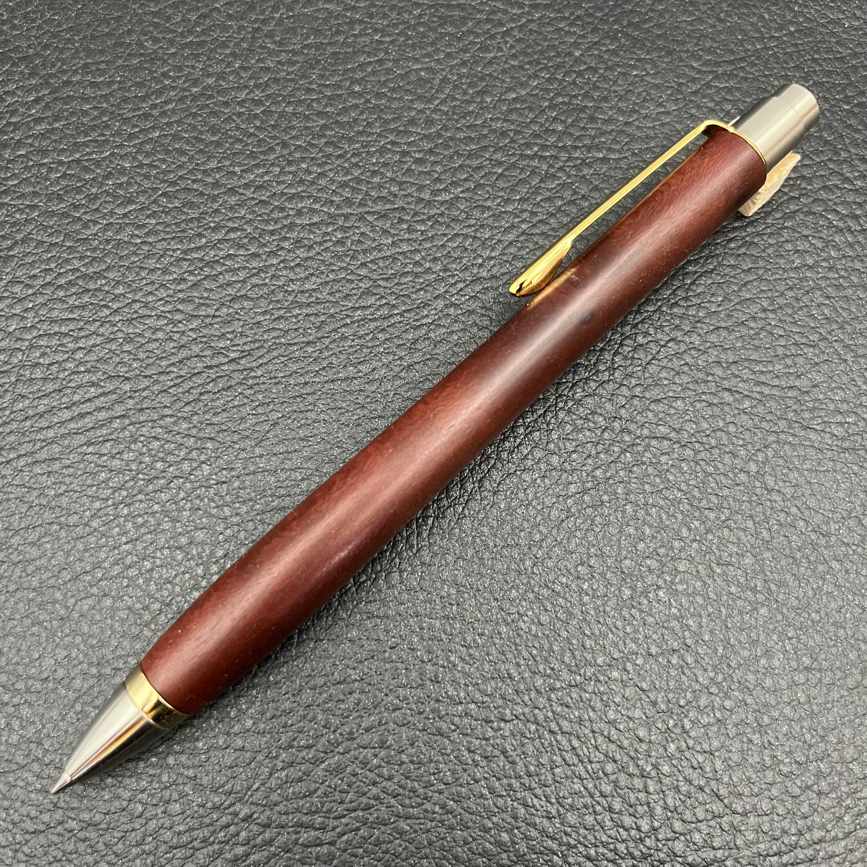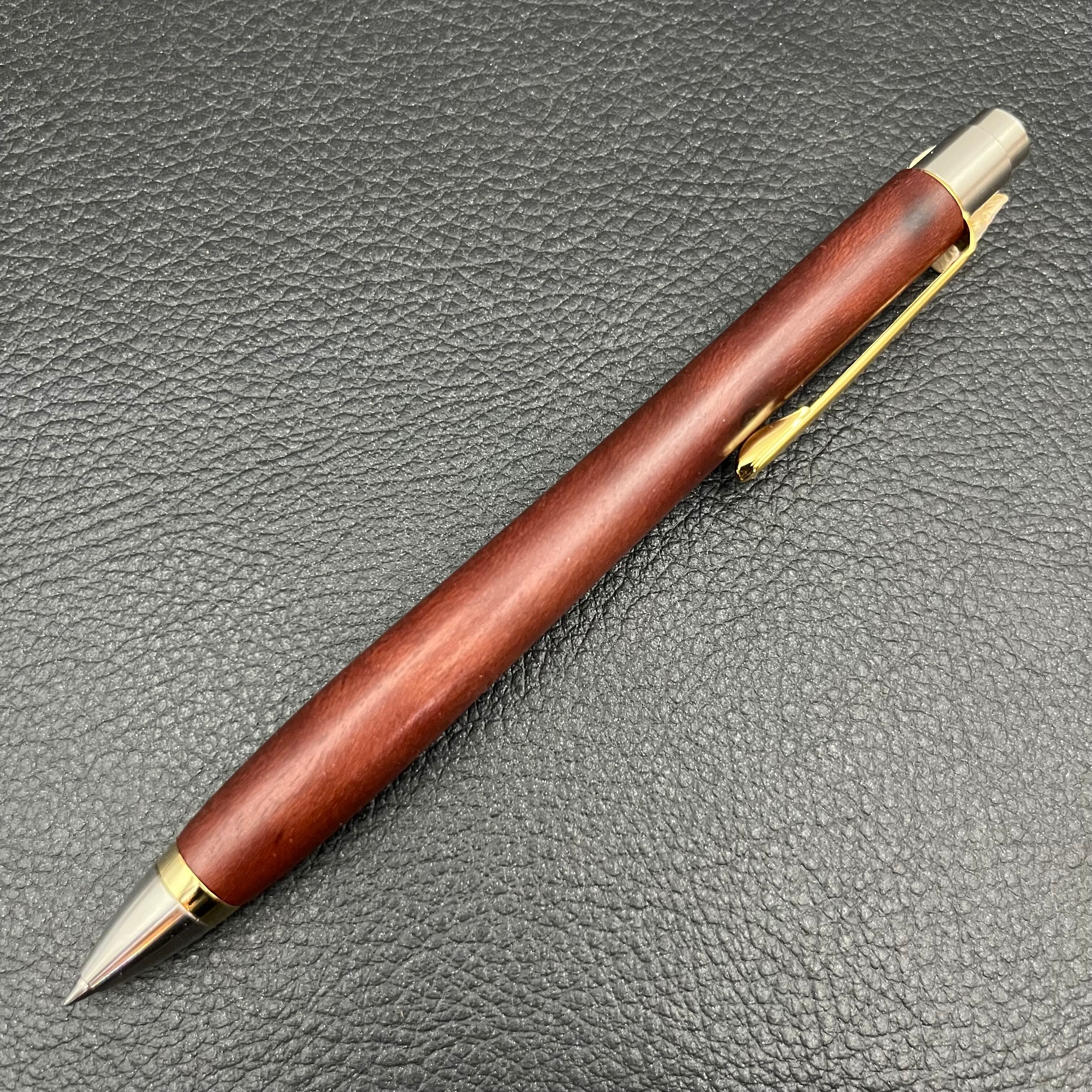 ・沖縄のアカギでペンを制作しました。日本では赤色の木は珍しく時間が経つと濃い茶色になります。