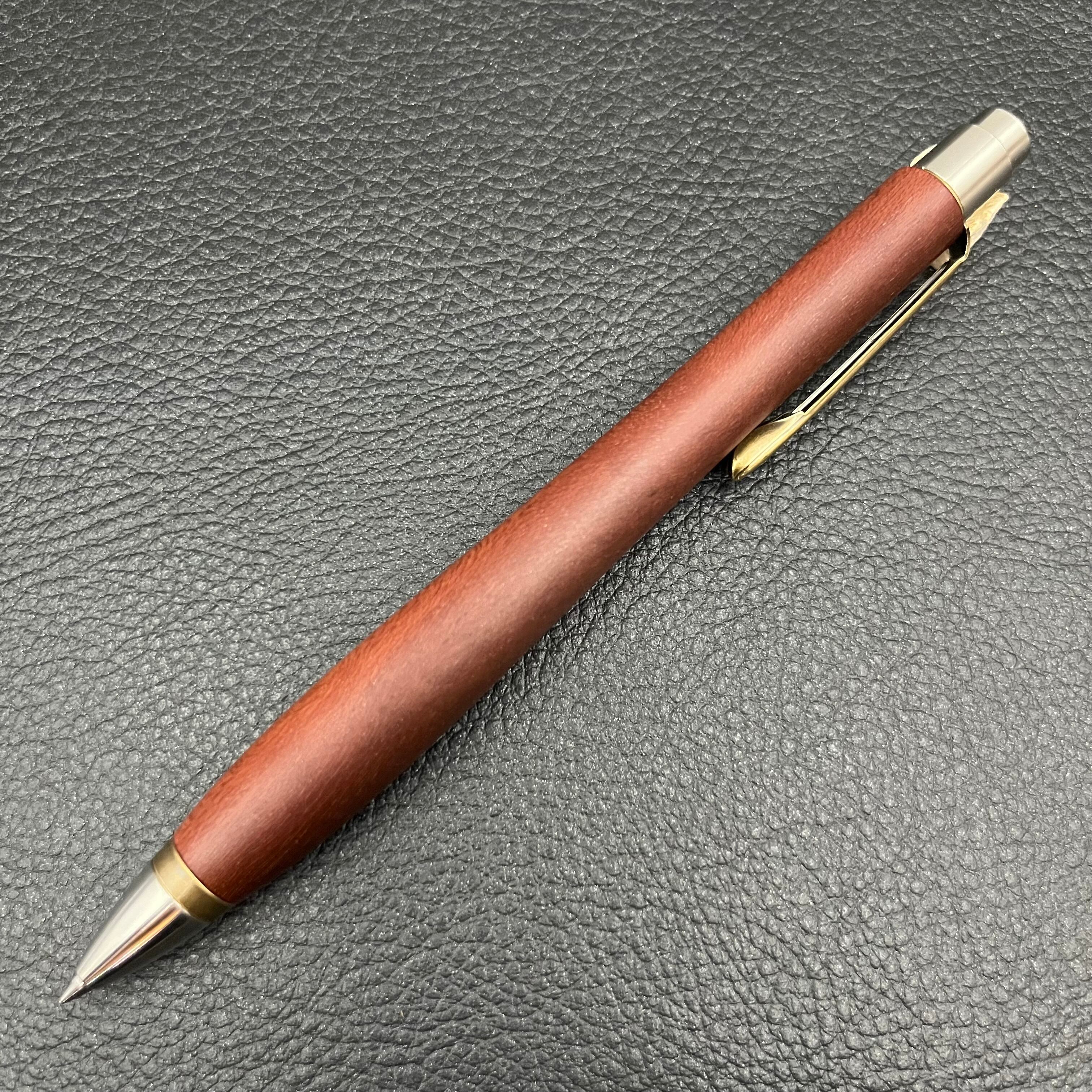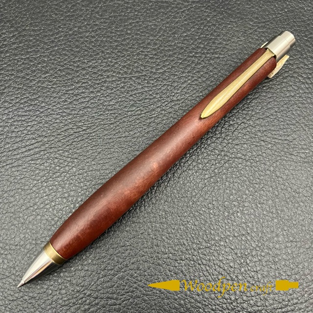 ・沖縄のアカギでペンを制作しました。日本では赤色の木は珍しく時間が経つと濃い茶色になります。
