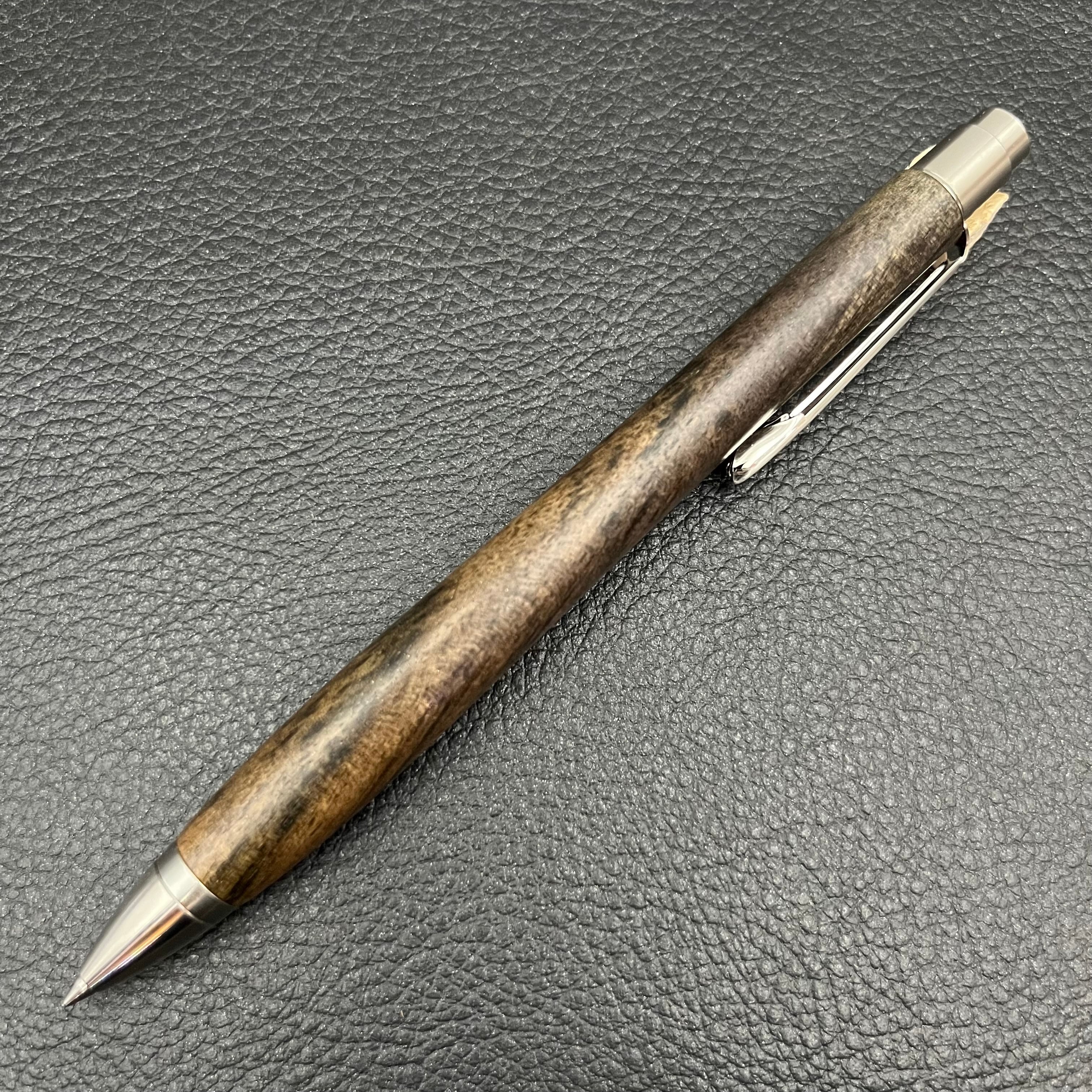 ボールペンのノックシステムは、ドイツ最高のクリックメカニズムを採用してあります。このメカニズムはユニークな機構のため、クリックしたときのカチカチ音が静かで、どんな場所でも気兼ねなく使うことができます。滑らかに動くこのプッシュ感覚を一度味わうと他には戻れなくなってしまうほどの魅力があります。 100分の1単位の加工精度で削り出されたペン先は、軸ブレも全くありません。