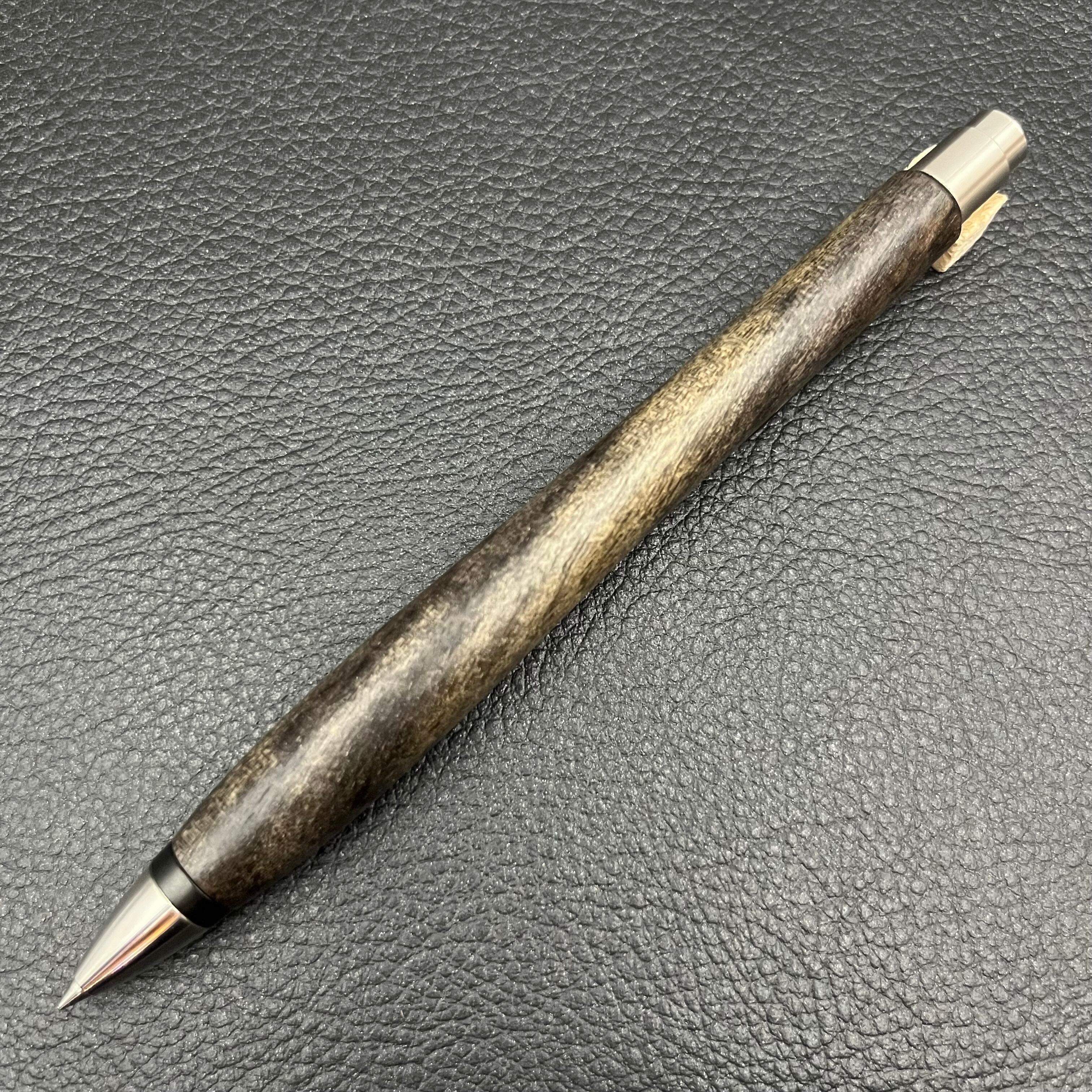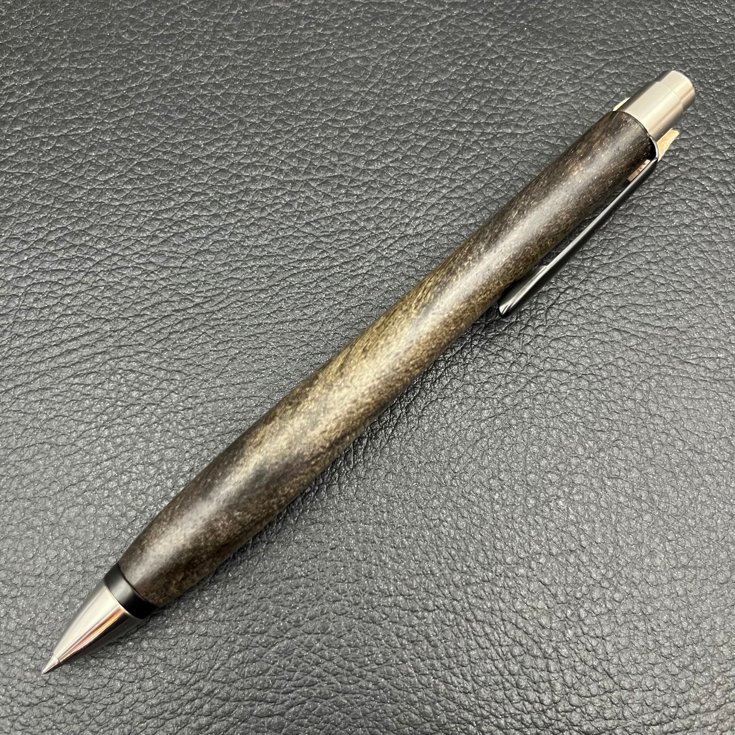 ボールペンのノックシステムは、ドイツ最高のクリックメカニズムを採用してあります。このメカニズムはユニークな機構のため、クリックしたときのカチカチ音が静かで、どんな場所でも気兼ねなく使うことができます。滑らかに動くこのプッシュ感覚を一度味わうと他には戻れなくなってしまうほどの魅力があります。 100分の1単位の加工精度で削り出されたペン先は、軸ブレも全くありません。