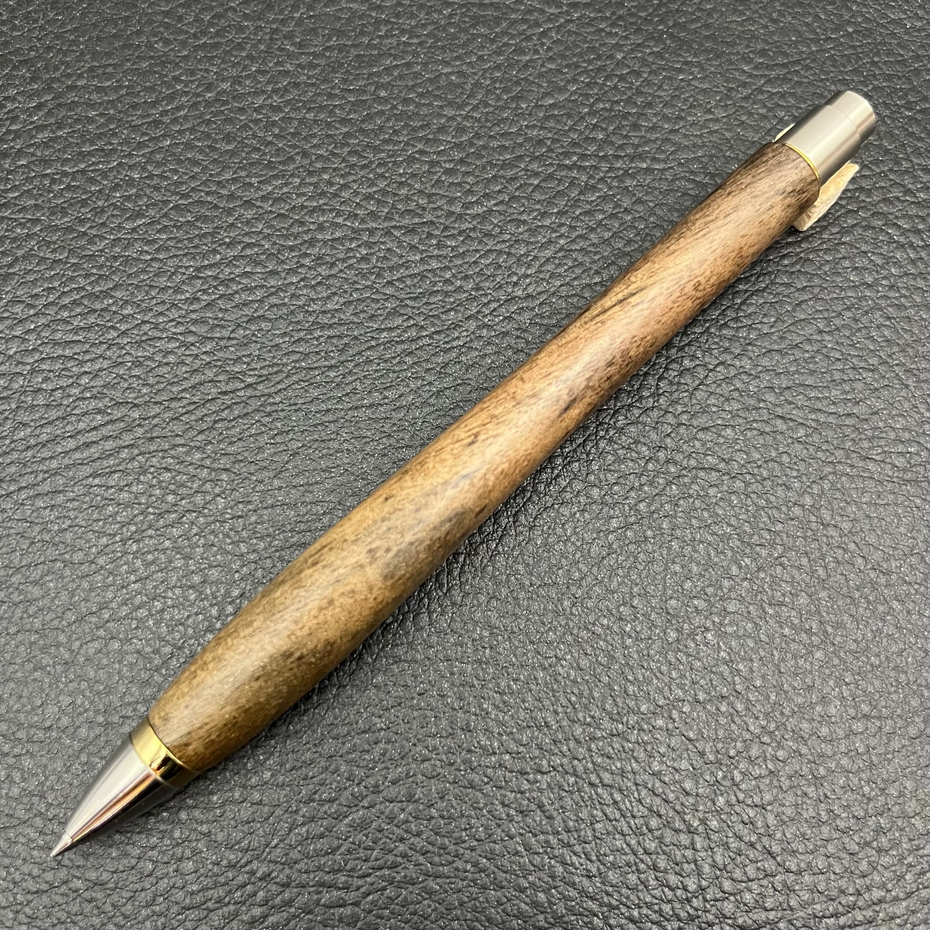 ボールペンのノックシステムは、ドイツ最高のクリックメカニズムを採用してあります。このメカニズムはユニークな機構のため、クリックしたときのカチカチ音が静かで、どんな場所でも気兼ねなく使うことができます。滑らかに動くこのプッシュ感覚を一度味わうと他には戻れなくなってしまうほどの魅力があります。 100分の1単位の加工精度で削り出されたペン先は、軸ブレも全くありません。