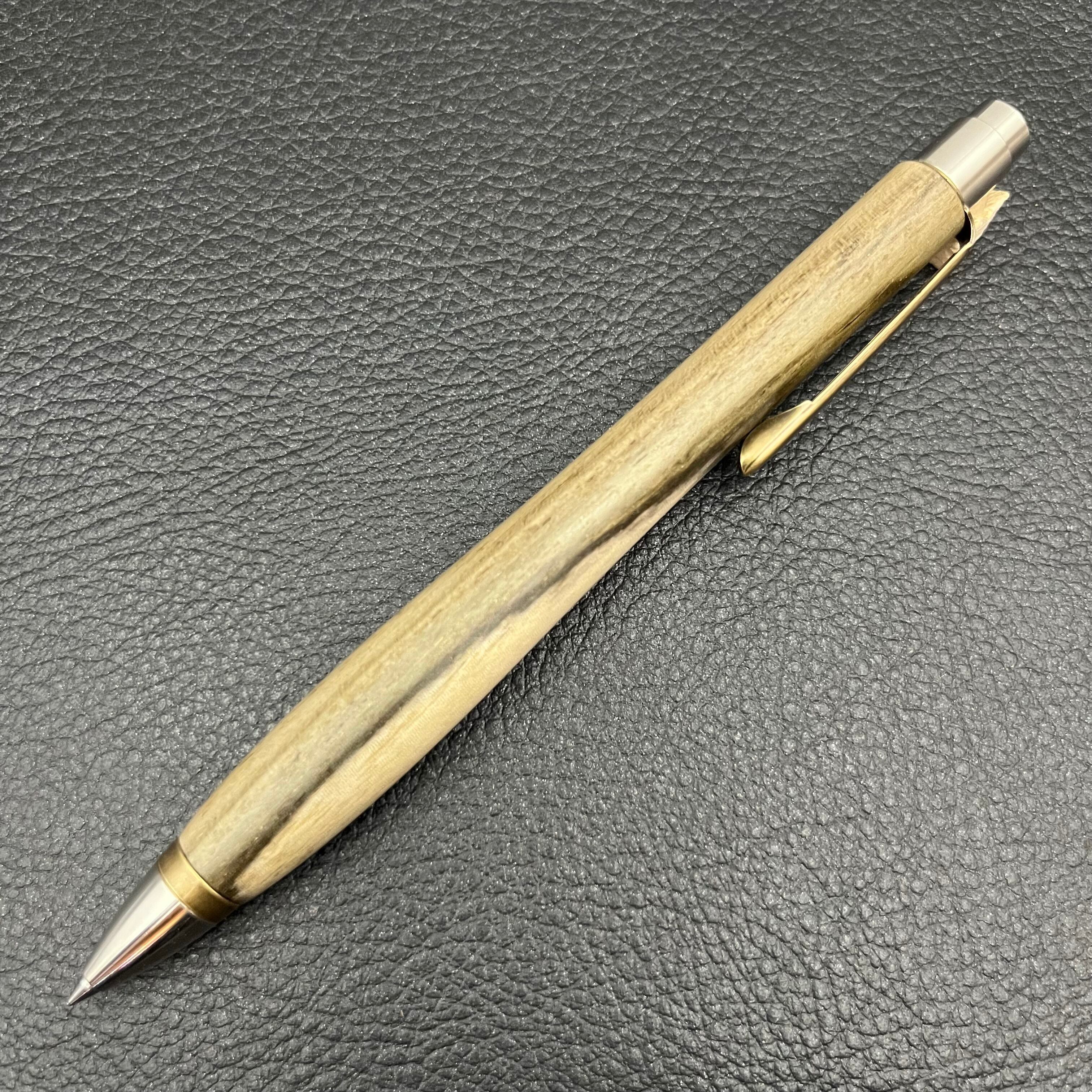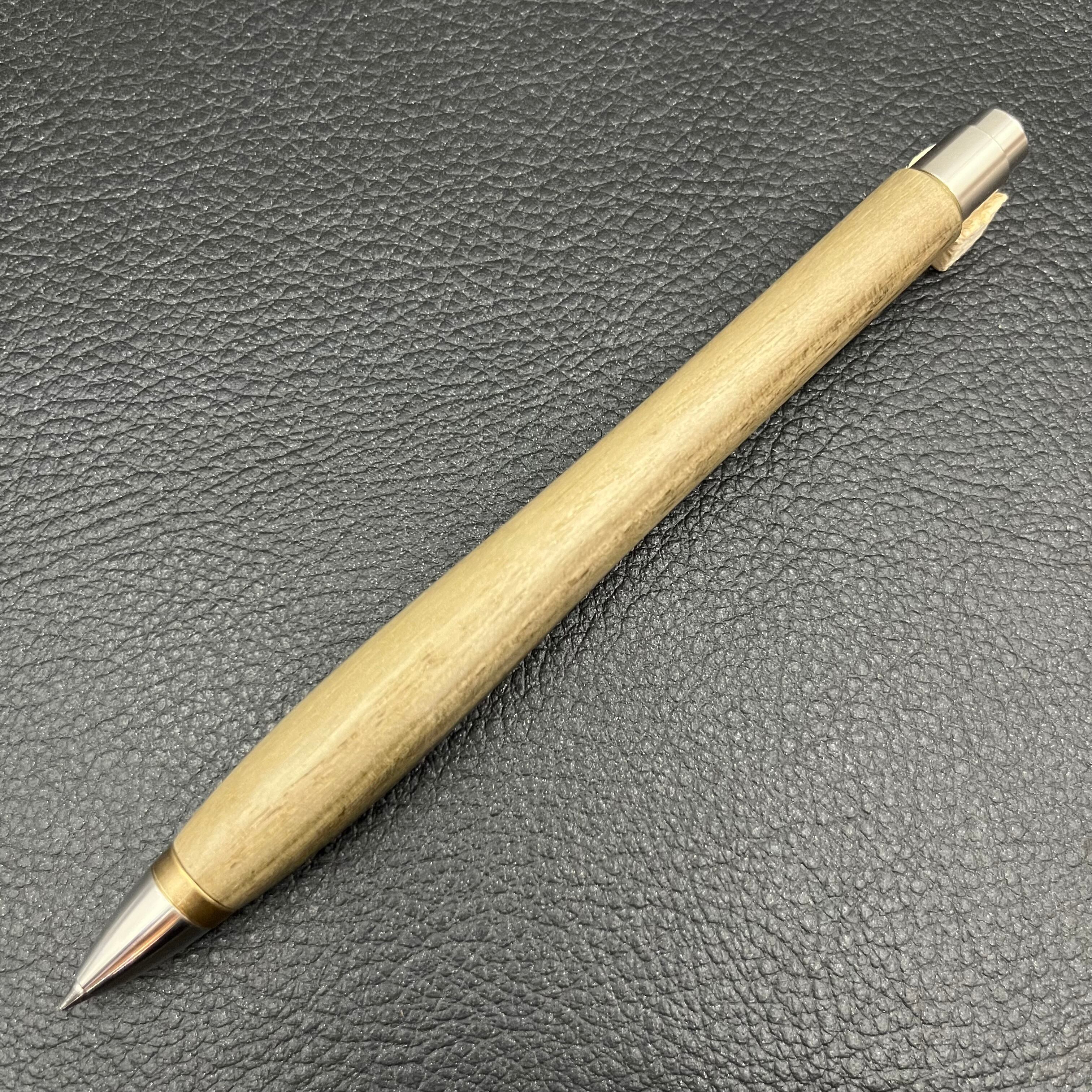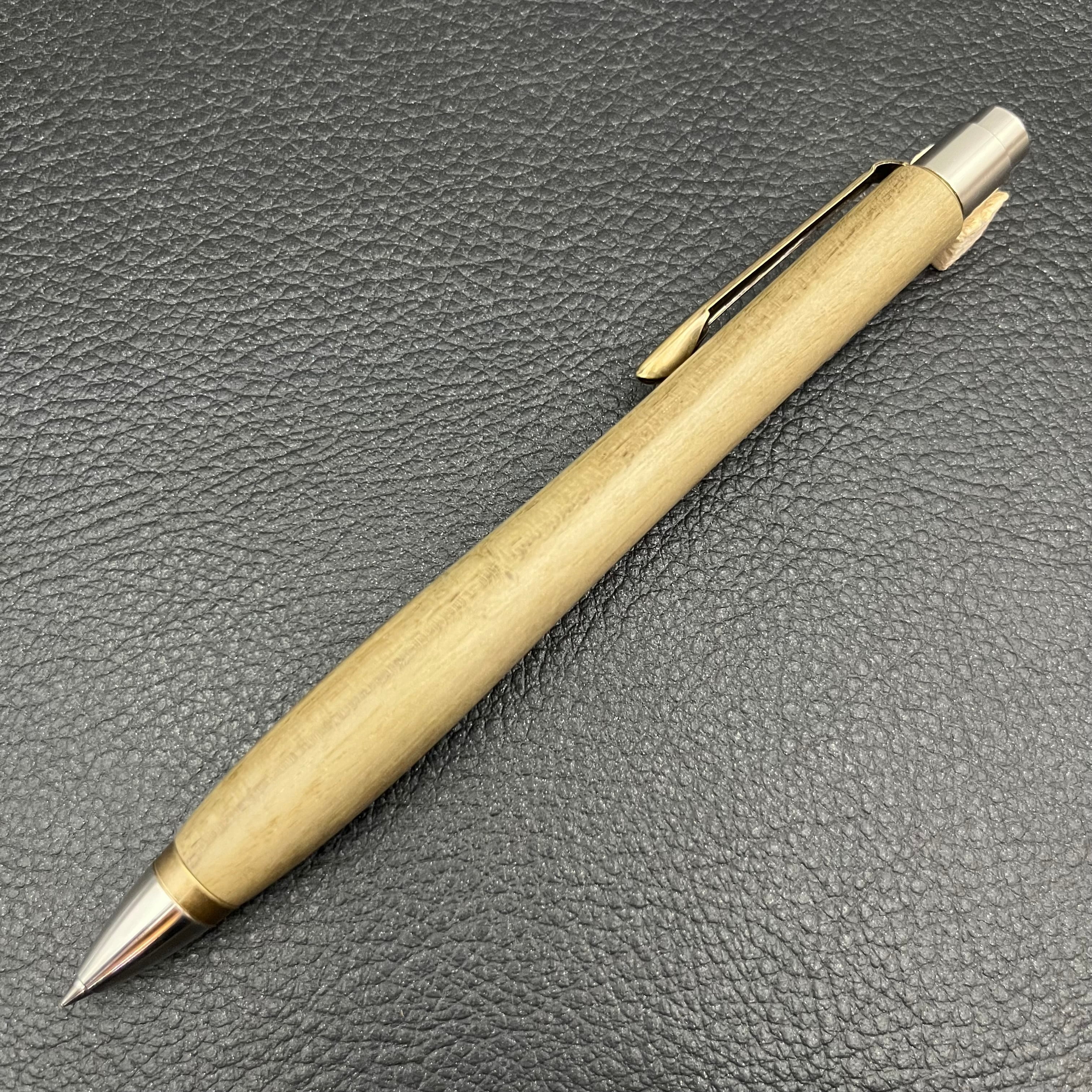 ボールペンのノックシステムは、ドイツ最高のクリックメカニズムを採用してあります。このメカニズムはユニークな機構のため、クリックしたときのカチカチ音が静かで、どんな場所でも気兼ねなく使うことができます。滑らかに動くこのプッシュ感覚を一度味わうと他には戻れなくなってしまうほどの魅力があります。 100分の1単位の加工精度で削り出されたペン先は、軸ブレも全くありません。