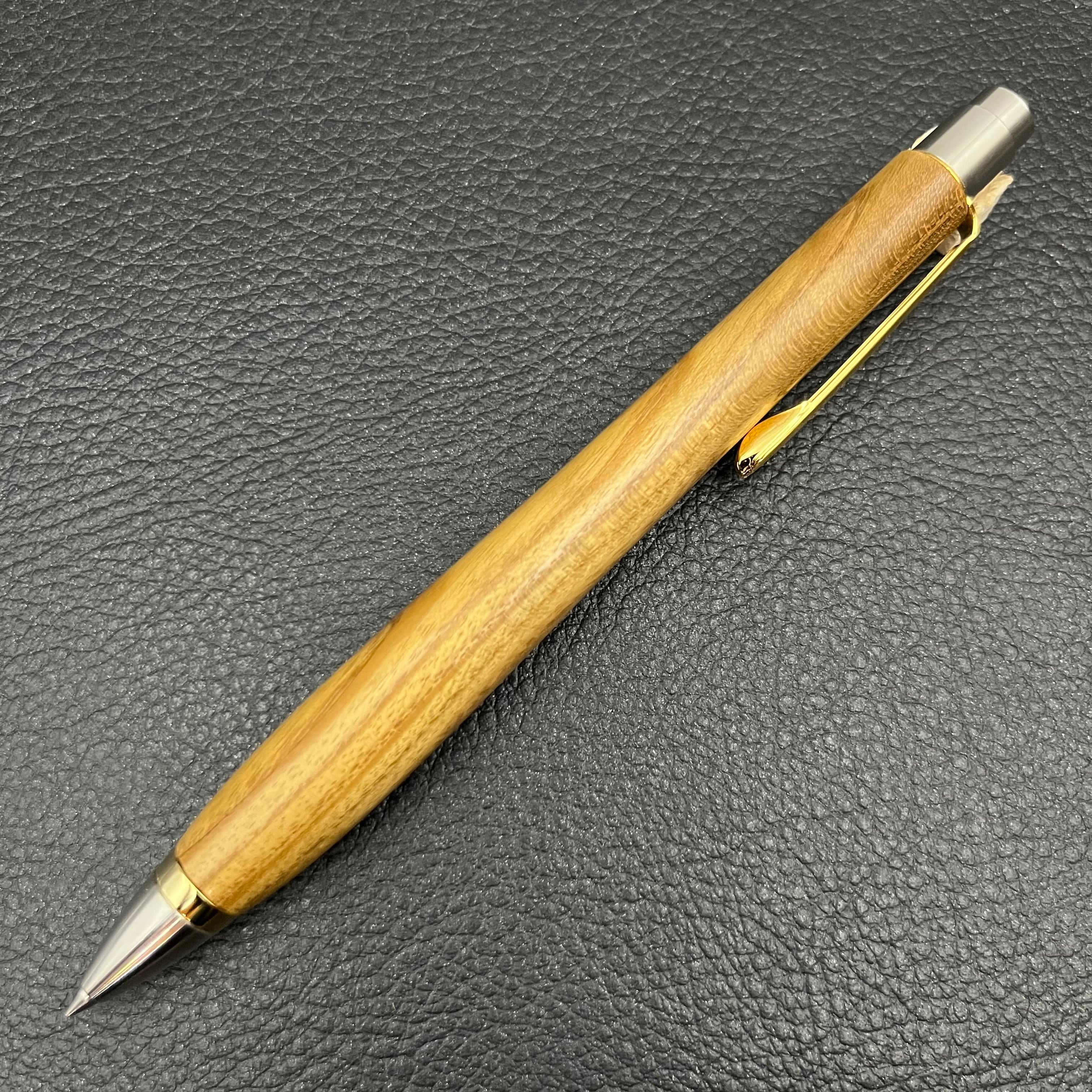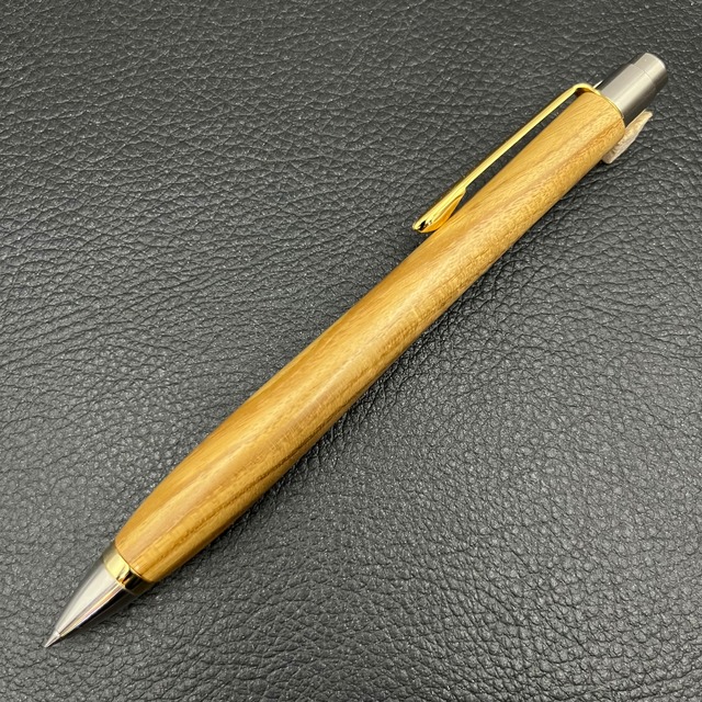 ボールペンのノックシステムは、ドイツ最高のクリックメカニズムを採用してあります。このメカニズムはユニークな機構のため、クリックしたときのカチカチ音が静かで、どんな場所でも気兼ねなく使うことができます。滑らかに動くこのプッシュ感覚を一度味わうと他には戻れなくなってしまうほどの魅力があります。 100分の1単位の加工精度で削り出されたペン先は、軸ブレも全くありません。