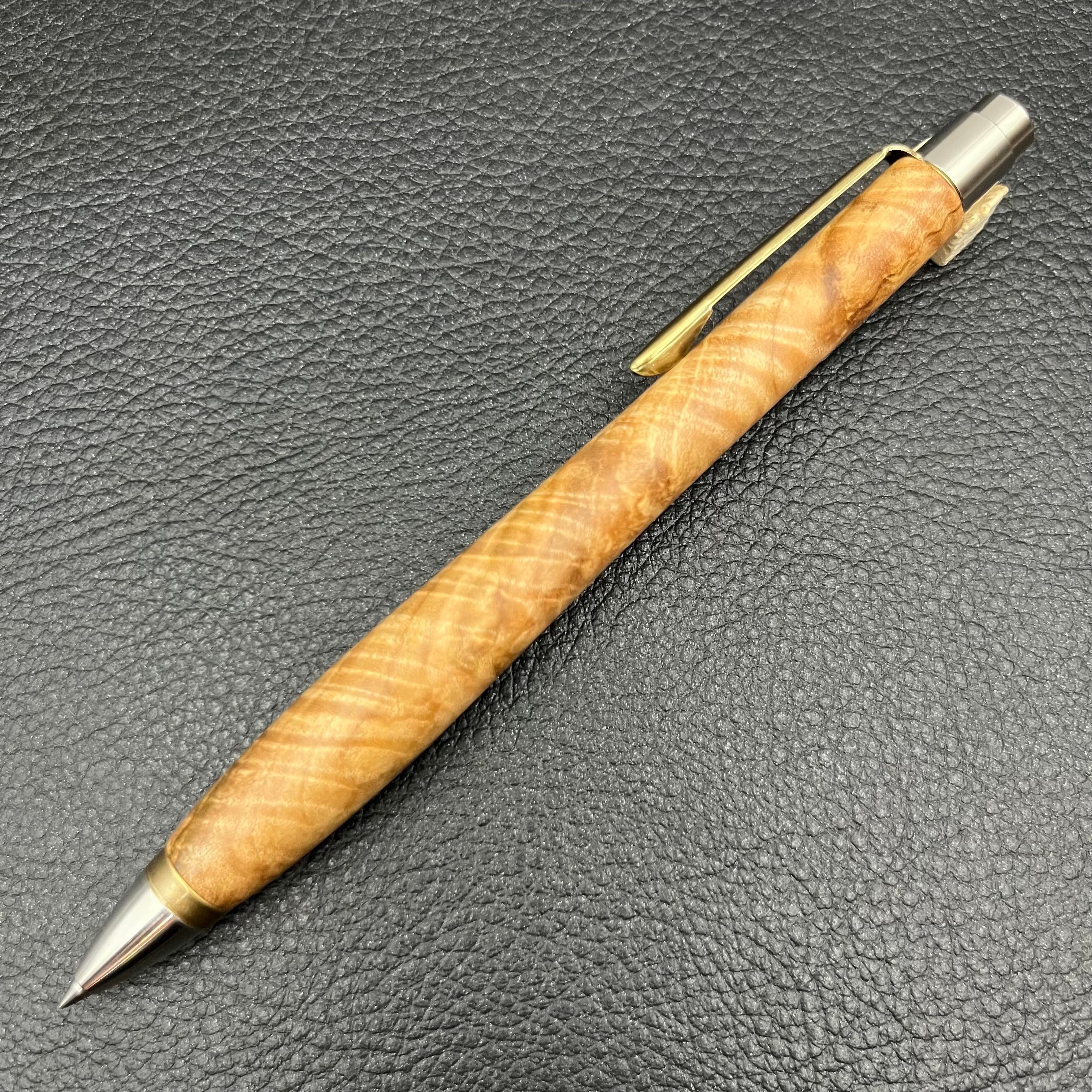 ボールペンのノックシステムは、ドイツ最高のクリックメカニズムを採用してあります。このメカニズムはユニークな機構のため、クリックしたときのカチカチ音が静かで、どんな場所でも気兼ねなく使うことができます。滑らかに動くこのプッシュ感覚を一度味わうと他には戻れなくなってしまうほどの魅力があります。 100分の1単位の加工精度で削り出されたペン先は、軸ブレも全くありません。