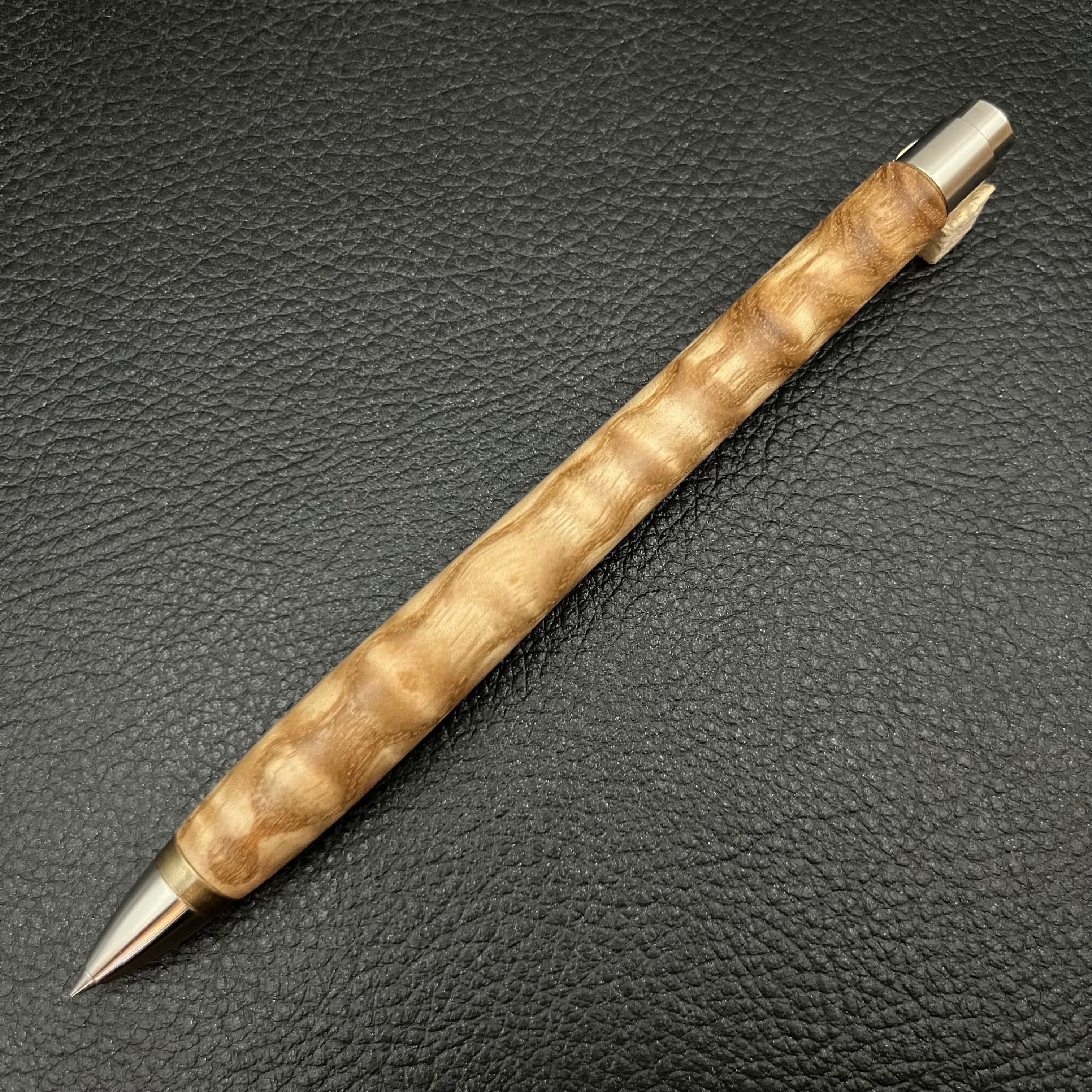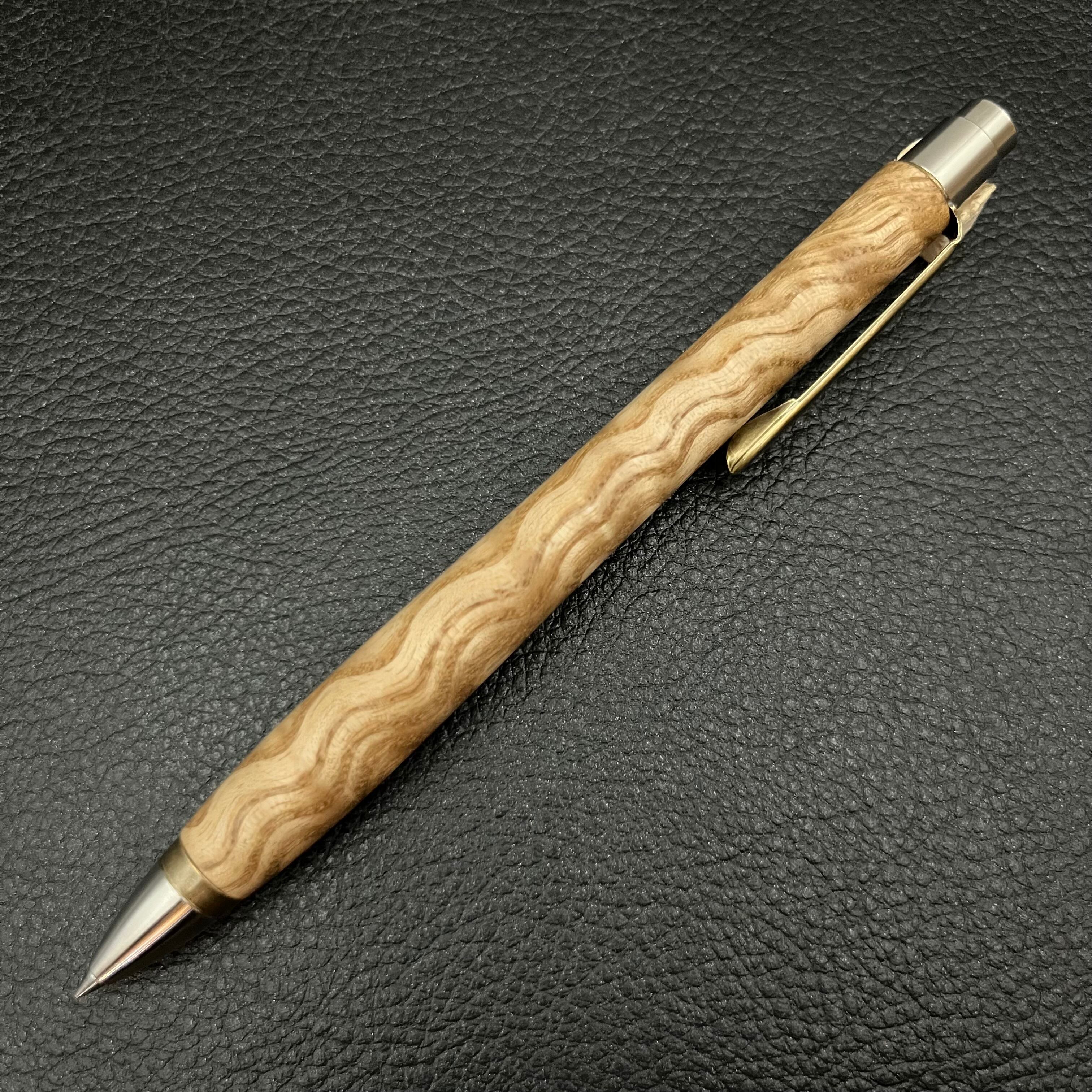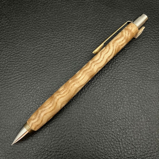 ボールペンのノックシステムは、ドイツ最高のクリックメカニズムを採用してあります。このメカニズムはユニークな機構のため、クリックしたときのカチカチ音が静かで、どんな場所でも気兼ねなく使うことができます。滑らかに動くこのプッシュ感覚を一度味わうと他には戻れなくなってしまうほどの魅力があります。 100分の1単位の加工精度で削り出されたペン先は、軸ブレも全くありません。