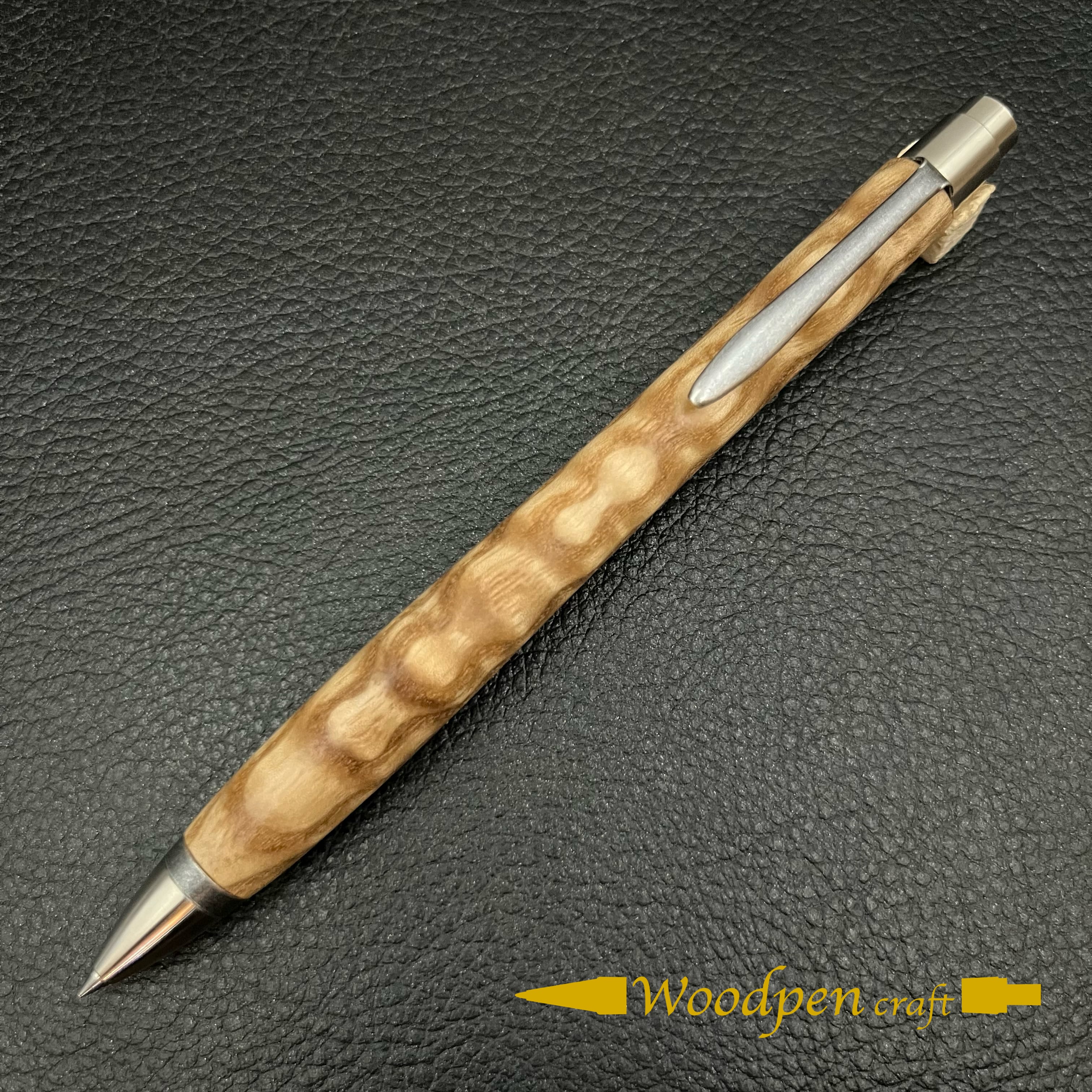 ボールペンのノックシステムは、ドイツ最高のクリックメカニズムを採用してあります。このメカニズムはユニークな機構のため、クリックしたときのカチカチ音が静かで、どんな場所でも気兼ねなく使うことができます。滑らかに動くこのプッシュ感覚を一度味わうと他には戻れなくなってしまうほどの魅力があります。 100分の1単位の加工精度で削り出されたペン先は、軸ブレも全くありません。