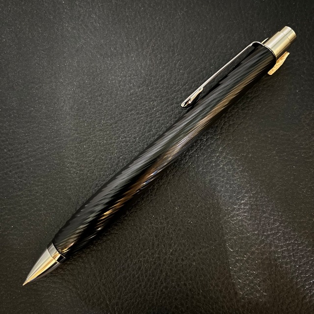 ボールペンのノックシステムは、ドイツ最高のクリックメカニズムを採用してあります。このメカニズムはユニークな機構のため、クリックしたときのカチカチ音が静かで、どんな場所でも気兼ねなく使うことができます。滑らかに動くこのプッシュ感覚を一度味わうと他には戻れなくなってしまうほどの魅力があります。 100分の1単位の加工精度で削り出されたペン先は、軸ブレも全くありません。