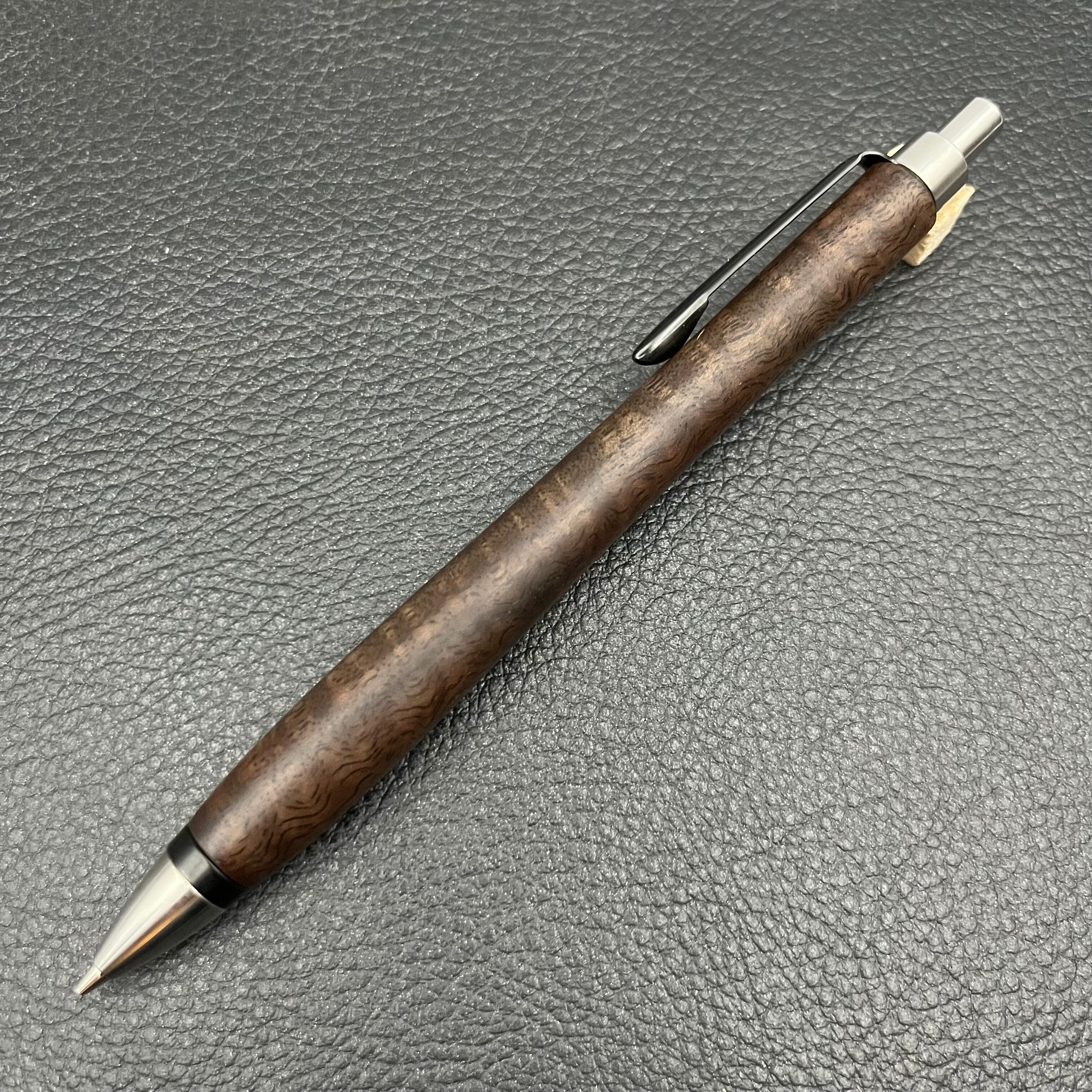 ペンシルは軸ブレが起こりにくい固定式口金を採用し、木の表情を最大限に楽しめる木軸の長さと、書き心地にこだわったバランスで金具を設計してあります。