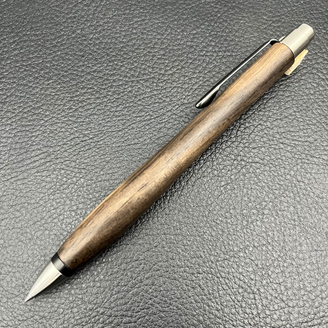 ボールペンのノックシステムは、ドイツ最高のクリックメカニズムを採用してあります。このメカニズムはユニークな機構のため、クリックしたときのカチカチ音が静かで、どんな場所でも気兼ねなく使うことができます。滑らかに動くこのプッシュ感覚を一度味わうと他には戻れなくなってしまうほどの魅力があります。 100分の1単位の加工精度で削り出されたペン先は、軸ブレも全くありません。