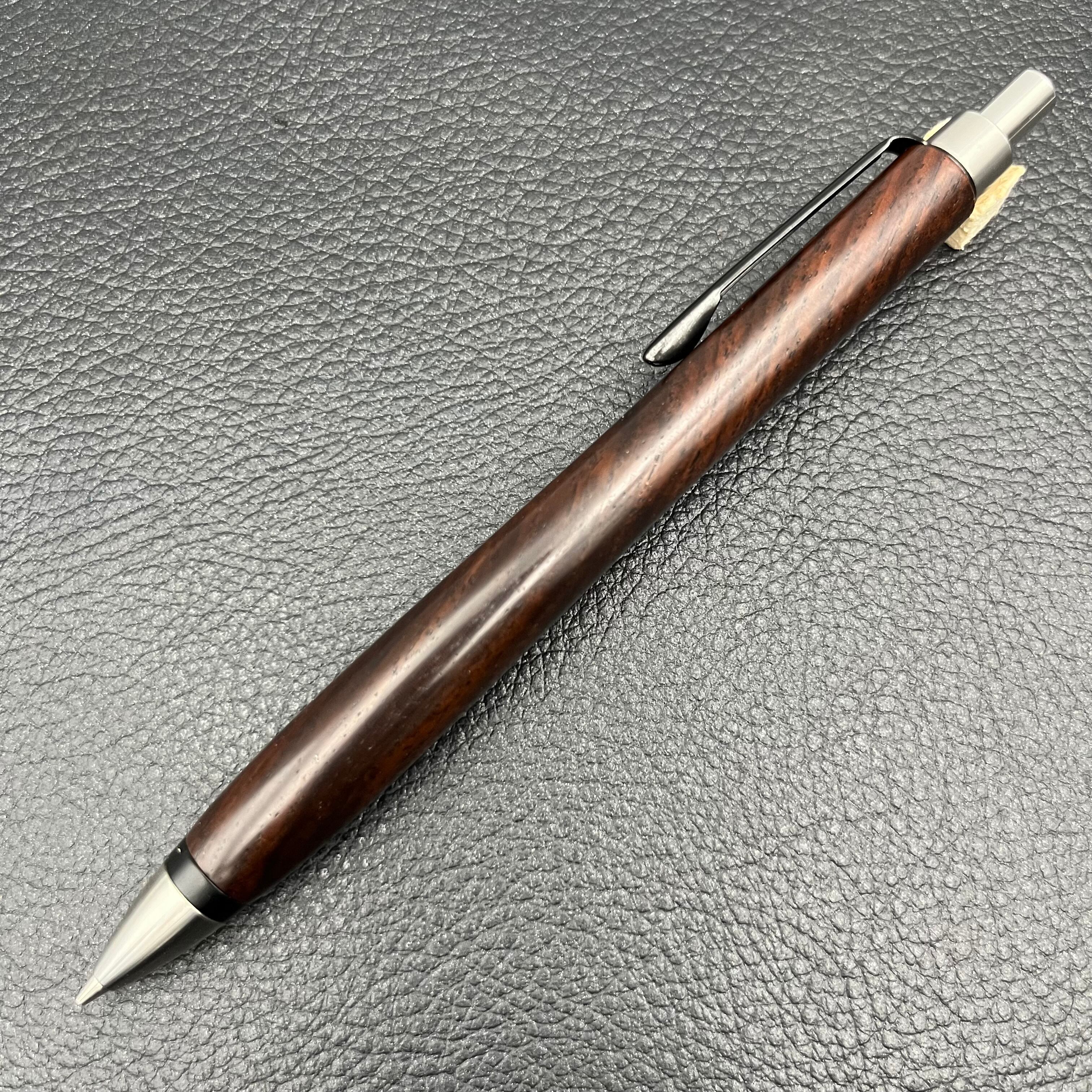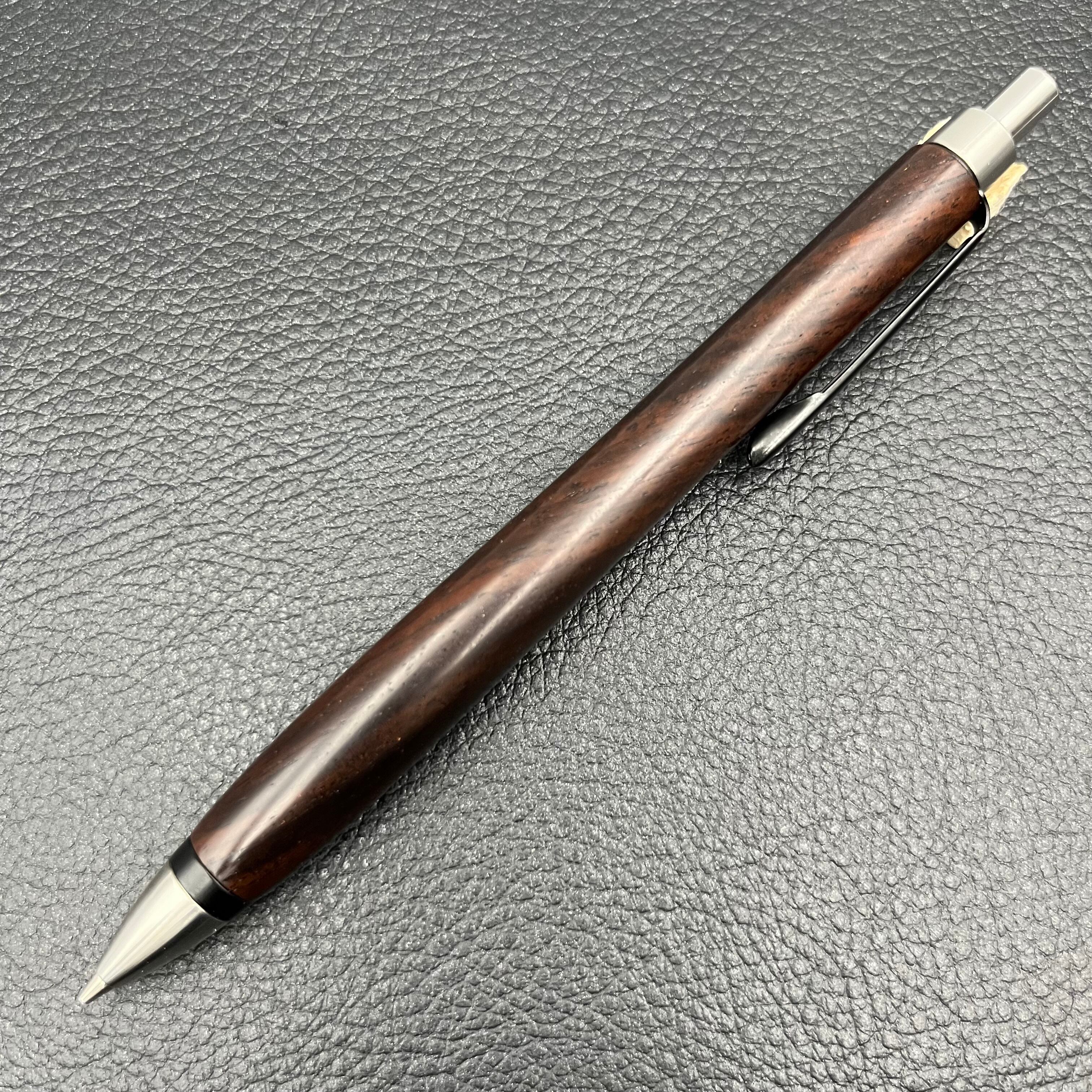 ペンシルは軸ブレが起こりにくい固定式口金を採用し、木の表情を最大限に楽しめる木軸の長さと、書き心地にこだわったバランスで金具を設計してあります。