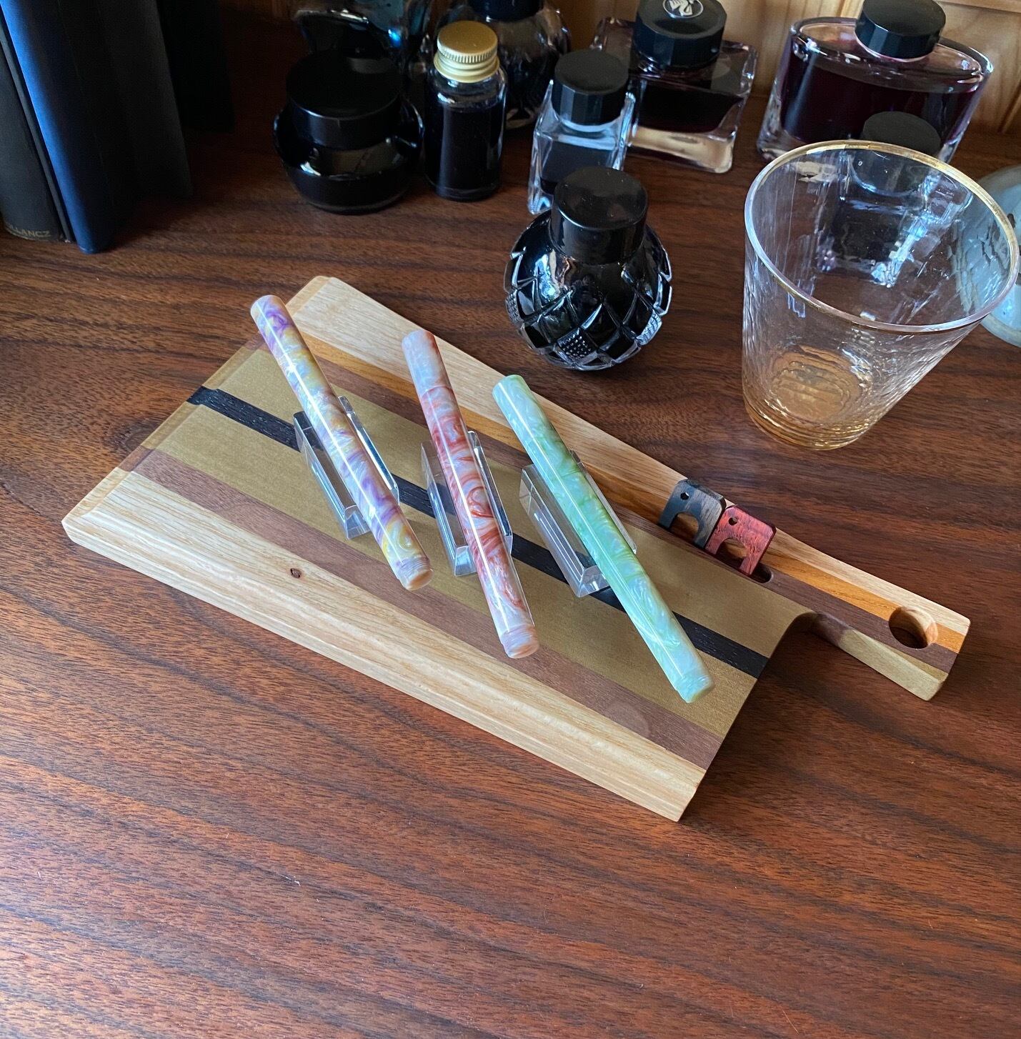 金具職人さんが万年筆「粋」の制作で得た樹脂加工の技術と知識を活かして制作したこだわりの1本です。オリジナルアクリル透明ペン置きもセットになっています。