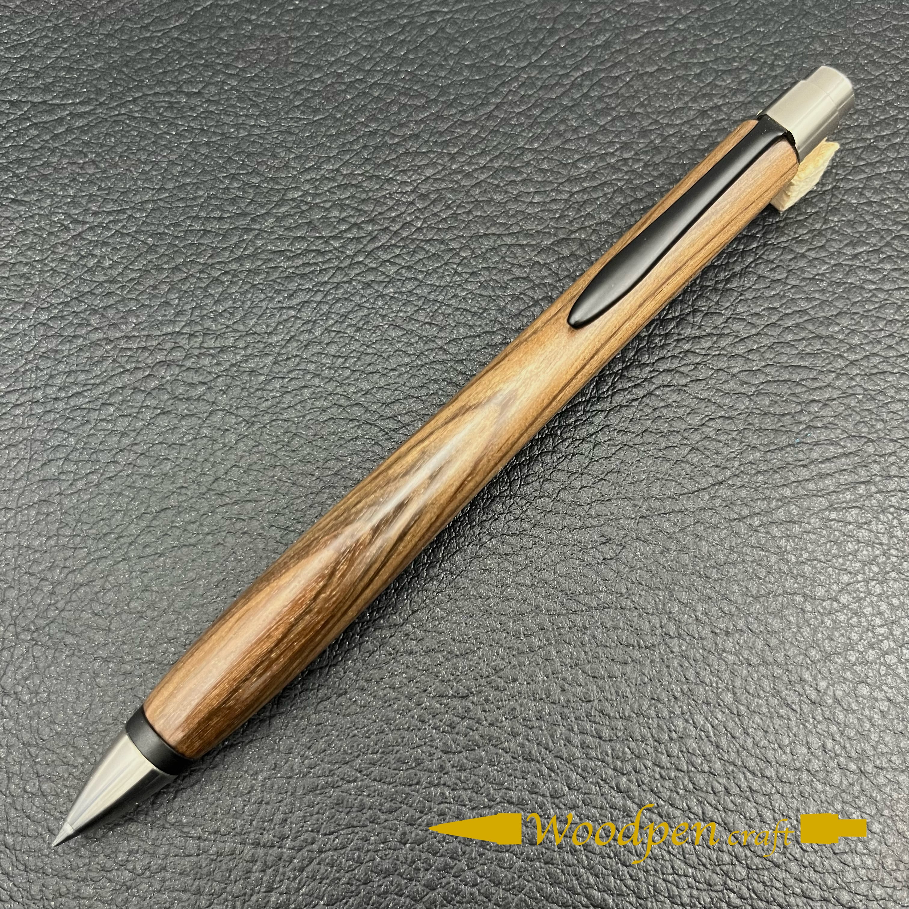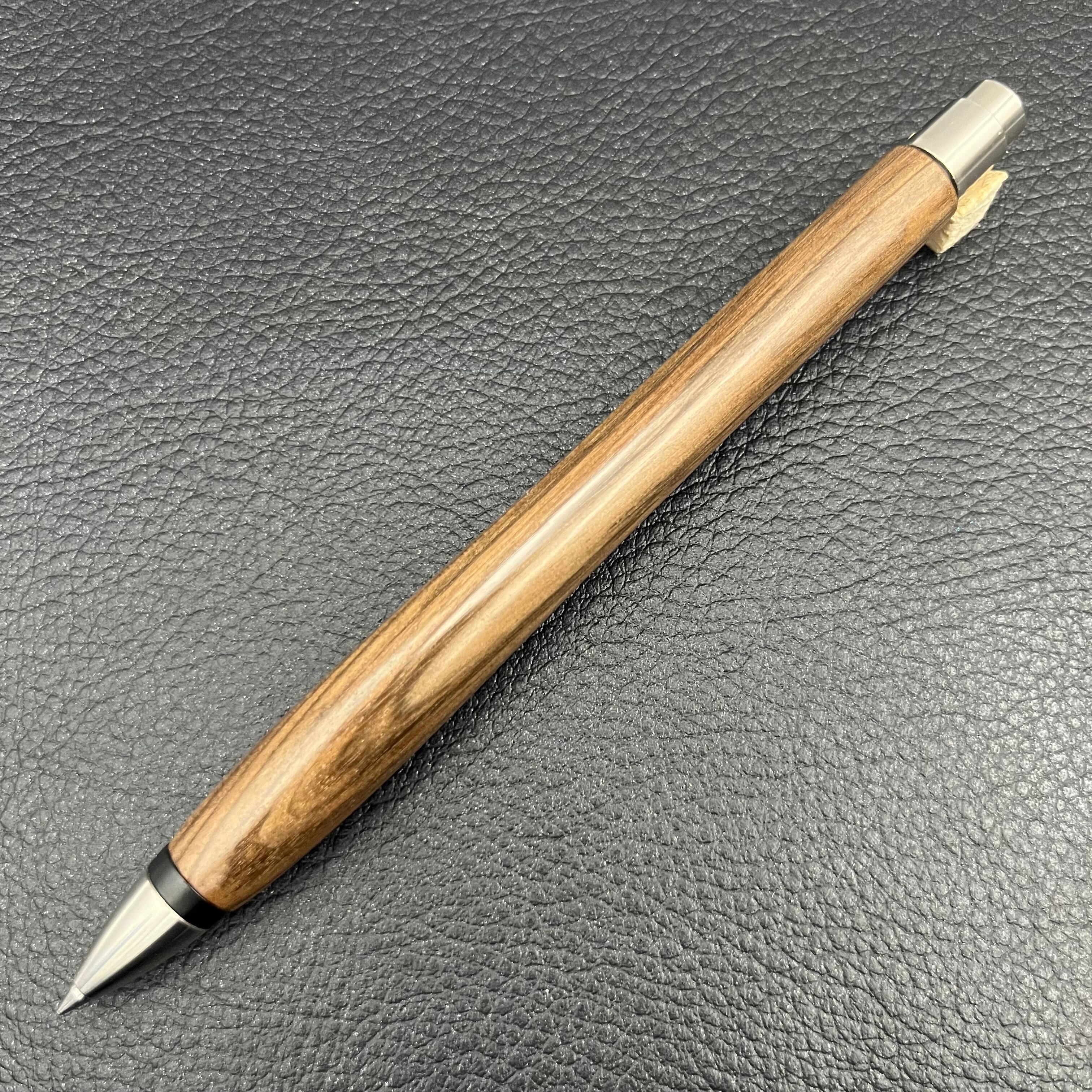 ボールペンのノックシステムは、ドイツ最高のクリックメカニズムを採用してあります。このメカニズムはユニークな機構のため、クリックしたときのカチカチ音が静かで、どんな場所でも気兼ねなく使うことができます。滑らかに動くこのプッシュ感覚を一度味わうと他には戻れなくなってしまうほどの魅力があります。 100分の1単位の加工精度で削り出されたペン先は、軸ブレも全くありません。