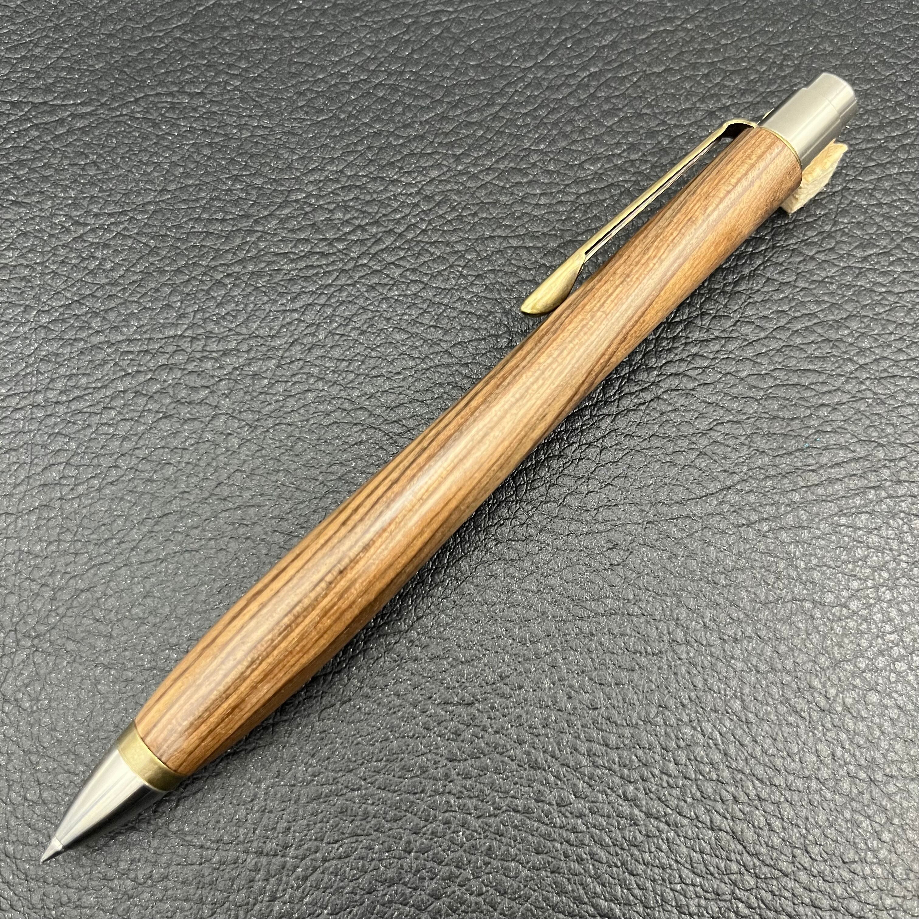 ボールペンのノックシステムは、ドイツ最高のクリックメカニズムを採用してあります。このメカニズムはユニークな機構のため、クリックしたときのカチカチ音が静かで、どんな場所でも気兼ねなく使うことができます。滑らかに動くこのプッシュ感覚を一度味わうと他には戻れなくなってしまうほどの魅力があります。 100分の1単位の加工精度で削り出されたペン先は、軸ブレも全くありません。