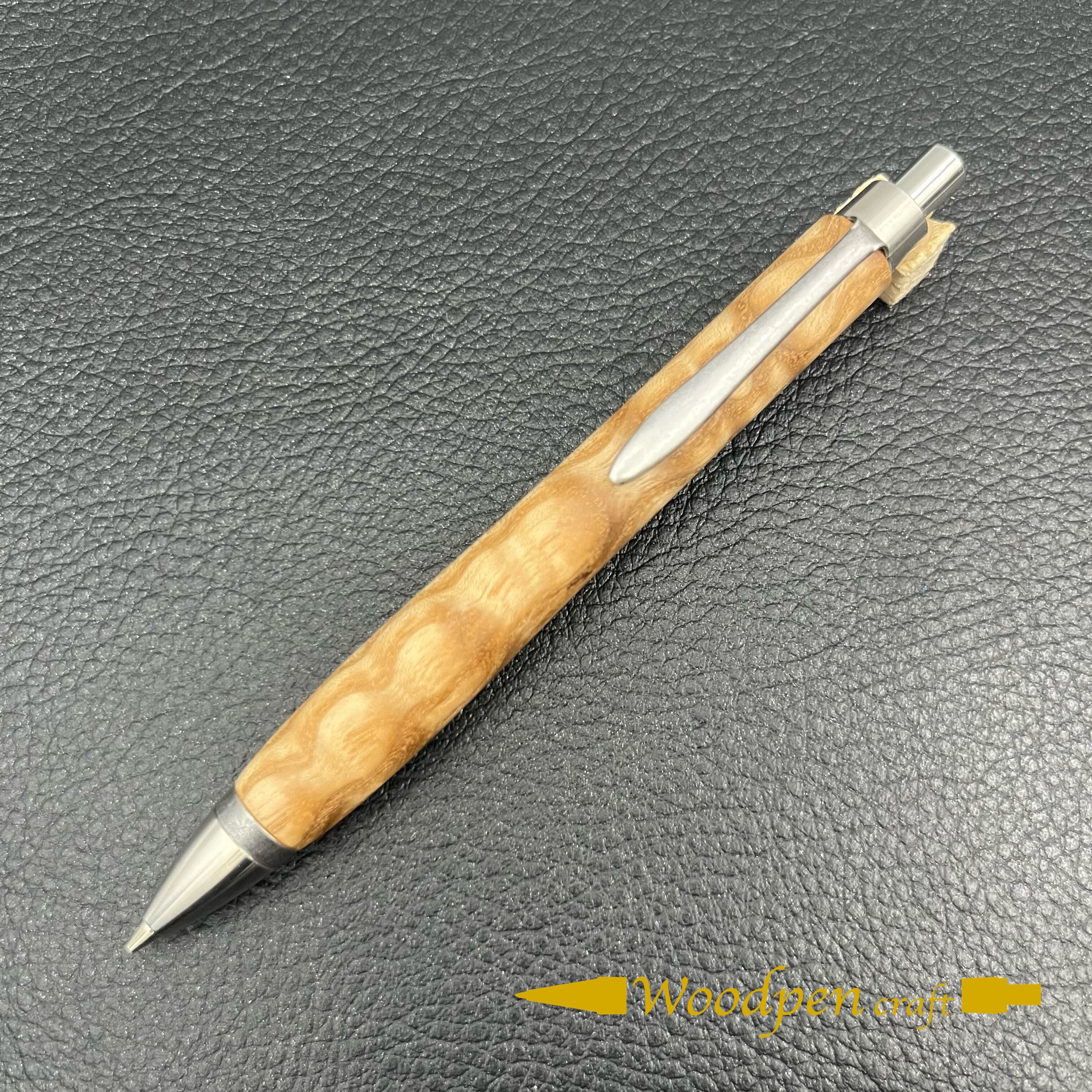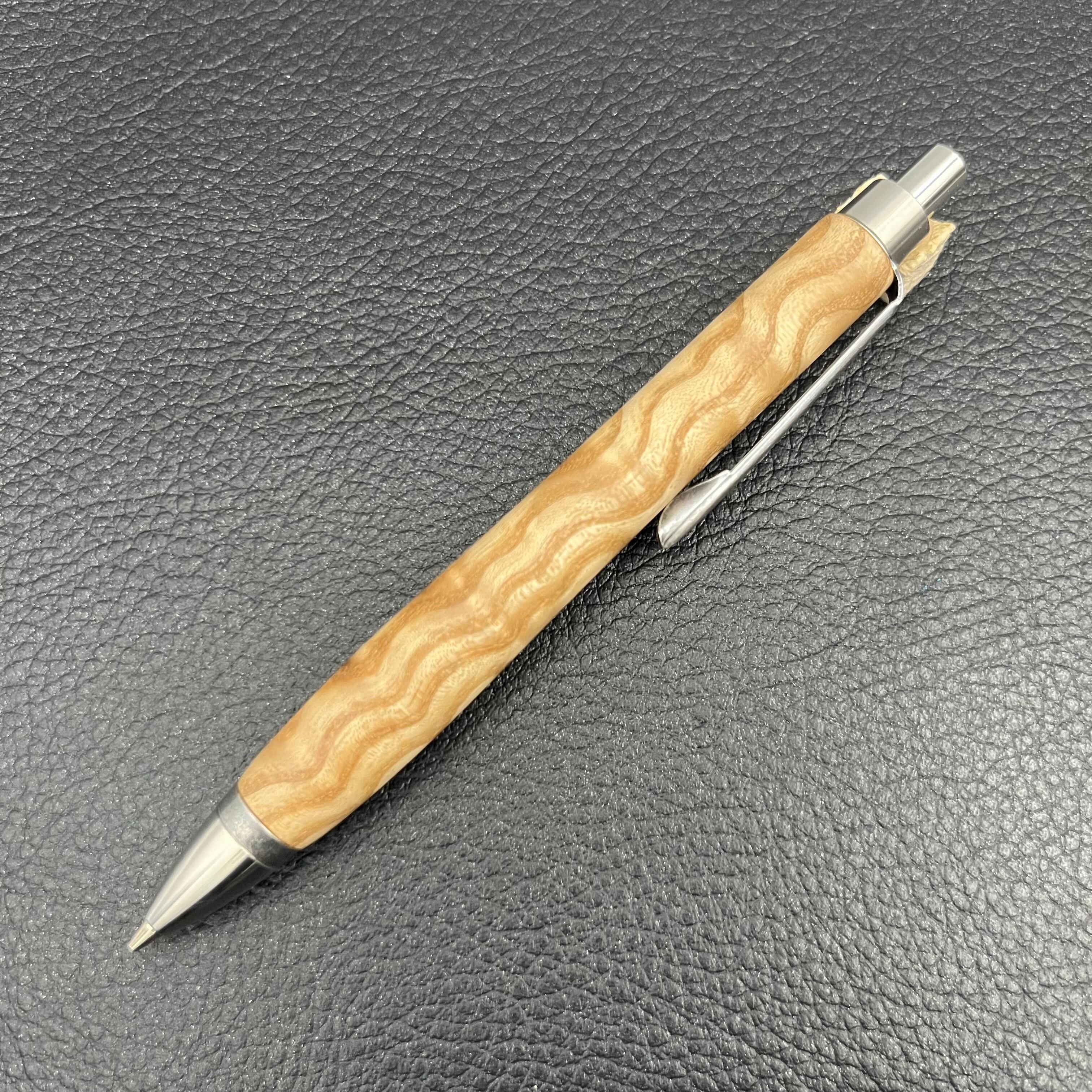 ペンシルは軸ブレが起こりにくい固定式口金を採用し、木の表情を最大限に楽しめる木軸の長さと、書き心地にこだわったバランスで金具を設計してあります。