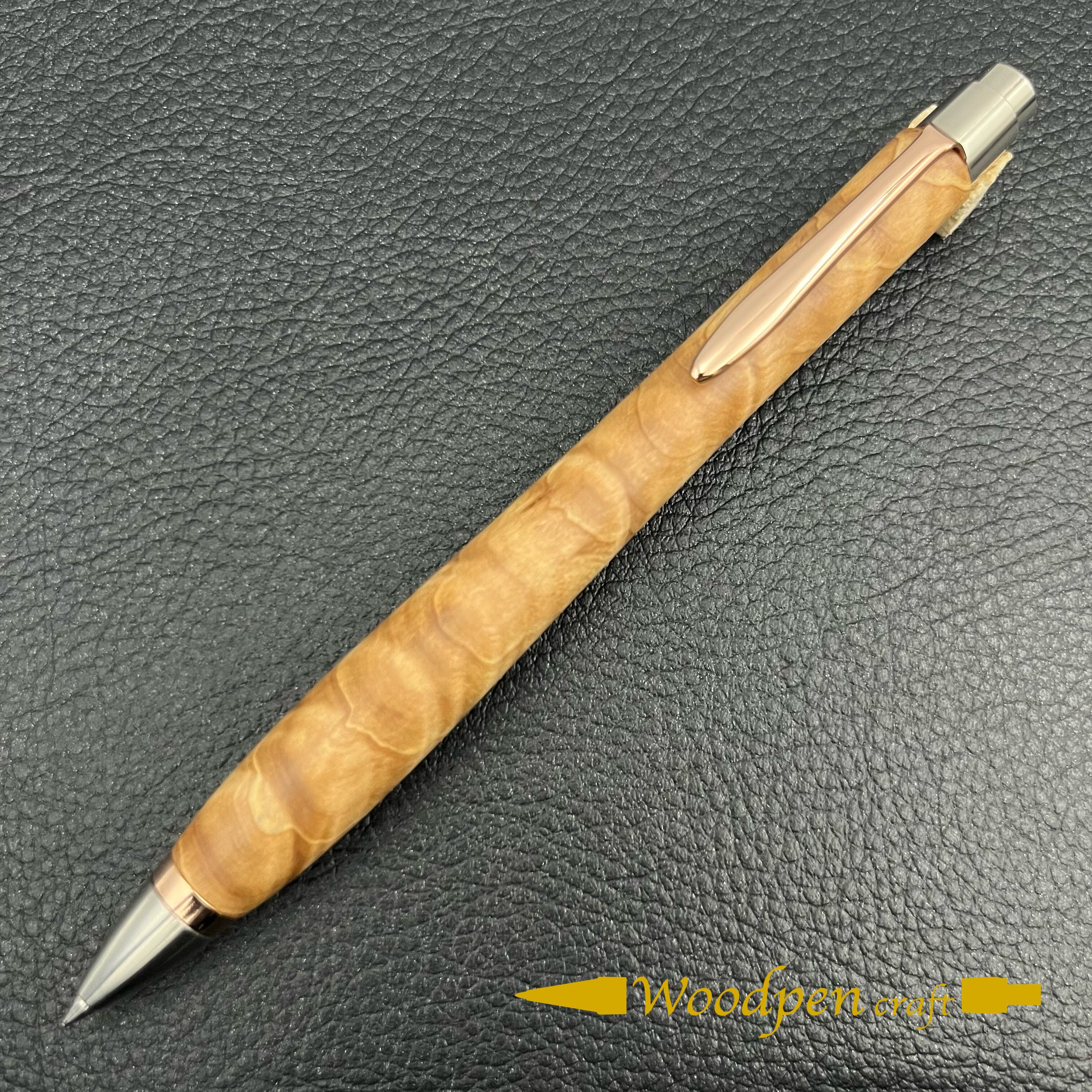 ボールペンのノックシステムは、ドイツ最高のクリックメカニズムを採用してあります。このメカニズムはユニークな機構のため、クリックしたときのカチカチ音が静かで、どんな場所でも気兼ねなく使うことができます。滑らかに動くこのプッシュ感覚を一度味わうと他には戻れなくなってしまうほどの魅力があります。 100分の1単位の加工精度で削り出されたペン先は、軸ブレも全くありません。