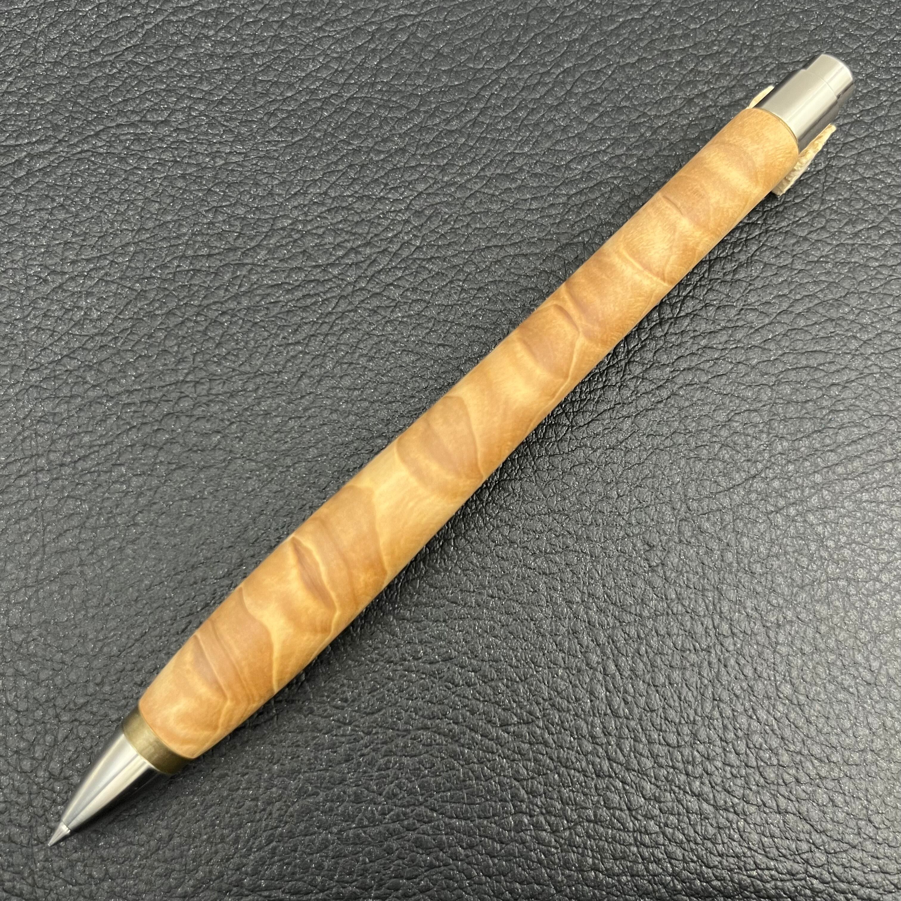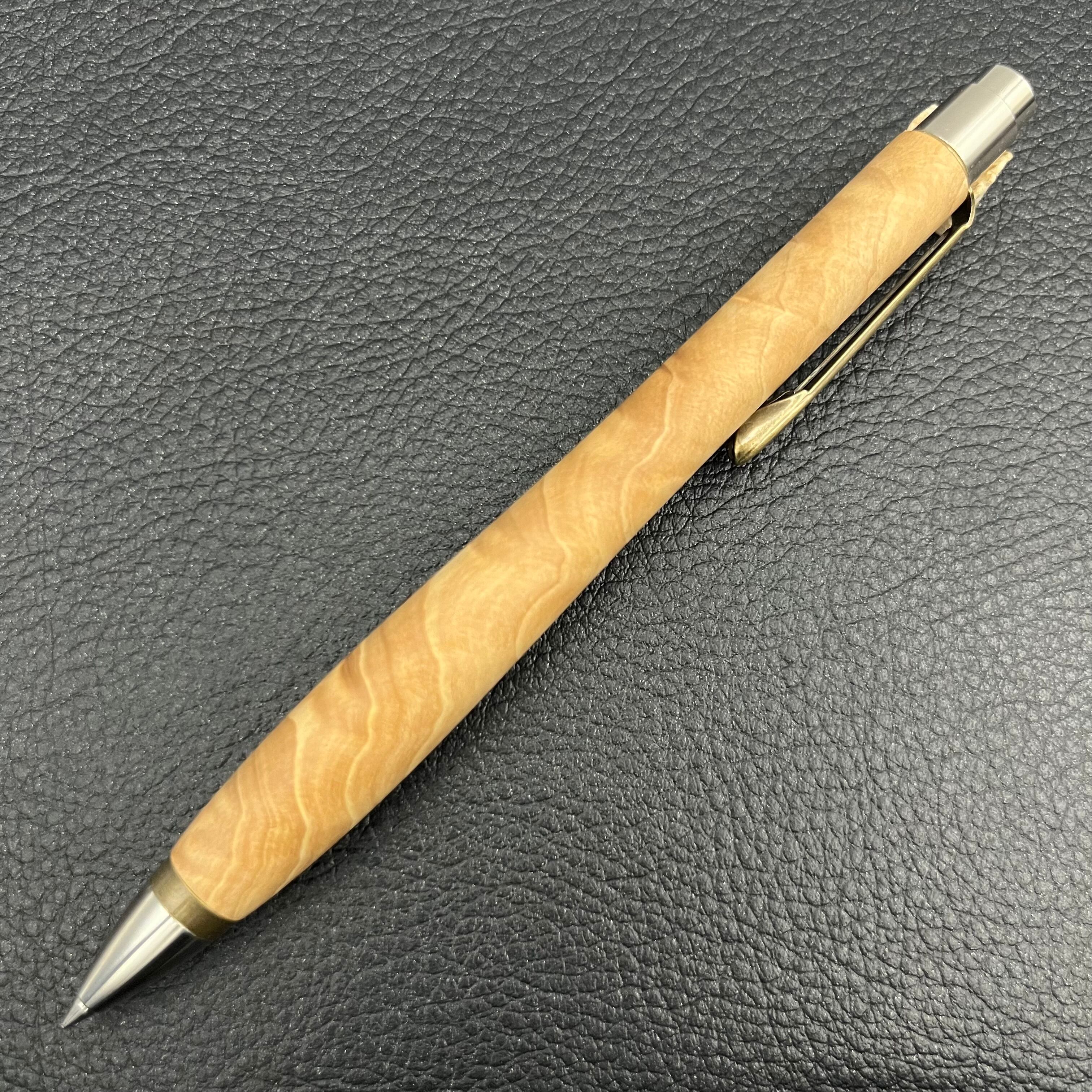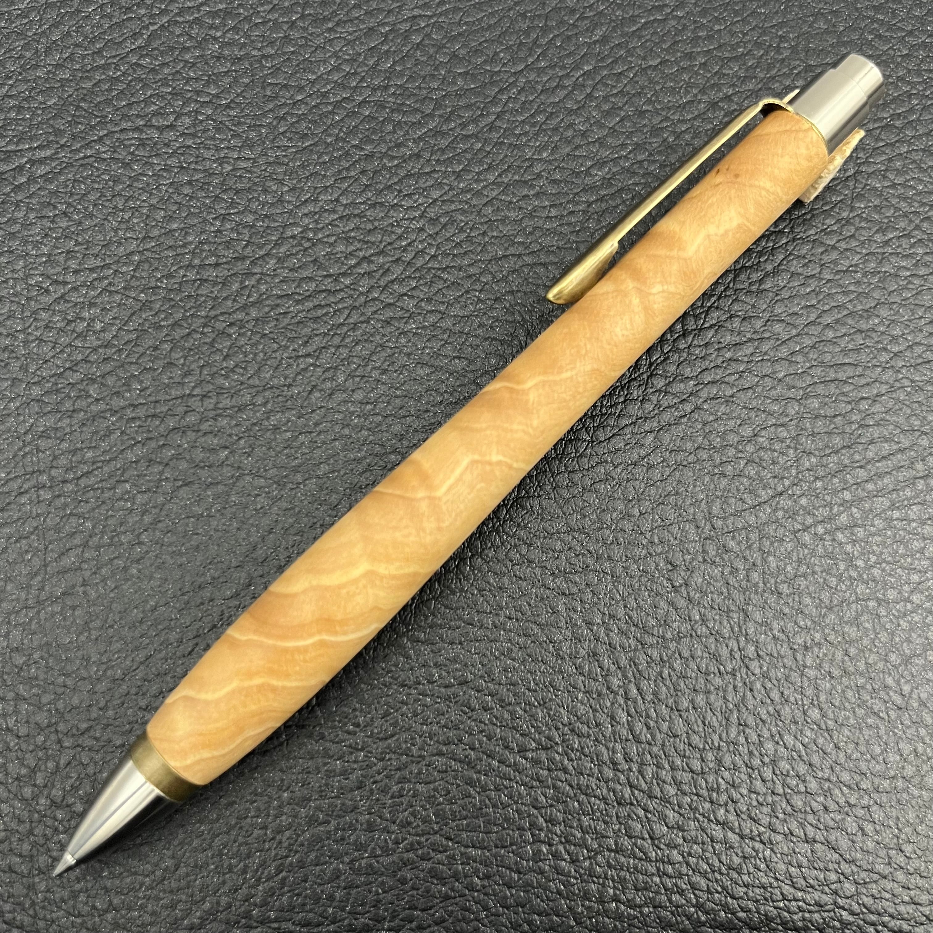 ボールペンのノックシステムは、ドイツ最高のクリックメカニズムを採用してあります。このメカニズムはユニークな機構のため、クリックしたときのカチカチ音が静かで、どんな場所でも気兼ねなく使うことができます。滑らかに動くこのプッシュ感覚を一度味わうと他には戻れなくなってしまうほどの魅力があります。 100分の1単位の加工精度で削り出されたペン先は、軸ブレも全くありません。