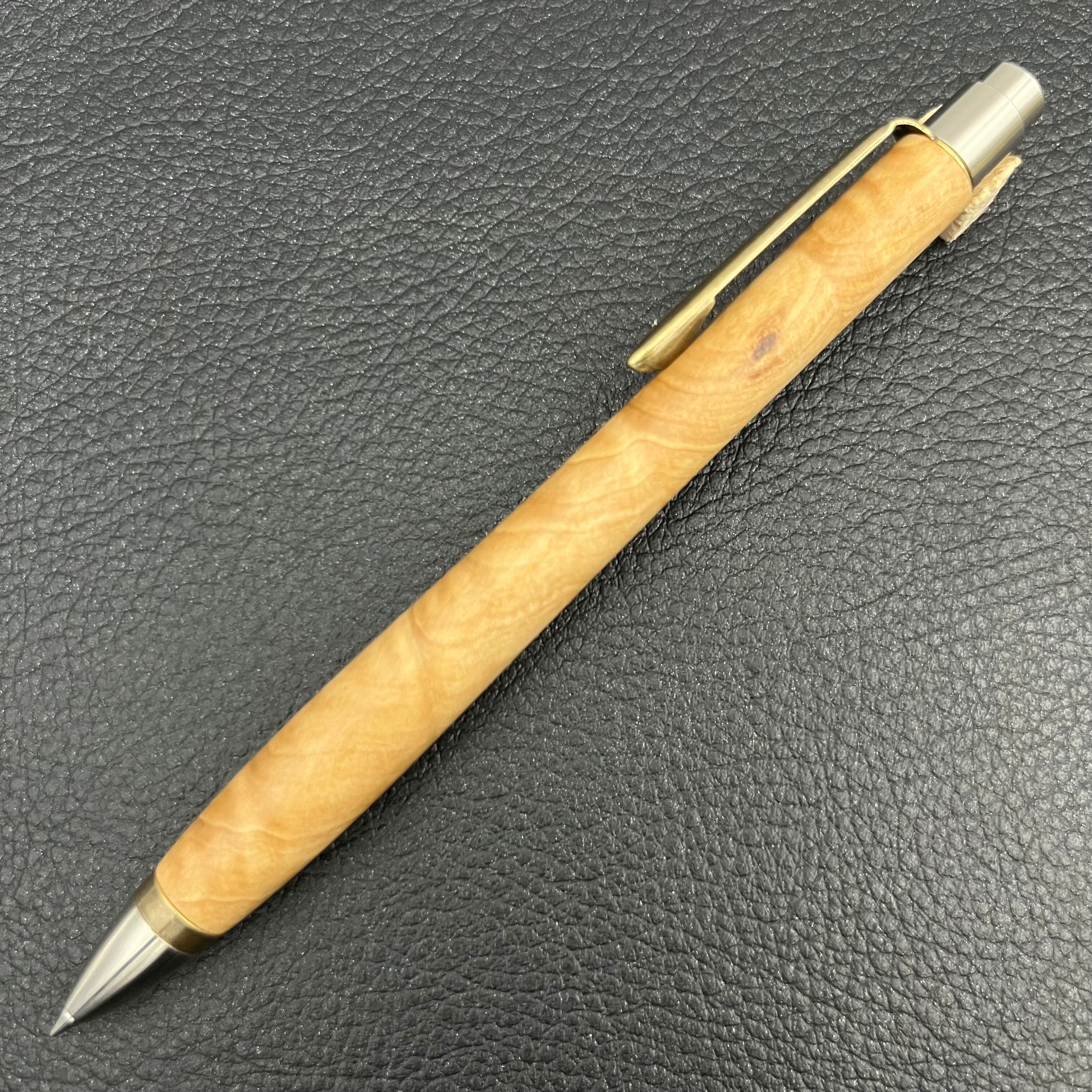 ボールペンのノックシステムは、ドイツ最高のクリックメカニズムを採用してあります。このメカニズムはユニークな機構のため、クリックしたときのカチカチ音が静かで、どんな場所でも気兼ねなく使うことができます。滑らかに動くこのプッシュ感覚を一度味わうと他には戻れなくなってしまうほどの魅力があります。 100分の1単位の加工精度で削り出されたペン先は、軸ブレも全くありません。