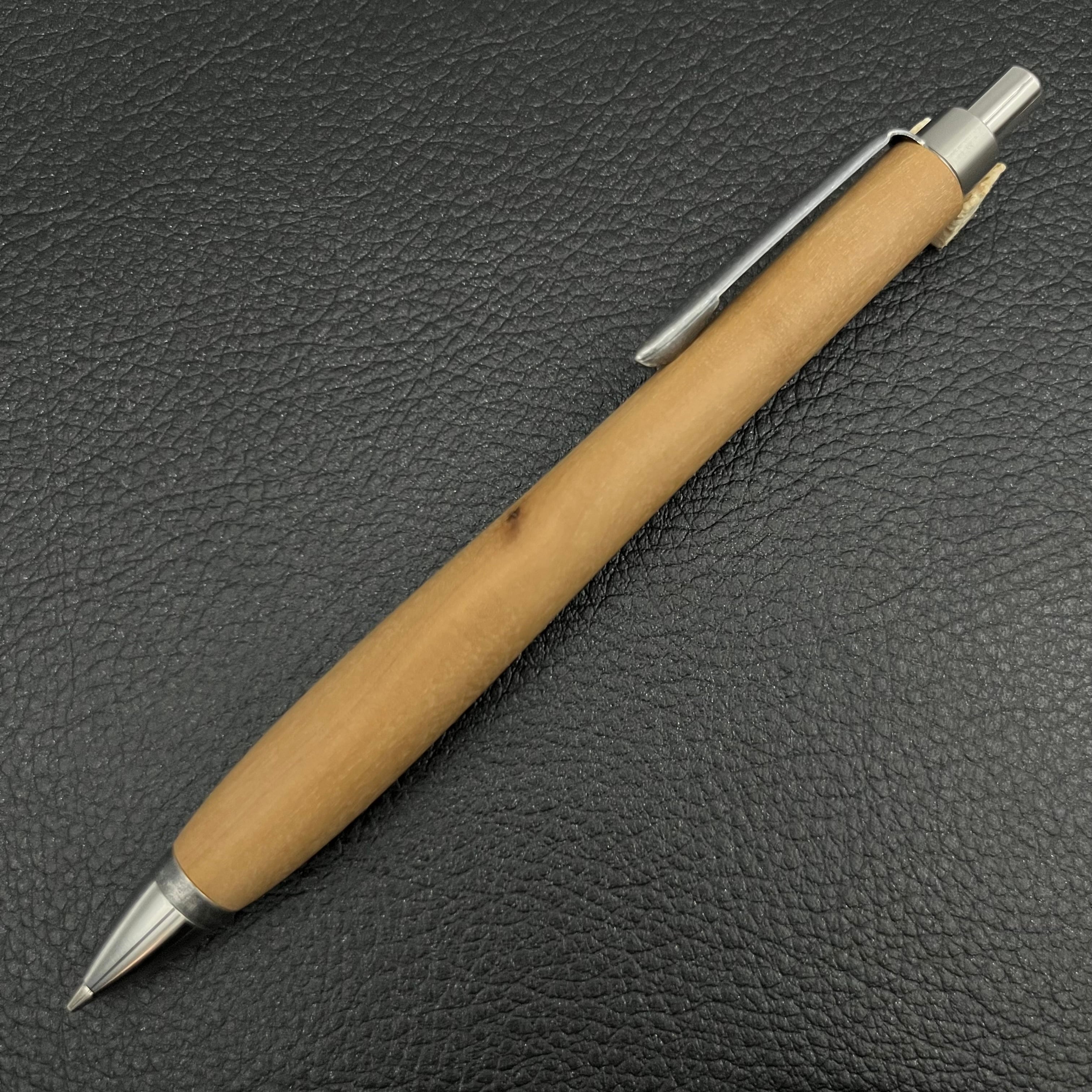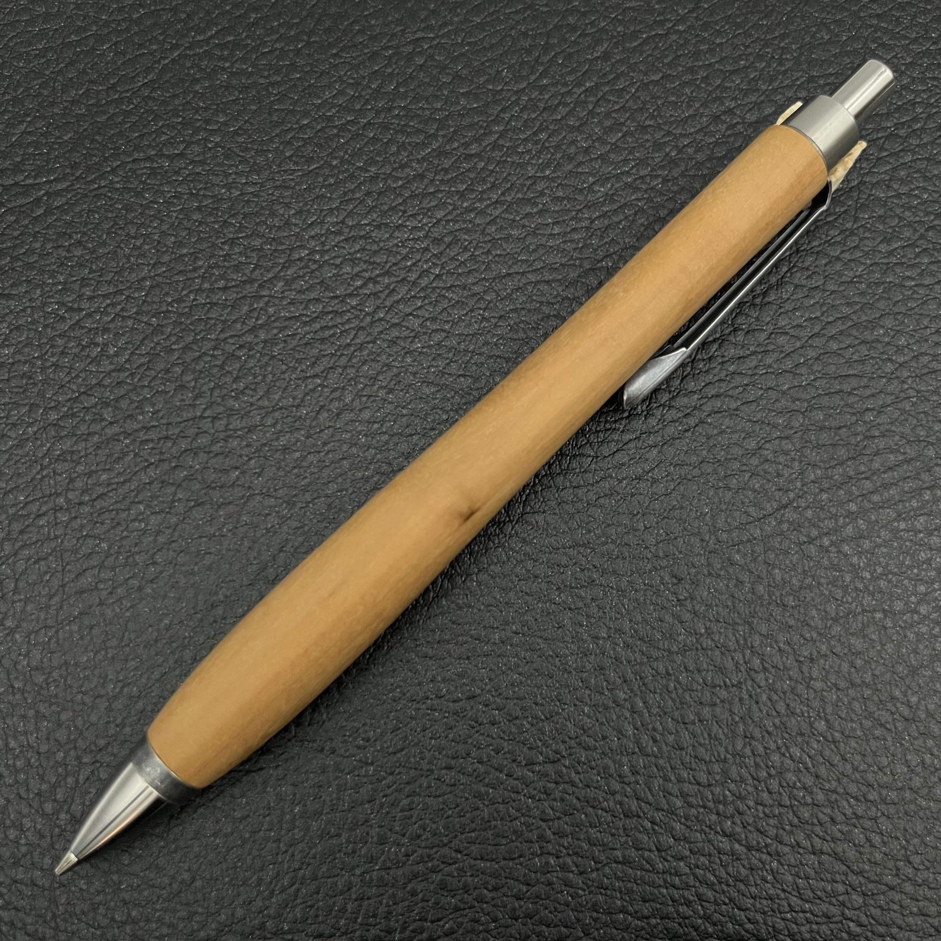 ペンシルは軸ブレが起こりにくい固定式口金を採用し、木の表情を最大限に楽しめる木軸の長さと、書き心地にこだわったバランスで金具を設計してあります。
