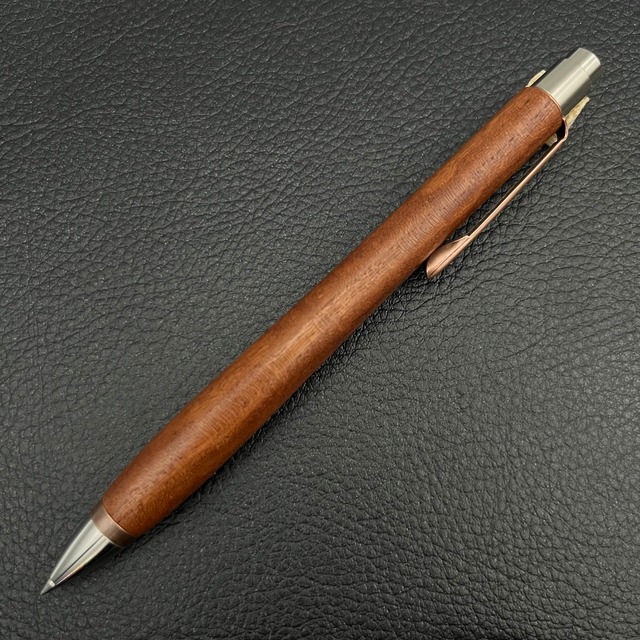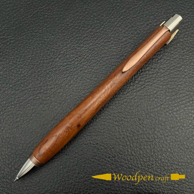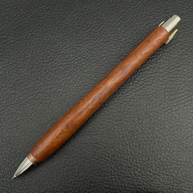 ボールペンのノックシステムは、ドイツ最高のクリックメカニズムを採用してあります。このメカニズムはユニークな機構のため、クリックしたときのカチカチ音が静かで、どんな場所でも気兼ねなく使うことができます。滑らかに動くこのプッシュ感覚を一度味わうと他には戻れなくなってしまうほどの魅力があります。 100分の1単位の加工精度で削り出されたペン先は、軸ブレも全くありません。
