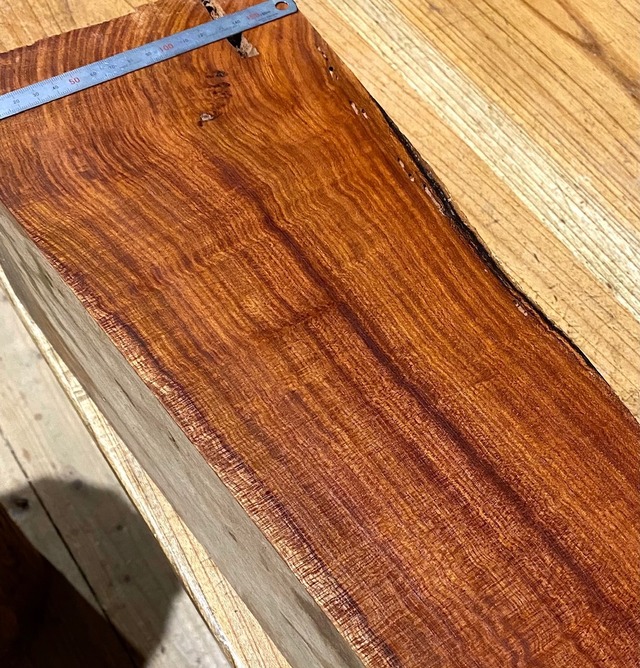 40年以上前に伐採された木です。木肌は見たことがない細かい年輪が真っ直ぐ伸びた栗色で若い欅とはまた違う芳醇な香り、そして手触りが堅い欅とは思えない柔らかさがありました。