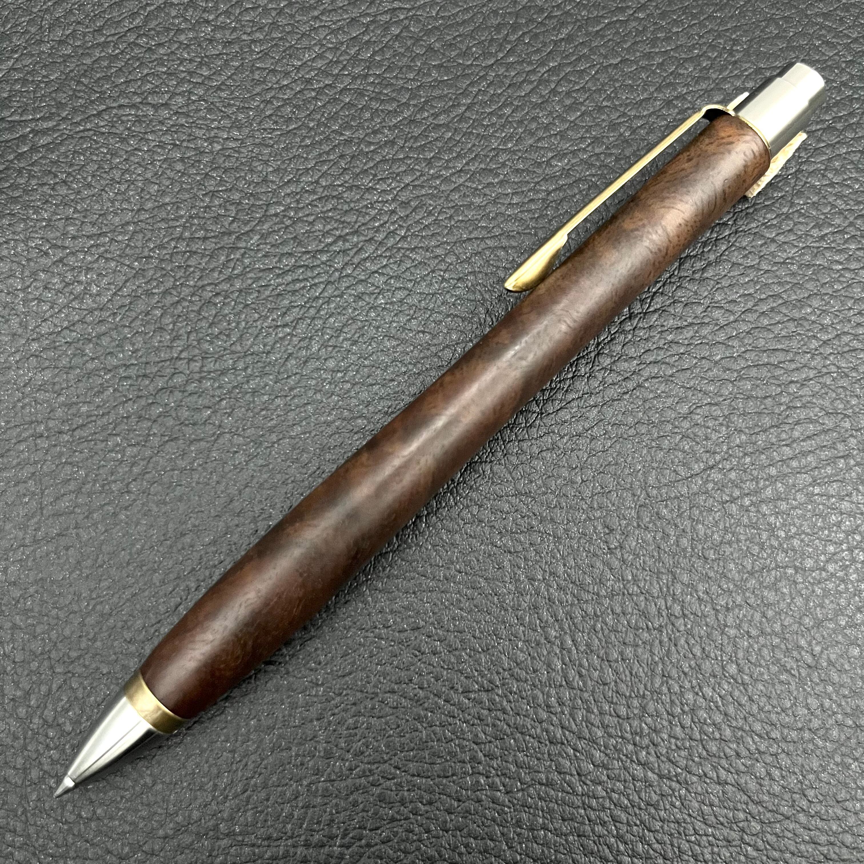 ボールペンのノックシステムは、ドイツ最高のクリックメカニズムを採用してあります。このメカニズムはユニークな機構のため、クリックしたときのカチカチ音が静かで、どんな場所でも気兼ねなく使うことができます。滑らかに動くこのプッシュ感覚を一度味わうと他には戻れなくなってしまうほどの魅力があります。 100分の1単位の加工精度で削り出されたペン先は、軸ブレも全くありません。