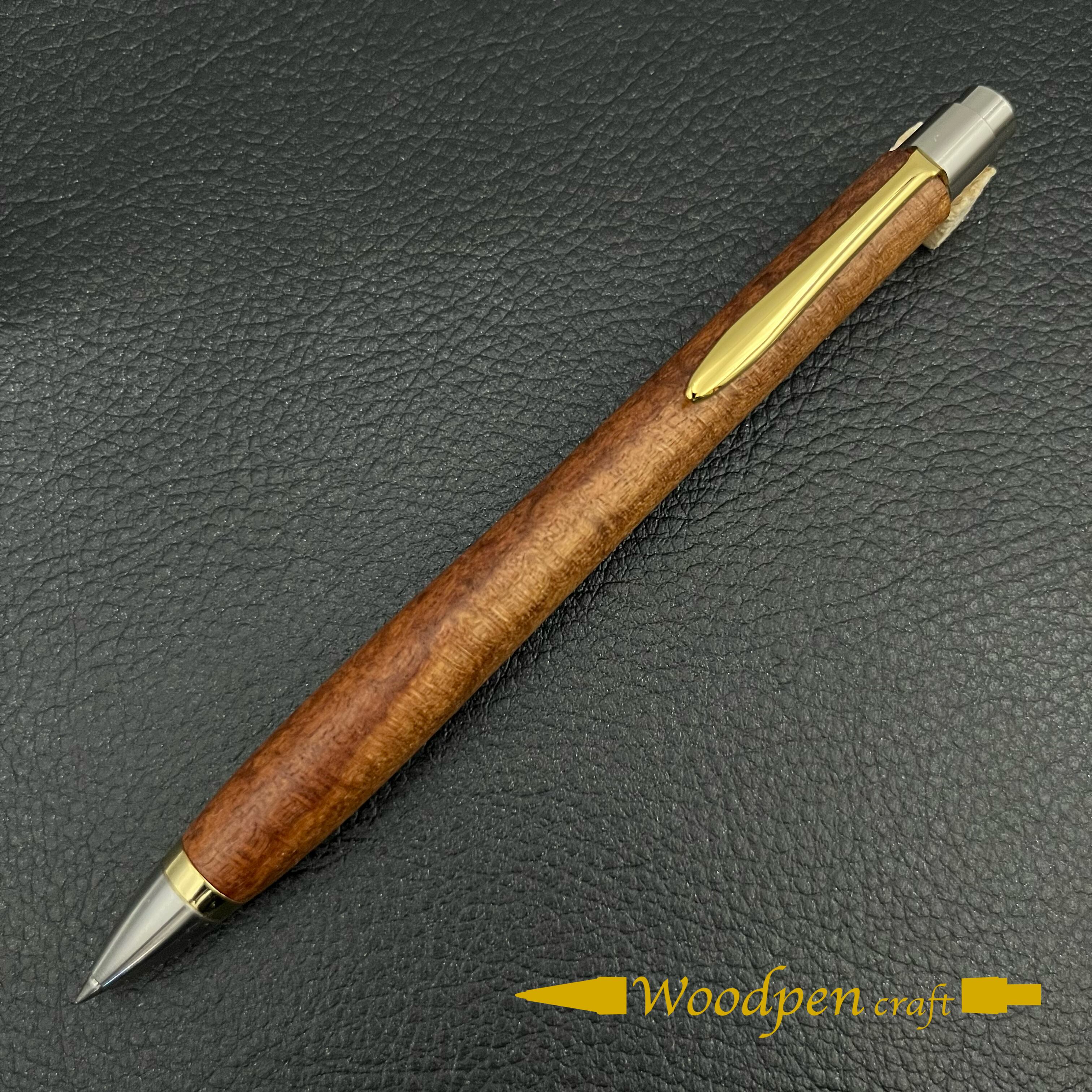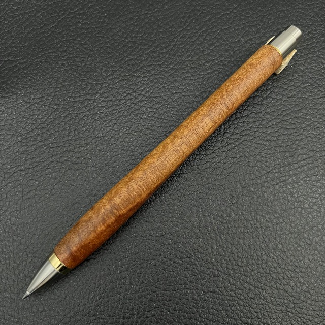 ボールペンのノックシステムは、ドイツ最高のクリックメカニズムを採用してあります。このメカニズムはユニークな機構のため、クリックしたときのカチカチ音が静かで、どんな場所でも気兼ねなく使うことができます。滑らかに動くこのプッシュ感覚を一度味わうと他には戻れなくなってしまうほどの魅力があります。 100分の1単位の加工精度で削り出されたペン先は、軸ブレも全くありません。