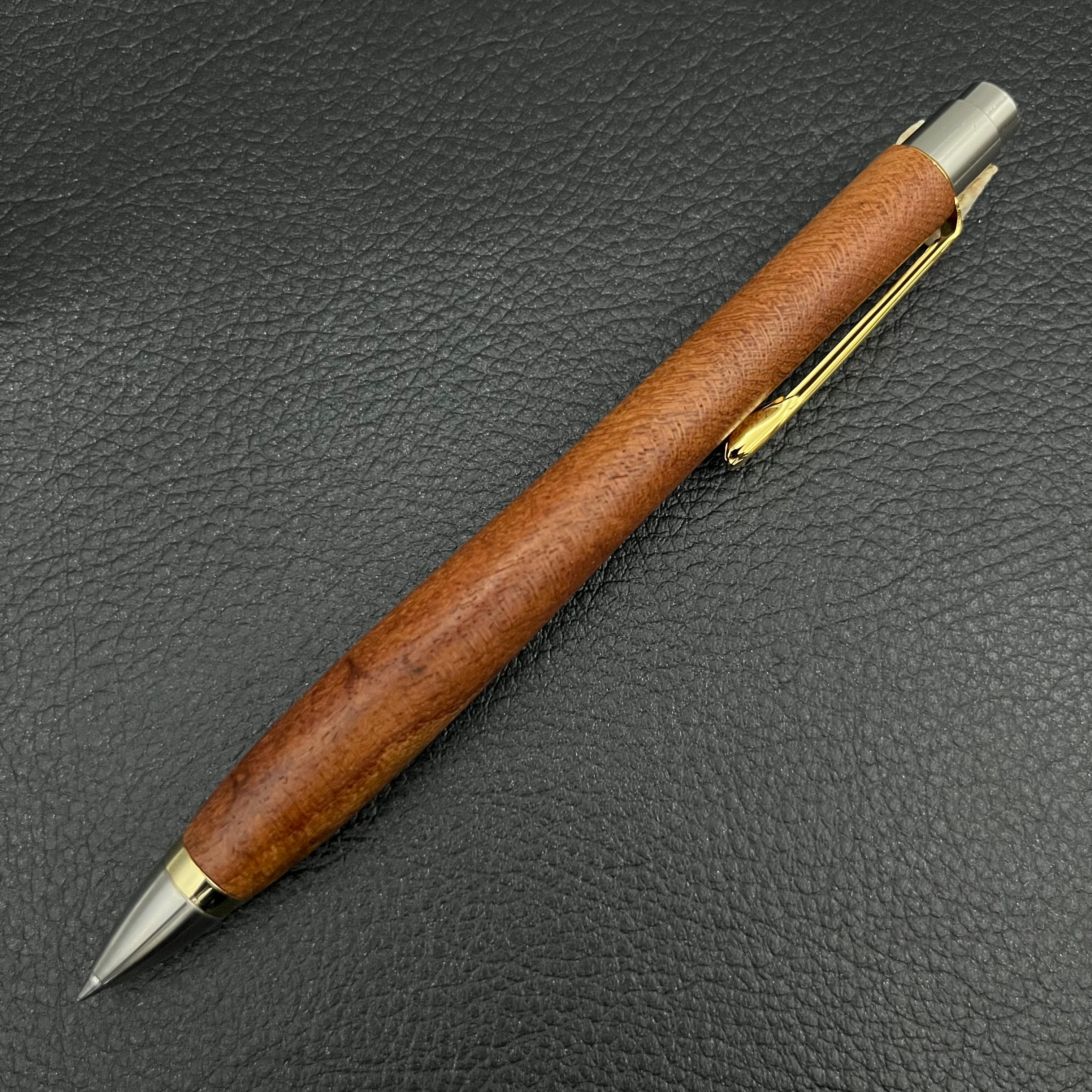 ボールペンのノックシステムは、ドイツ最高のクリックメカニズムを採用してあります。このメカニズムはユニークな機構のため、クリックしたときのカチカチ音が静かで、どんな場所でも気兼ねなく使うことができます。滑らかに動くこのプッシュ感覚を一度味わうと他には戻れなくなってしまうほどの魅力があります。 100分の1単位の加工精度で削り出されたペン先は、軸ブレも全くありません。