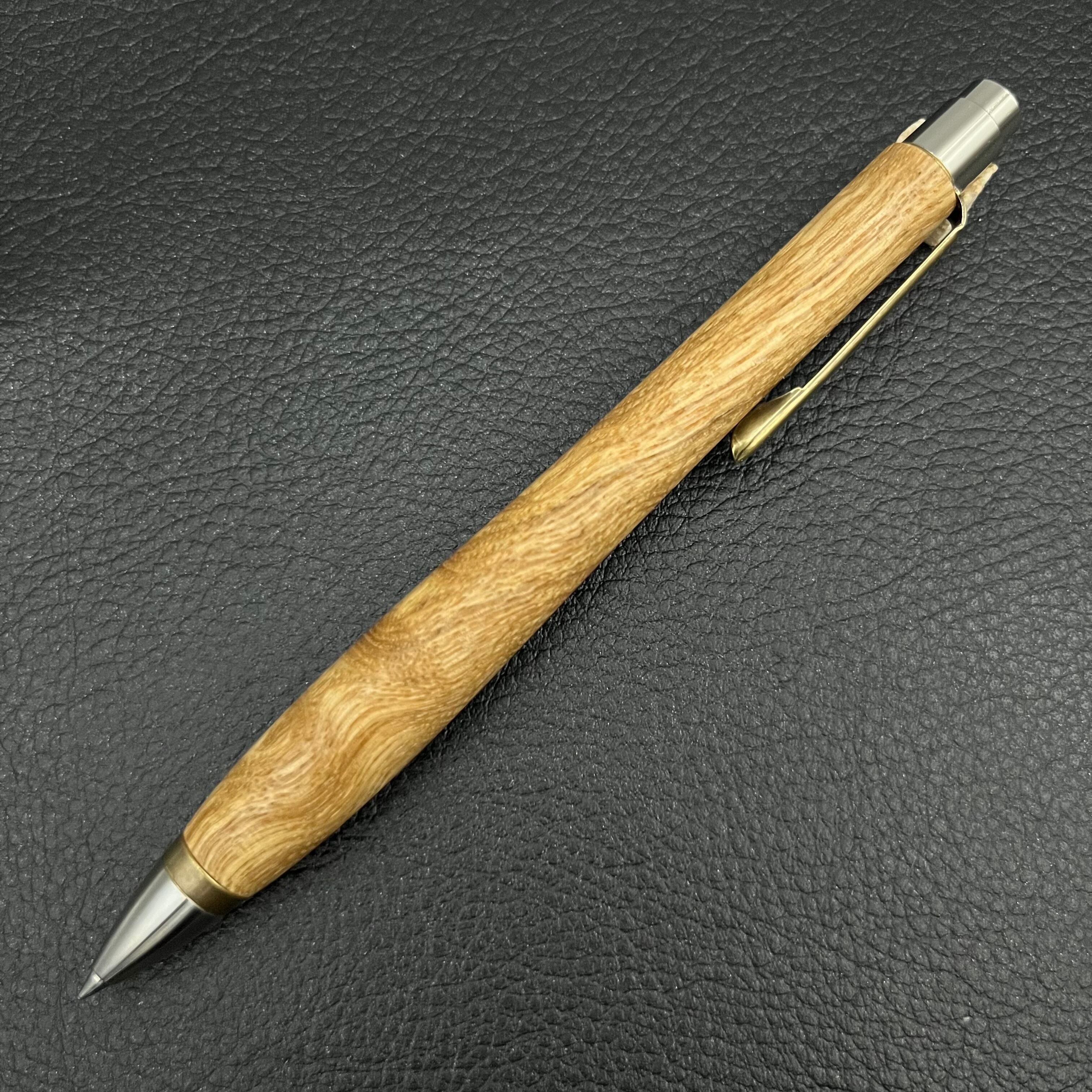 ボールペンのノックシステムは、ドイツ最高のクリックメカニズムを採用してあります。このメカニズムはユニークな機構のため、クリックしたときのカチカチ音が静かで、どんな場所でも気兼ねなく使うことができます。滑らかに動くこのプッシュ感覚を一度味わうと他には戻れなくなってしまうほどの魅力があります。 100分の1単位の加工精度で削り出されたペン先は、軸ブレも全くありません。