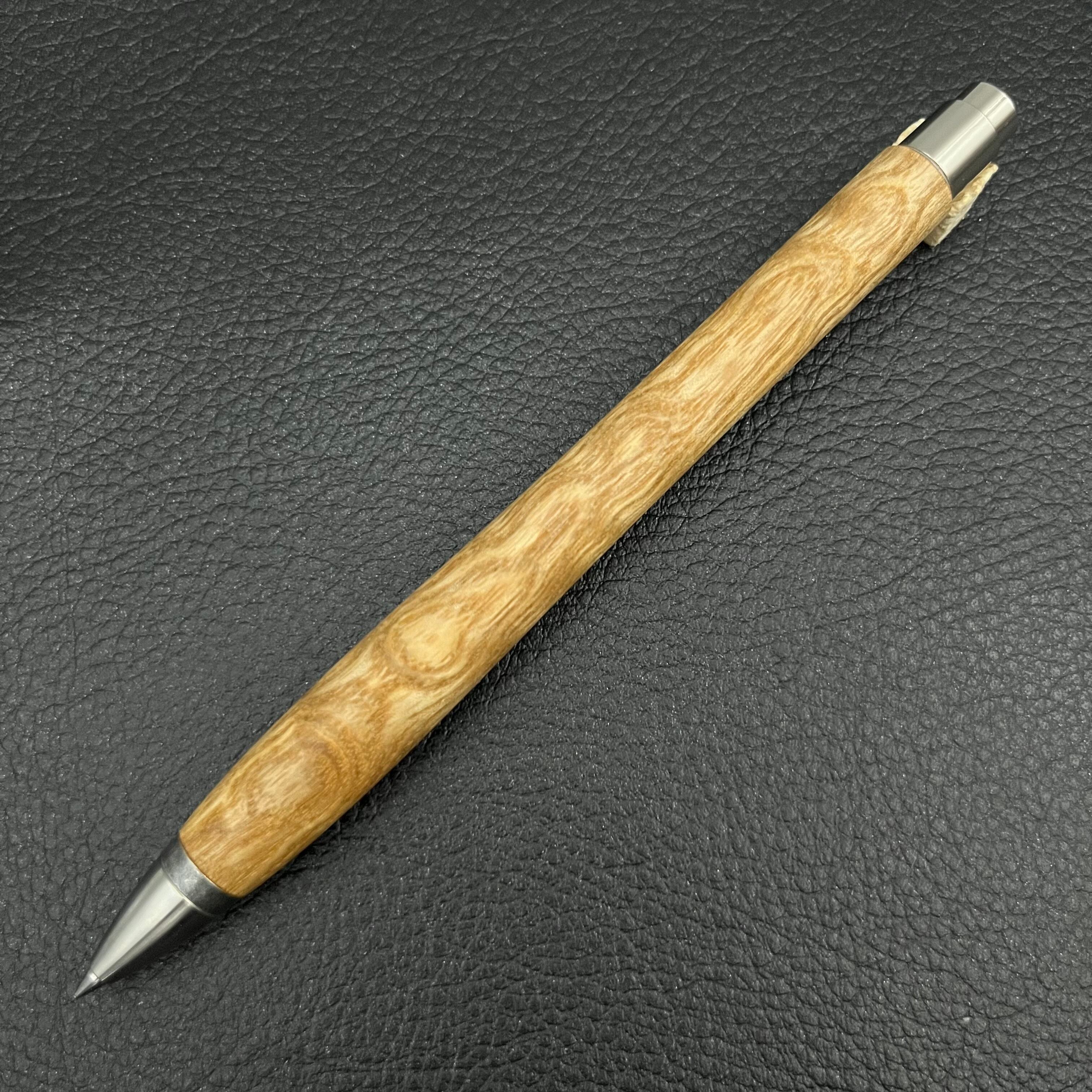 ボールペンのノックシステムは、ドイツ最高のクリックメカニズムを採用してあります。このメカニズムはユニークな機構のため、クリックしたときのカチカチ音が静かで、どんな場所でも気兼ねなく使うことができます。滑らかに動くこのプッシュ感覚を一度味わうと他には戻れなくなってしまうほどの魅力があります。 100分の1単位の加工精度で削り出されたペン先は、軸ブレも全くありません。