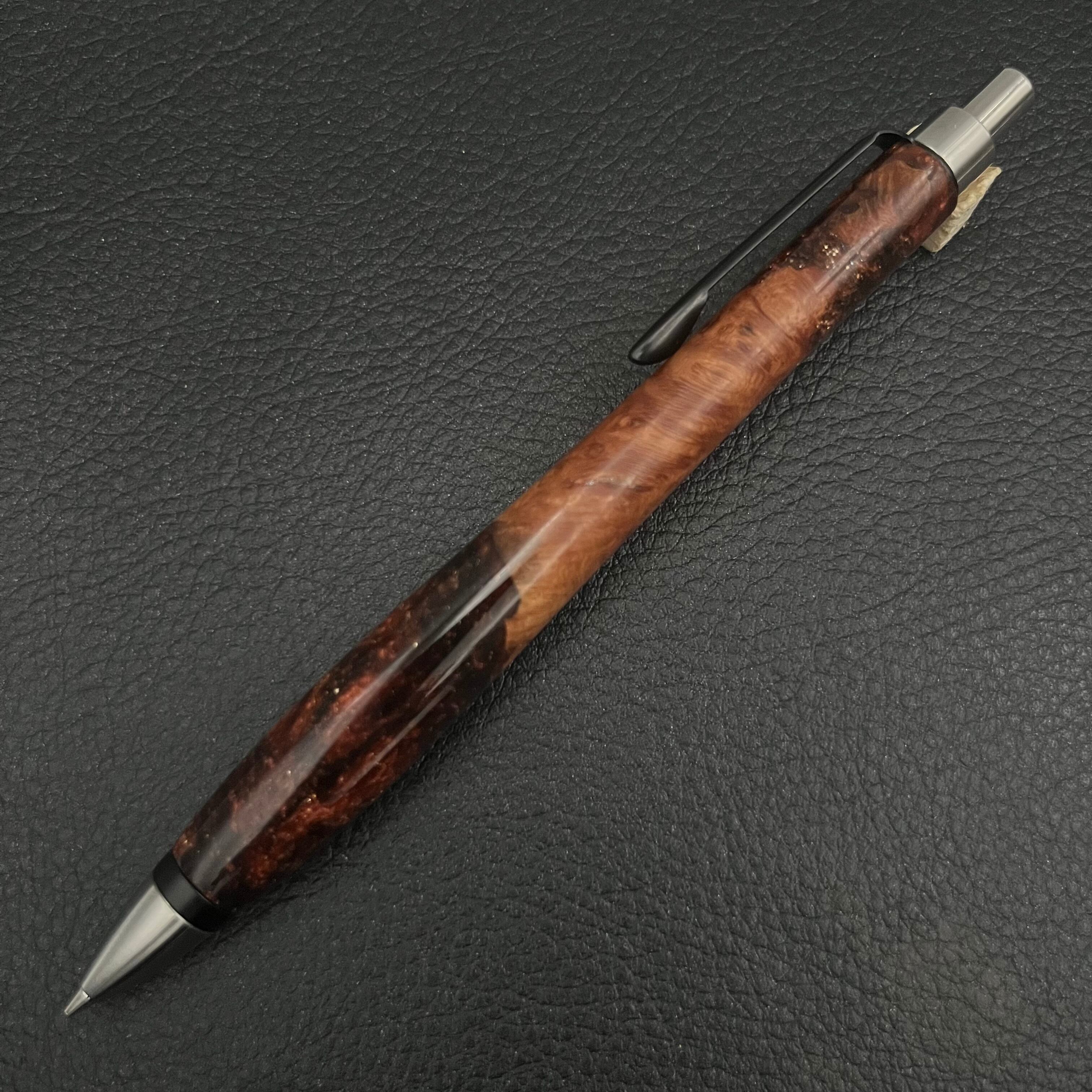 ペンシルは軸ブレが起こりにくい固定式口金を採用し、木の表情を最大限に楽しめる木軸の長さと、書き心地にこだわったバランスで金具を設計してあります。