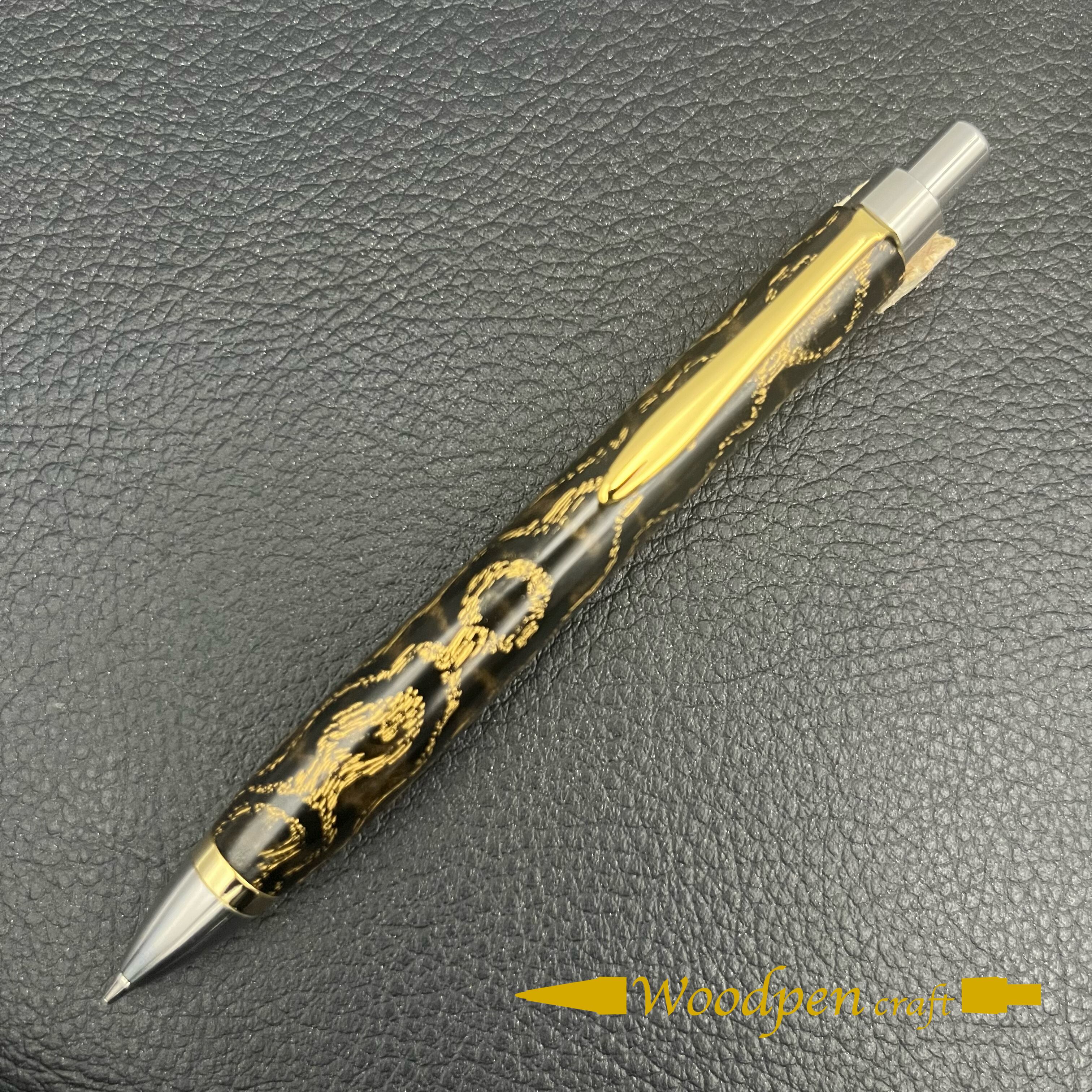 【やちだも国産黒漆金杢・金波(きんぱ)-106100309】ショートペンシル(M5手帳サイズ)