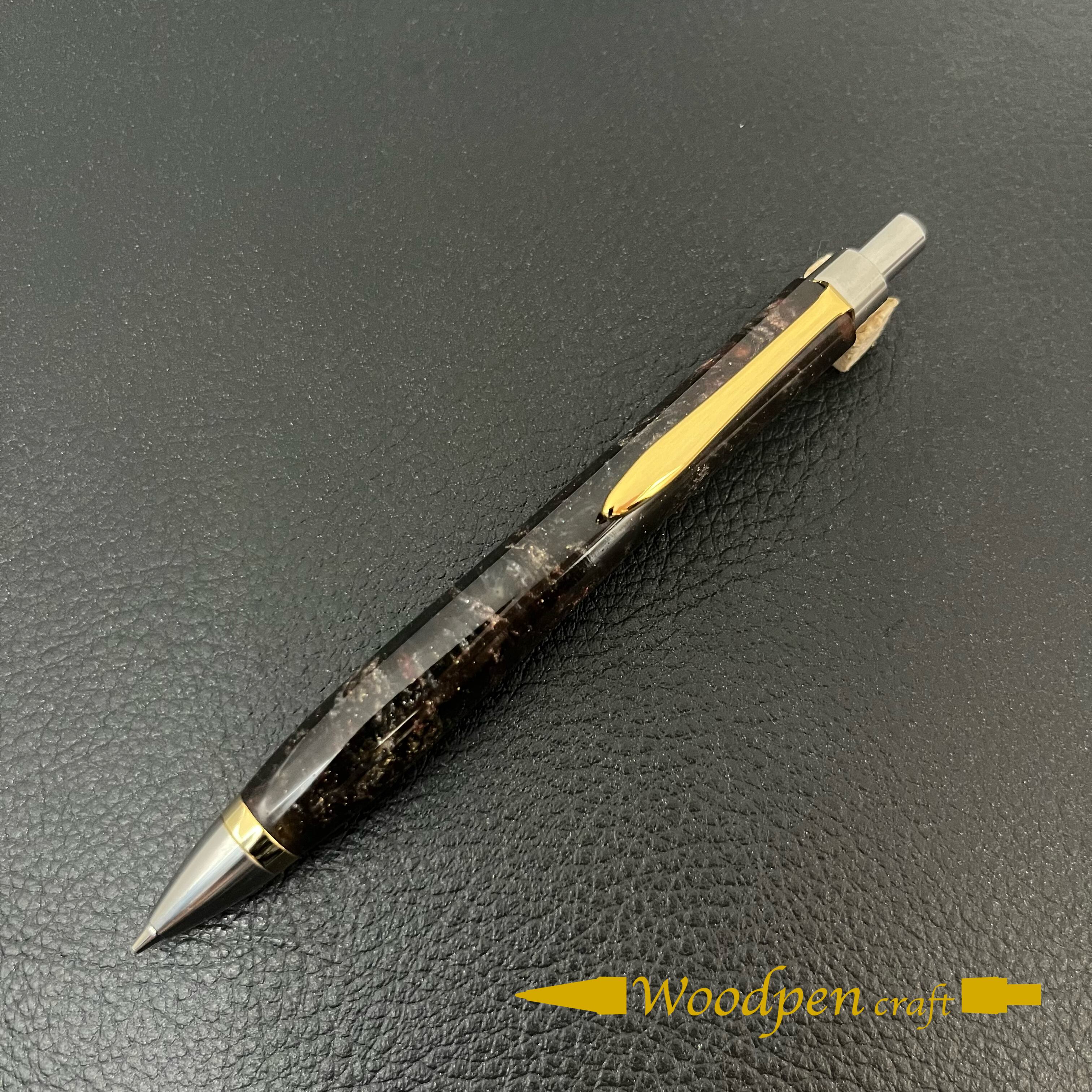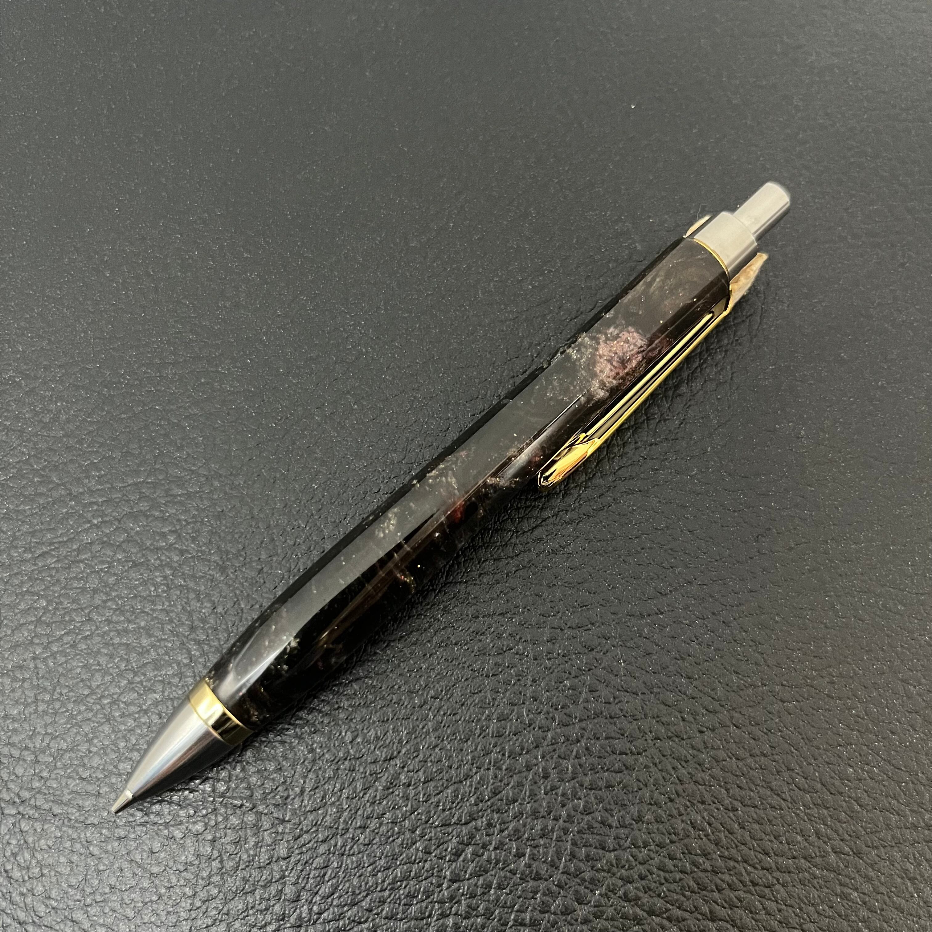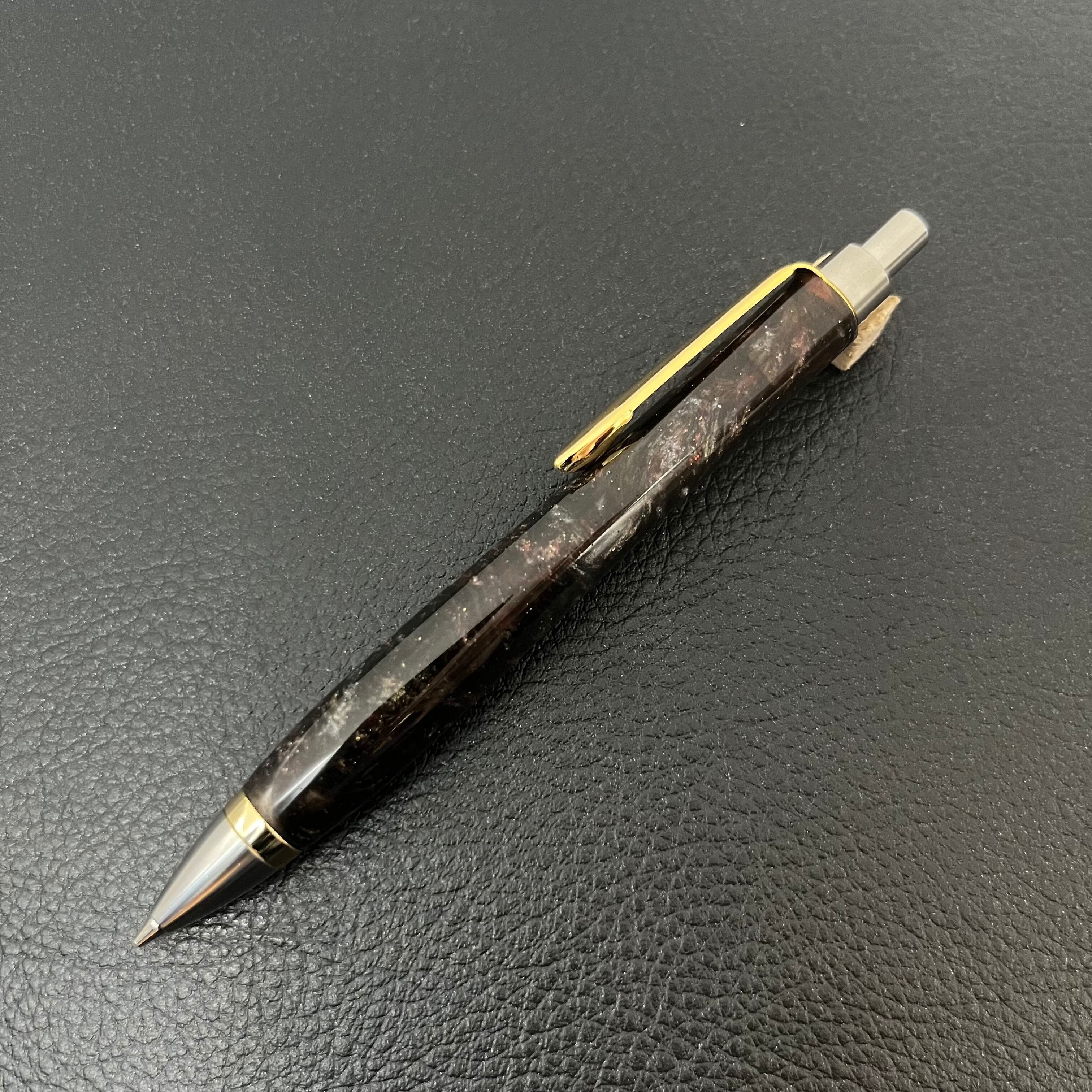 オリジナルペン金具は、大阪に在る金属精密加工会社の職人さんが100分の1㎜単位の加工精度で制作されています。口金・上スリーブ・ノックカバーは高級ステンレス削り出しです。