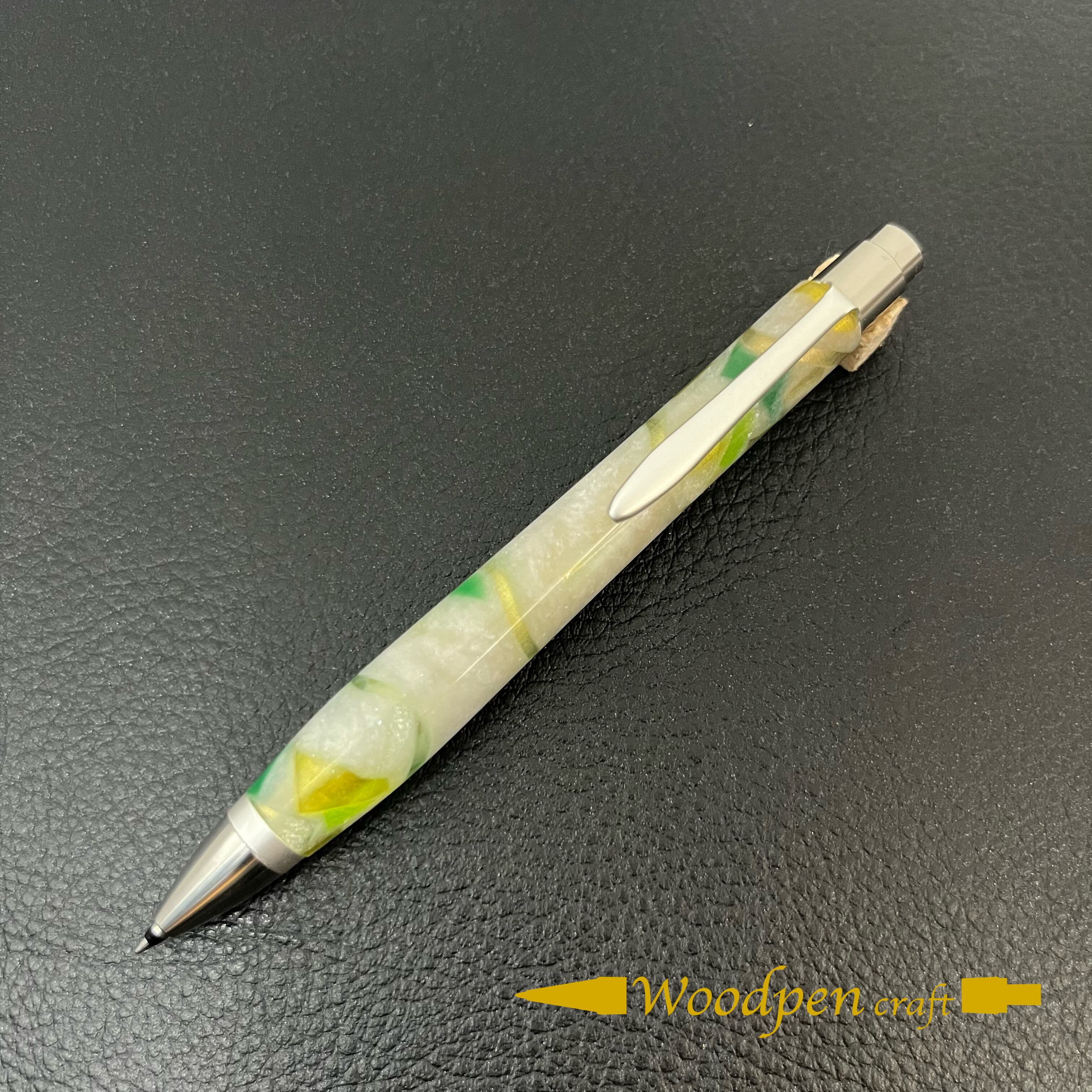 ボールペンのノックシステムは、ドイツ最高のクリックメカニズムを採用してあります。このメカニズムはユニークな機構のため、クリックしたときのカチカチ音が静かで、どんな場所でも気兼ねなく使うことができます。滑らかに動くこのプッシュ感覚を一度味わうと他には戻れなくなってしまうほどの魅力があります。 高級ステンレス材を100分の1単位の加工精度で削り出された口金により芯ブレも全くありません。内部のアルミを使ったリフィルアダプターもオリジナルです。