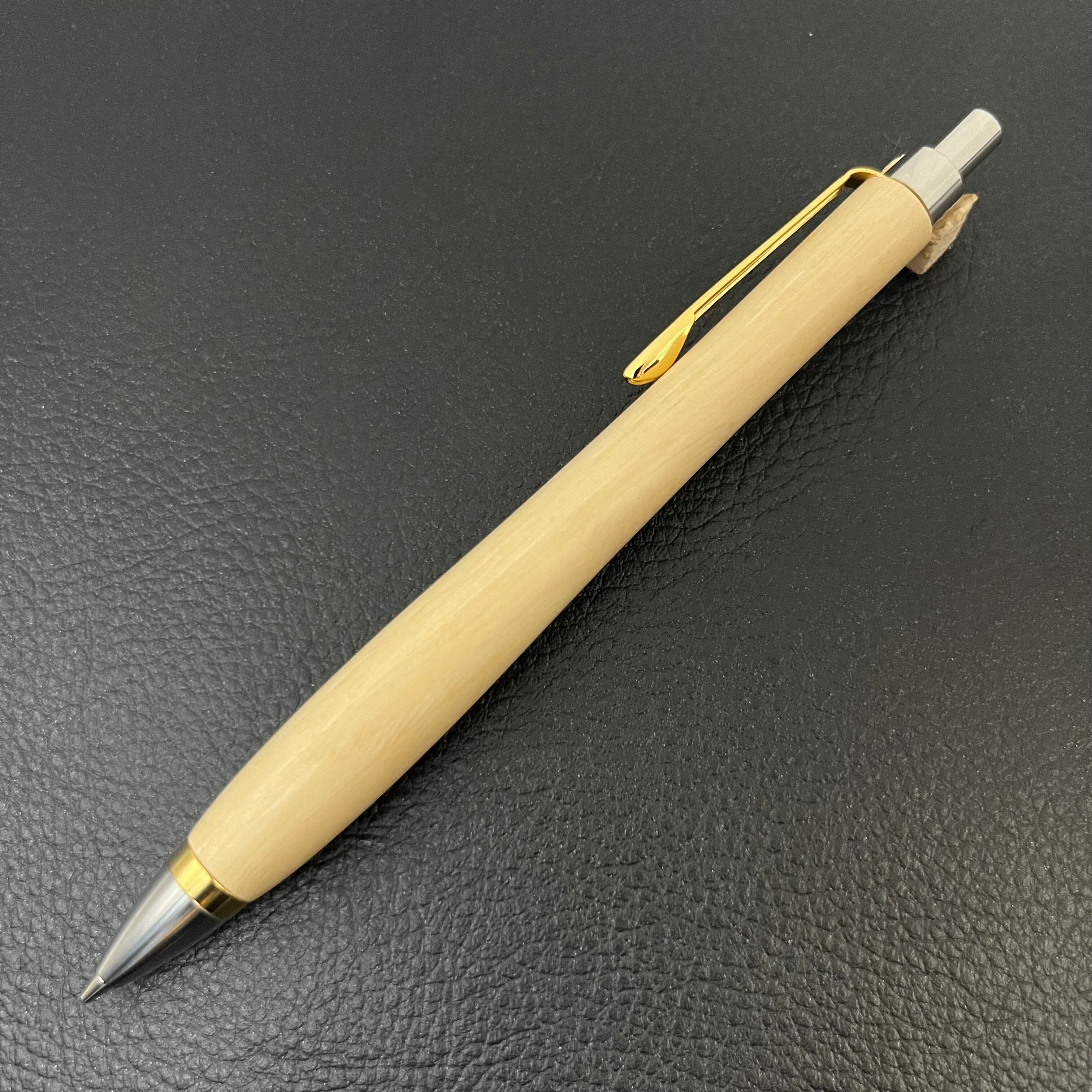 ペンシルは軸ブレが起こりにくい固定式口金を採用し、木の表情を最大限に楽しめる木軸の長さと、書き心地にこだわったバランスで金具を設計してあります。