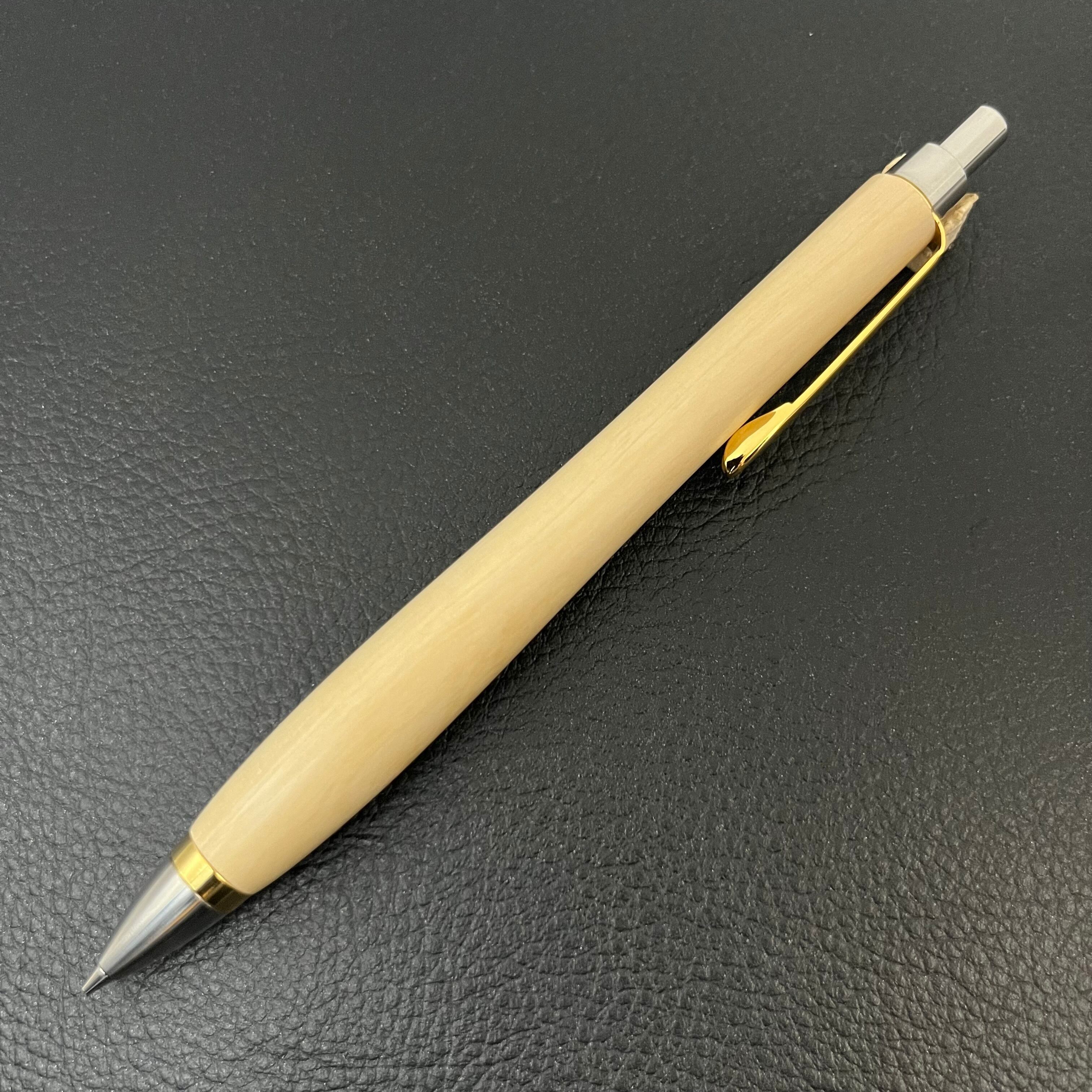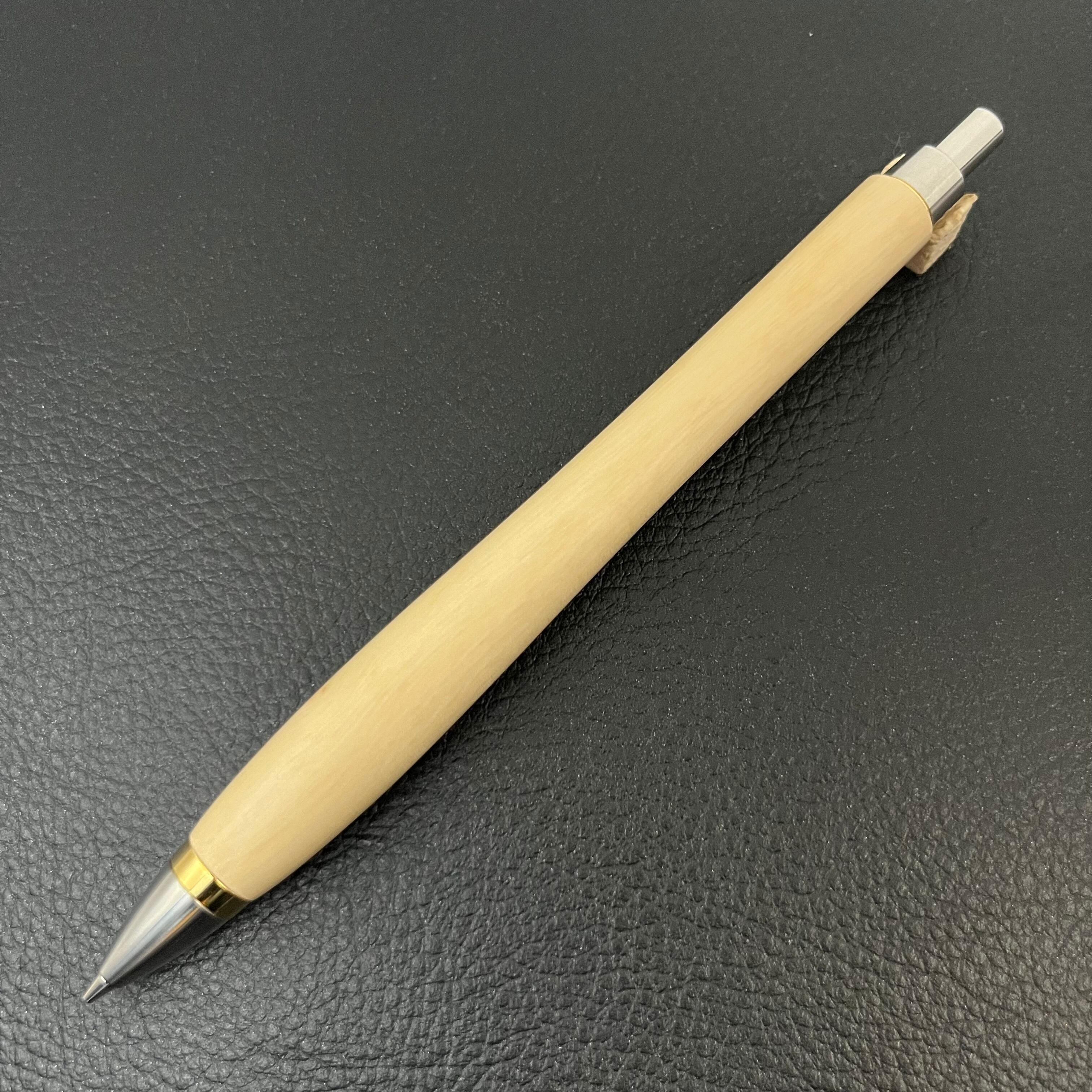 ペンシルは軸ブレが起こりにくい固定式口金を採用し、木の表情を最大限に楽しめる木軸の長さと、書き心地にこだわったバランスで金具を設計してあります。
