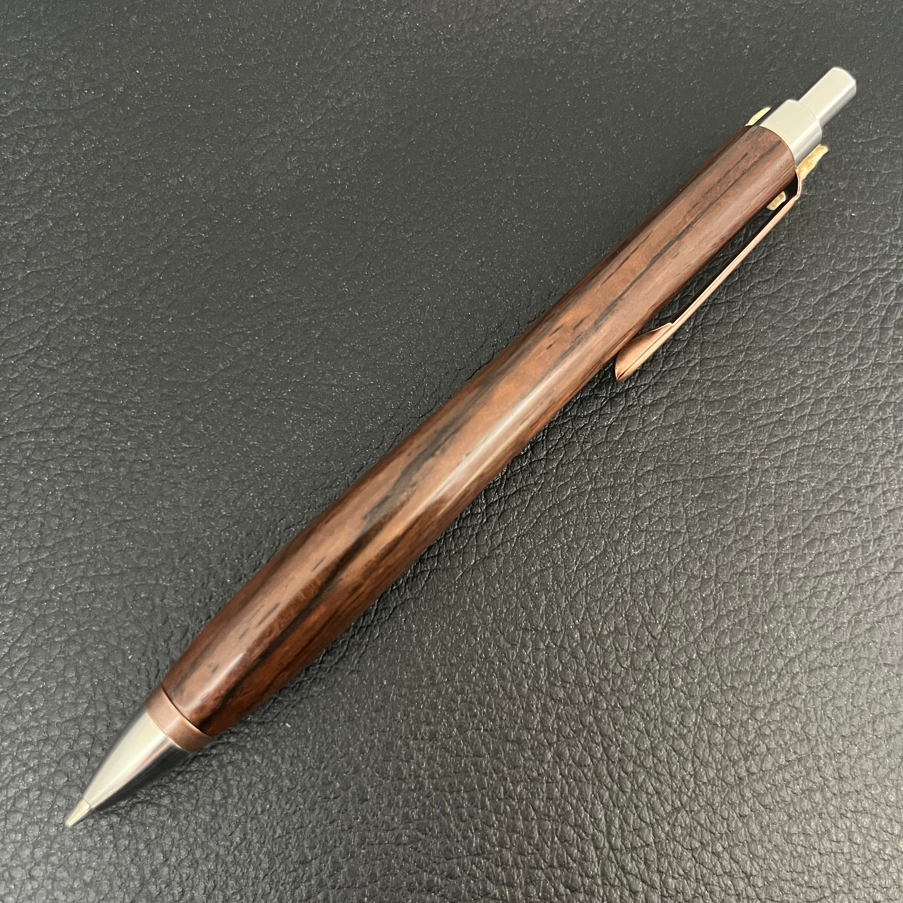 ペンシルは軸ブレが起こりにくい固定式口金を採用し、木の表情を最大限に楽しめる木軸の長さと、書き心地にこだわったバランスで金具を設計してあります。