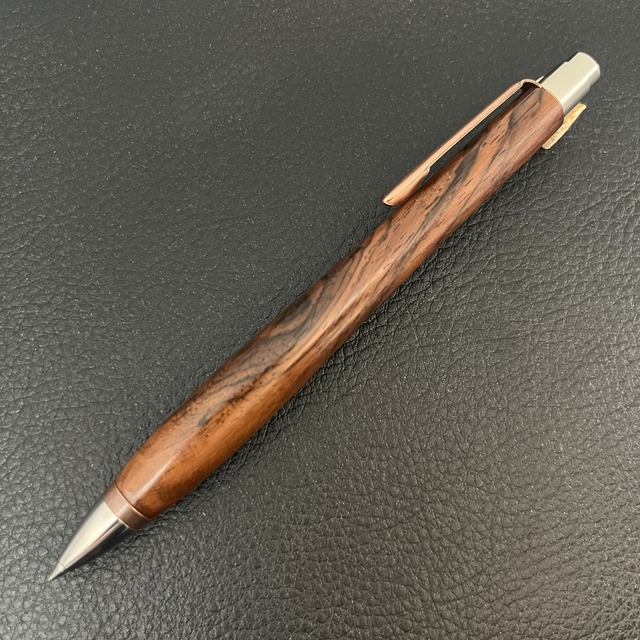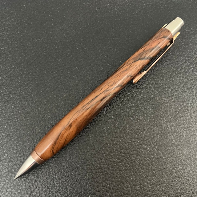 ボールペンのノックシステムは、ドイツ最高のクリックメカニズムを採用してあります。このメカニズムはユニークな機構のため、クリックしたときのカチカチ音が静かで、どんな場所でも気兼ねなく使うことができます。滑らかに動くこのプッシュ感覚を一度味わうと他には戻れなくなってしまうほどの魅力があります。 100分の1単位の加工精度で削り出されたペン先は、軸ブレも全くありません。