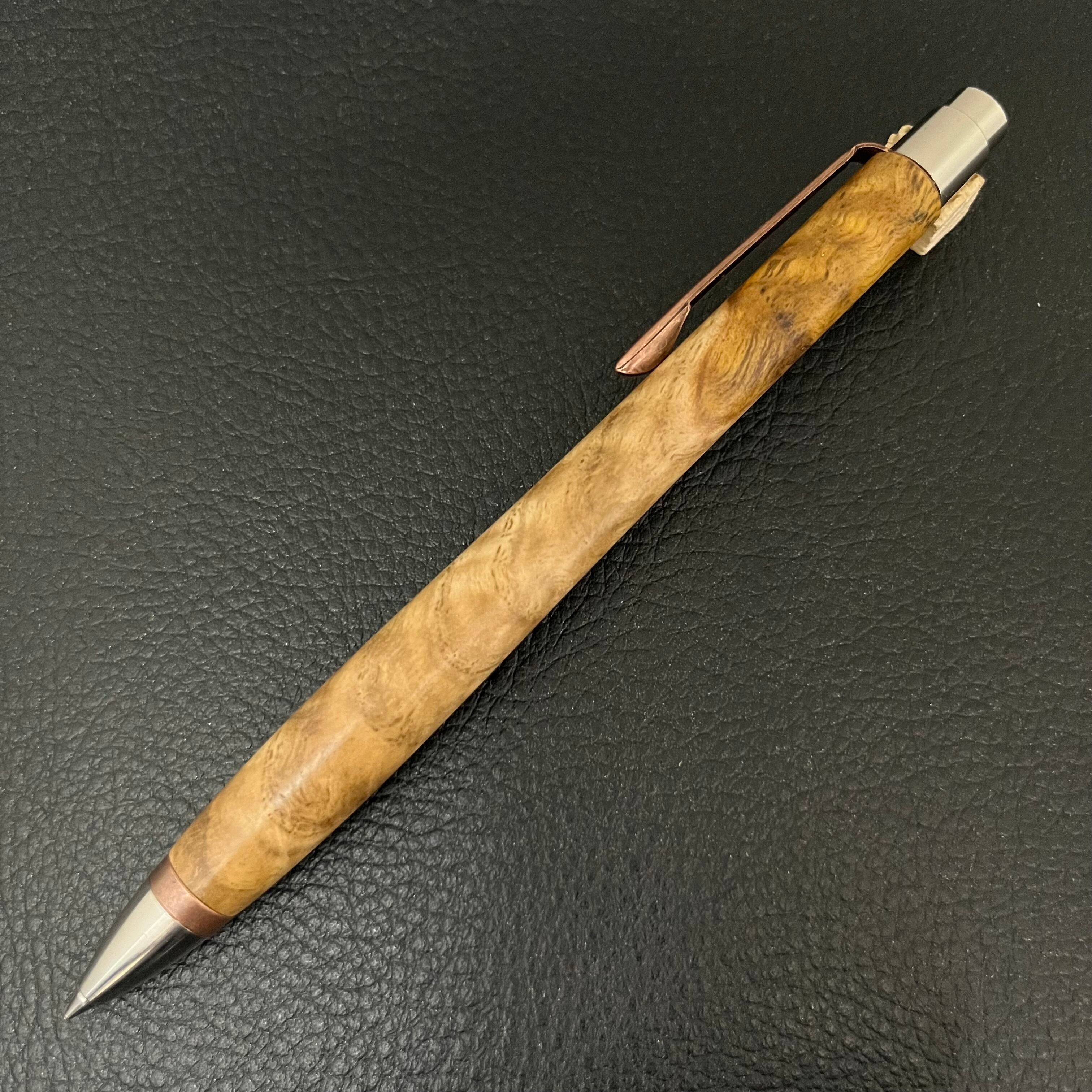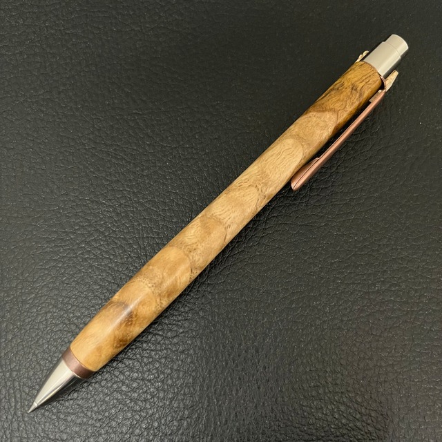 ボールペンのノックシステムは、ドイツ最高のクリックメカニズムを採用してあります。このメカニズムはユニークな機構のため、クリックしたときのカチカチ音が静かで、どんな場所でも気兼ねなく使うことができます。滑らかに動くこのプッシュ感覚を一度味わうと他には戻れなくなってしまうほどの魅力があります。 100分の1単位の加工精度で削り出されたペン先は、軸ブレも全くありません。