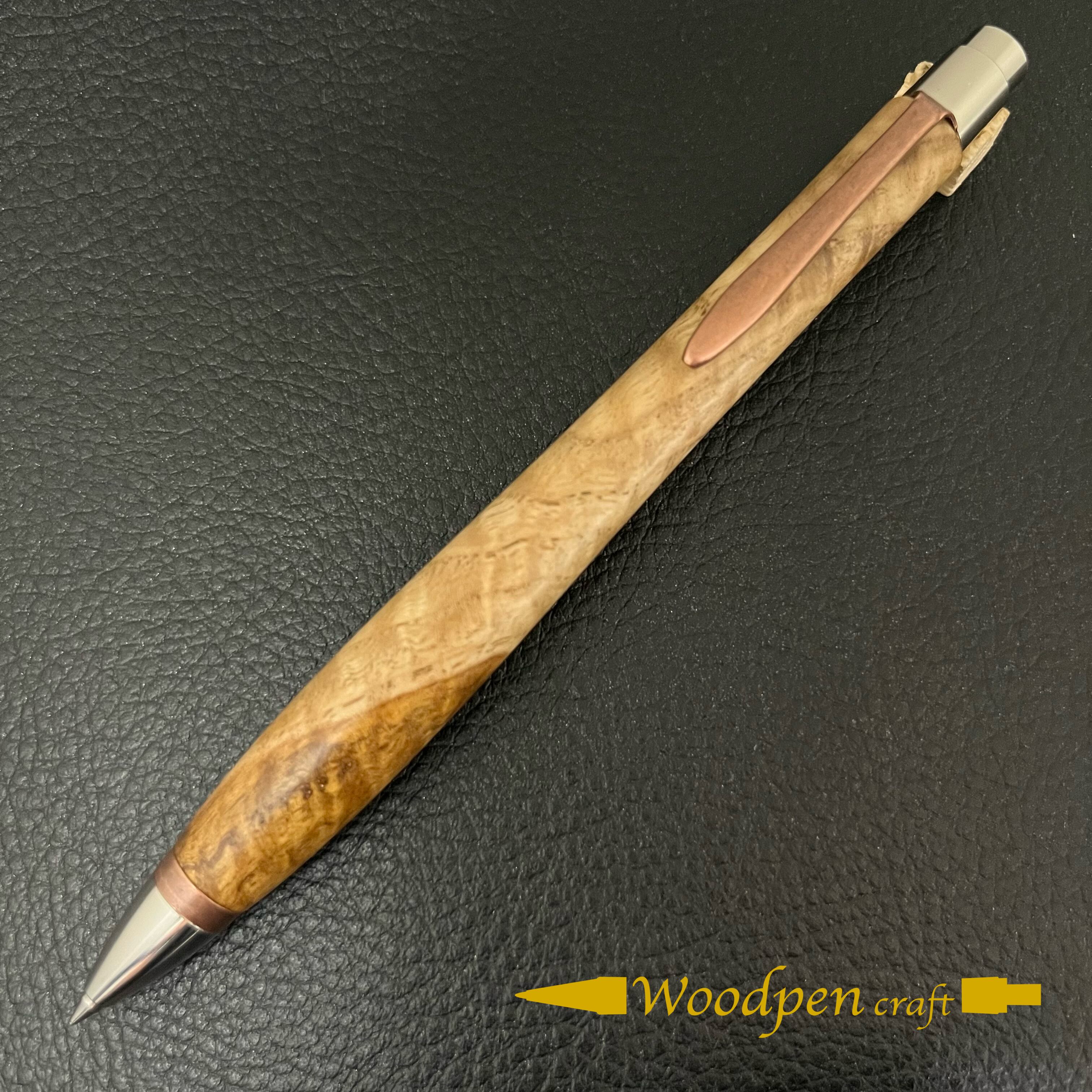 ボールペンのノックシステムは、ドイツ最高のクリックメカニズムを採用してあります。このメカニズムはユニークな機構のため、クリックしたときのカチカチ音が静かで、どんな場所でも気兼ねなく使うことができます。滑らかに動くこのプッシュ感覚を一度味わうと他には戻れなくなってしまうほどの魅力があります。 100分の1単位の加工精度で削り出されたペン先は、軸ブレも全くありません。