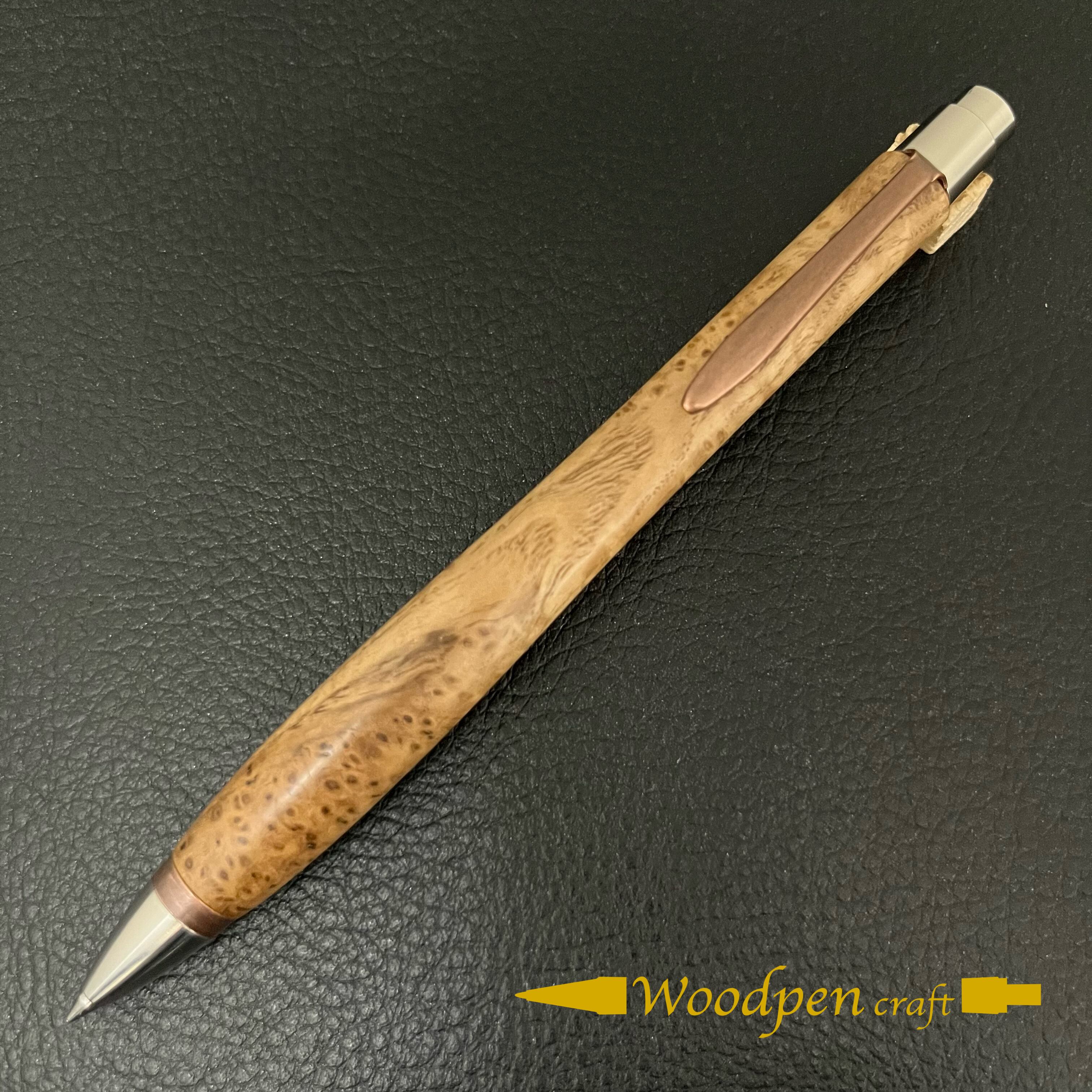 ボールペンのノックシステムは、ドイツ最高のクリックメカニズムを採用してあります。このメカニズムはユニークな機構のため、クリックしたときのカチカチ音が静かで、どんな場所でも気兼ねなく使うことができます。滑らかに動くこのプッシュ感覚を一度味わうと他には戻れなくなってしまうほどの魅力があります。 100分の1単位の加工精度で削り出されたペン先は、軸ブレも全くありません。
