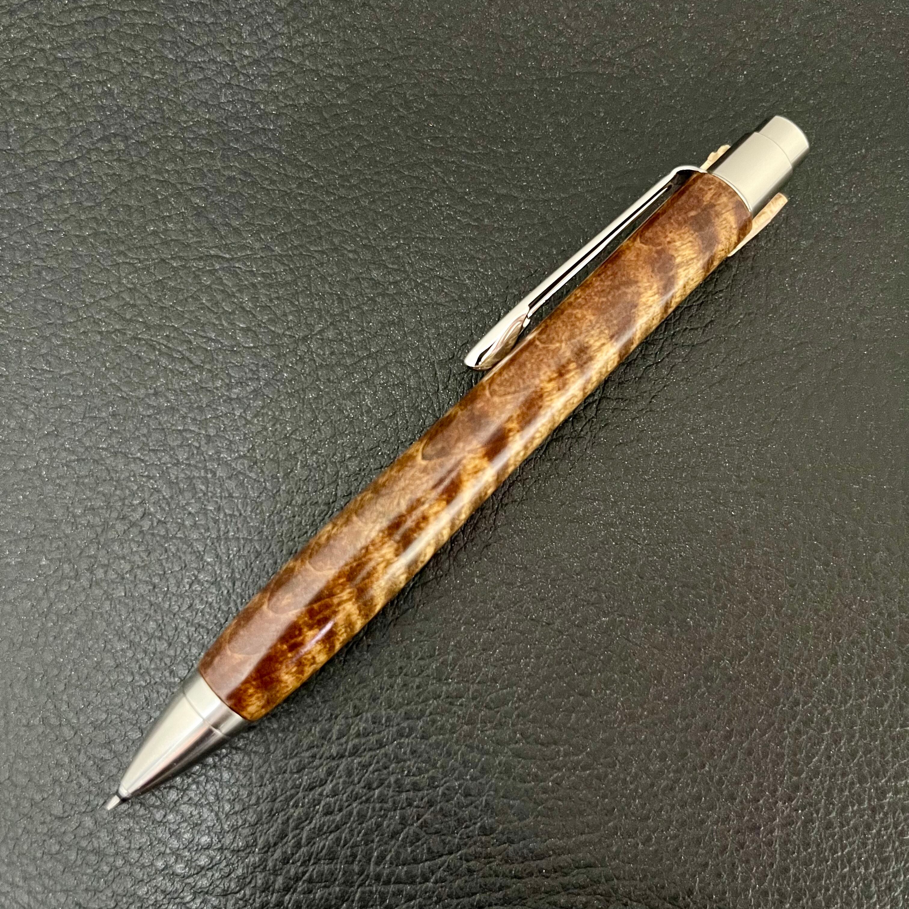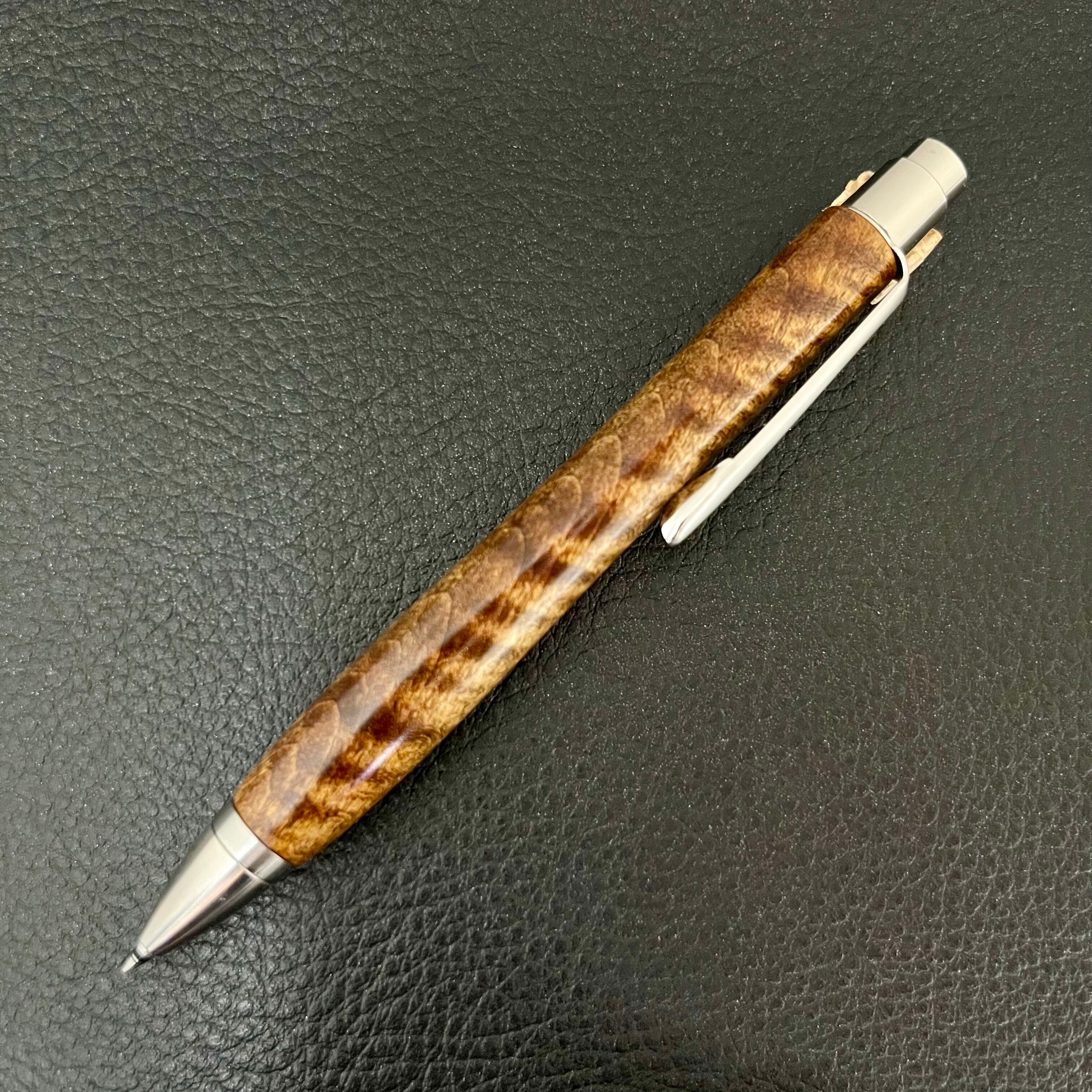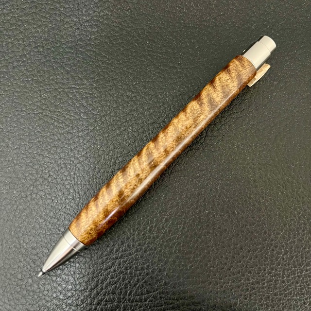 ※楓縮杢国産透漆 大阪の漆塗り職人さんにお願いして、楓縮杢に大変希少な国産漆を、何度も塗り重ねて拭き取る(摺り漆)技法で仕上げた透漆ペンです。
