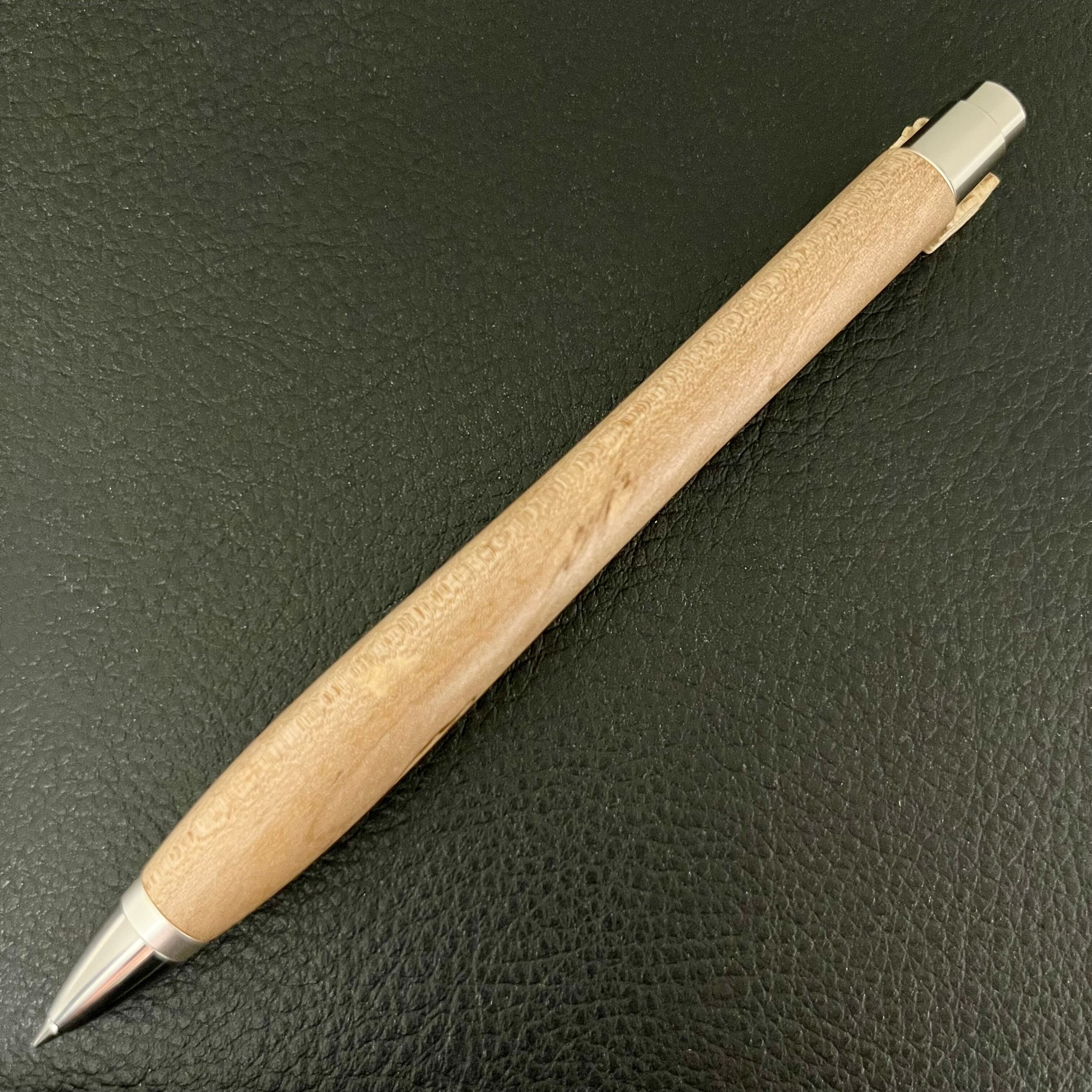 ボールペンのノックシステムは、ドイツ最高のクリックメカニズムを採用してあります。このメカニズムはユニークな機構のため、クリックしたときのカチカチ音が静かで、どんな場所でも気兼ねなく使うことができます。滑らかに動くこのプッシュ感覚を一度味わうと他には戻れなくなってしまうほどの魅力があります。 100分の1単位の加工精度で削り出されたペン先は、軸ブレも全くありません。