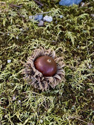 大きな丸い形で帽子がイソギンチャク状のどんぐりがなる樹