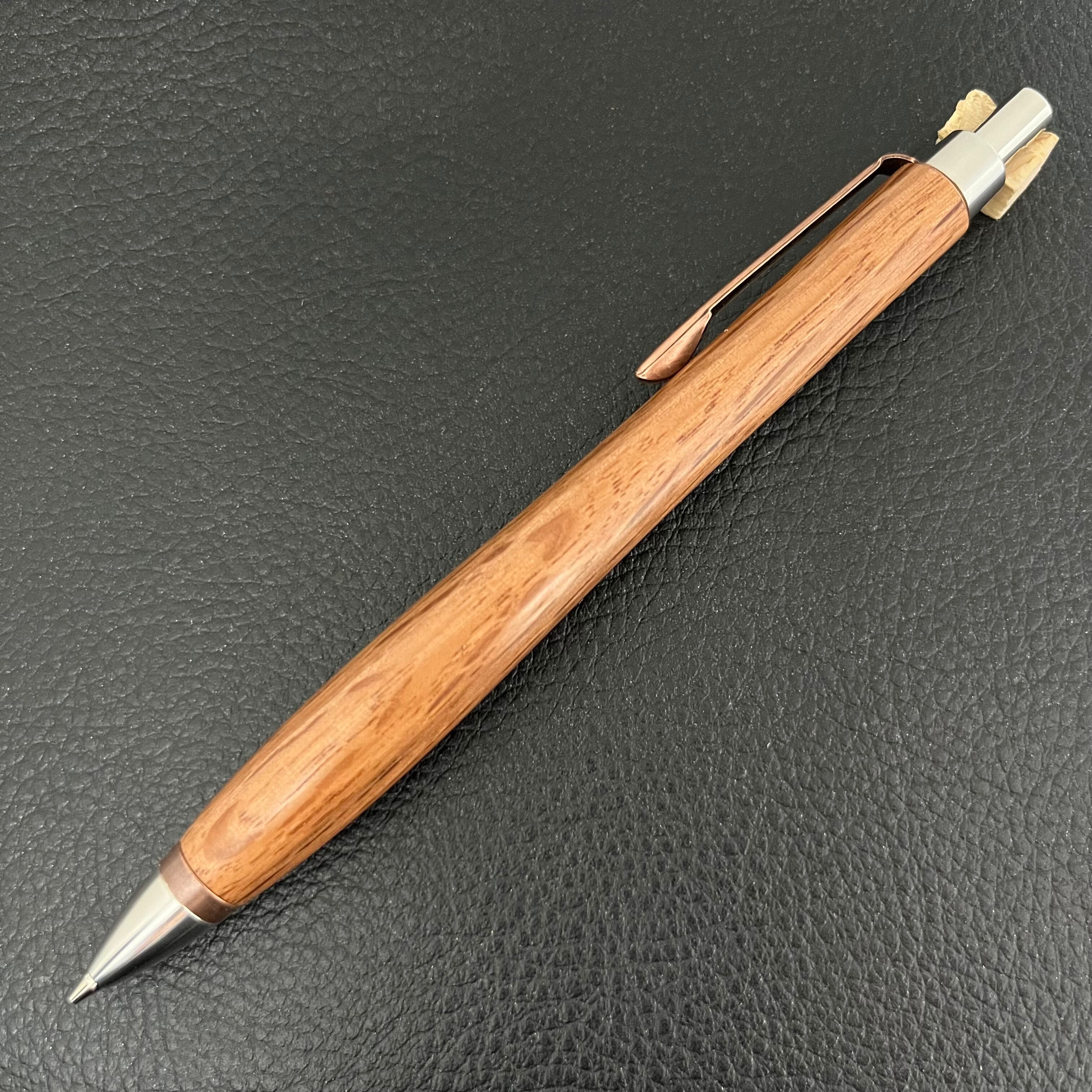 ペンシルは軸ブレが起こりにくい固定式口金を採用し、木の表情を最大限に楽しめる木軸の長さと、書き心地にこだわったバランスで金具を設計してあります。