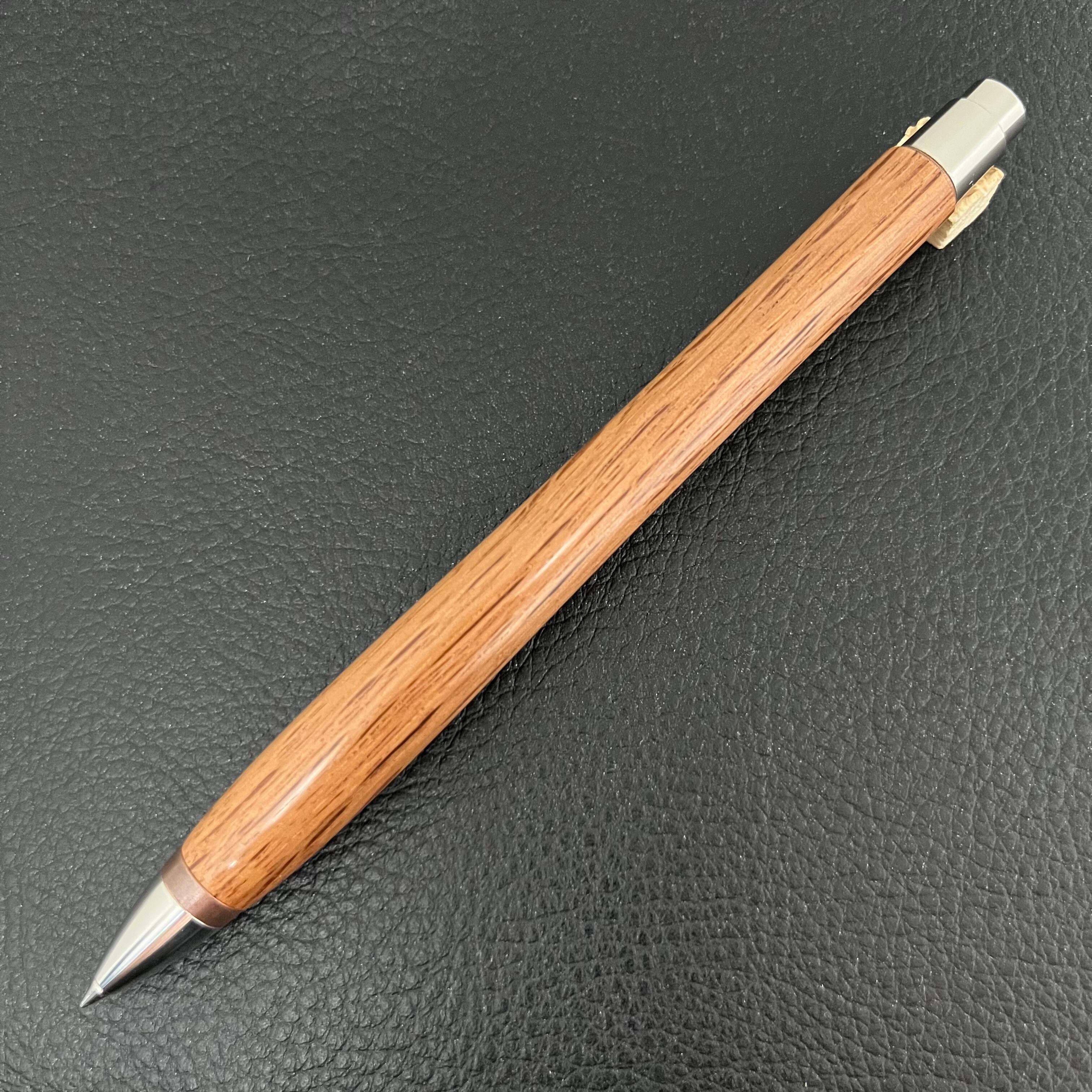 ボールペンのノックシステムは、ドイツ最高のクリックメカニズムを採用してあります。このメカニズムはユニークな機構のため、クリックしたときのカチカチ音が静かで、どんな場所でも気兼ねなく使うことができます。滑らかに動くこのプッシュ感覚を一度味わうと他には戻れなくなってしまうほどの魅力があります。 100分の1単位の加工精度で削り出されたペン先は、軸ブレも全くありません。