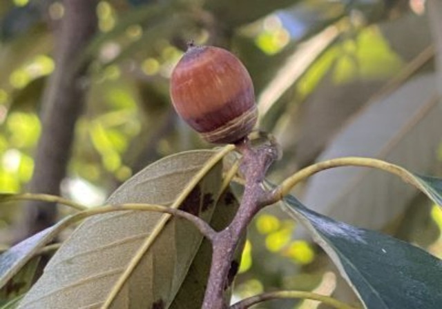 樽のような形で、帽子がシマシマ模様のどんぐりがなる樹「どんぐり22種の1つ」