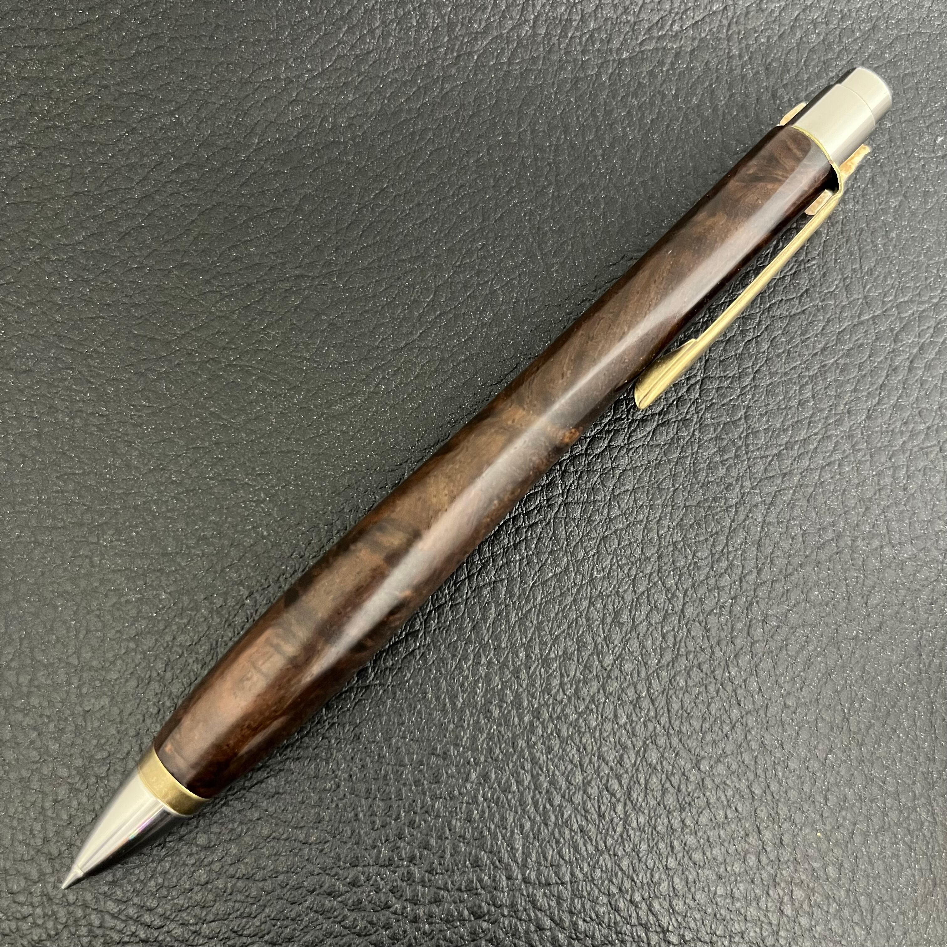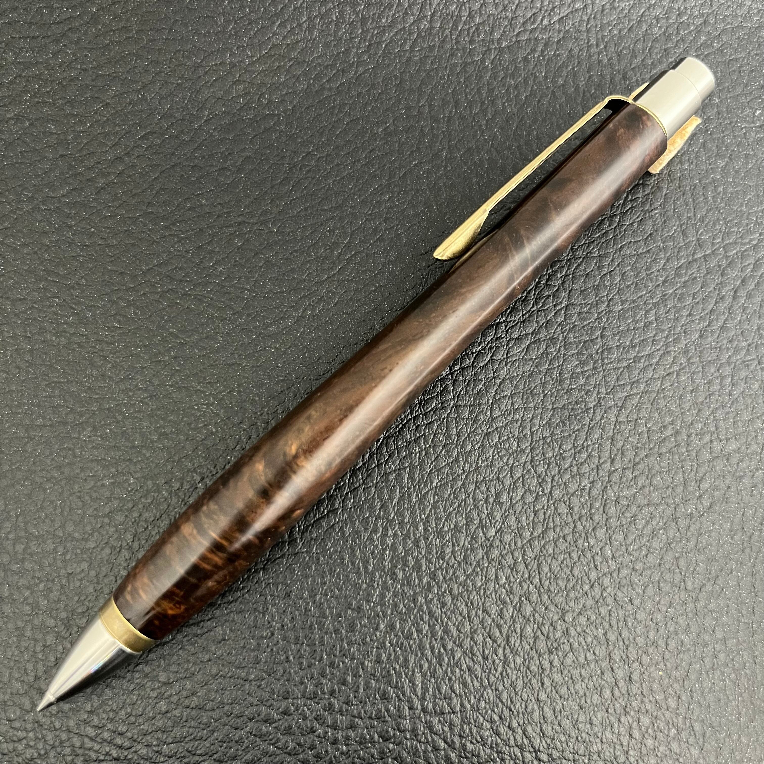 ボールペンのノックシステムは、ドイツ最高のクリックメカニズムを採用してあります。このメカニズムはユニークな機構のため、クリックしたときのカチカチ音が静かで、どんな場所でも気兼ねなく使うことができます。滑らかに動くこのプッシュ感覚を一度味わうと他には戻れなくなってしまうほどの魅力があります。 100分の1単位の加工精度で削り出されたペン先は、軸ブレも全くありません。