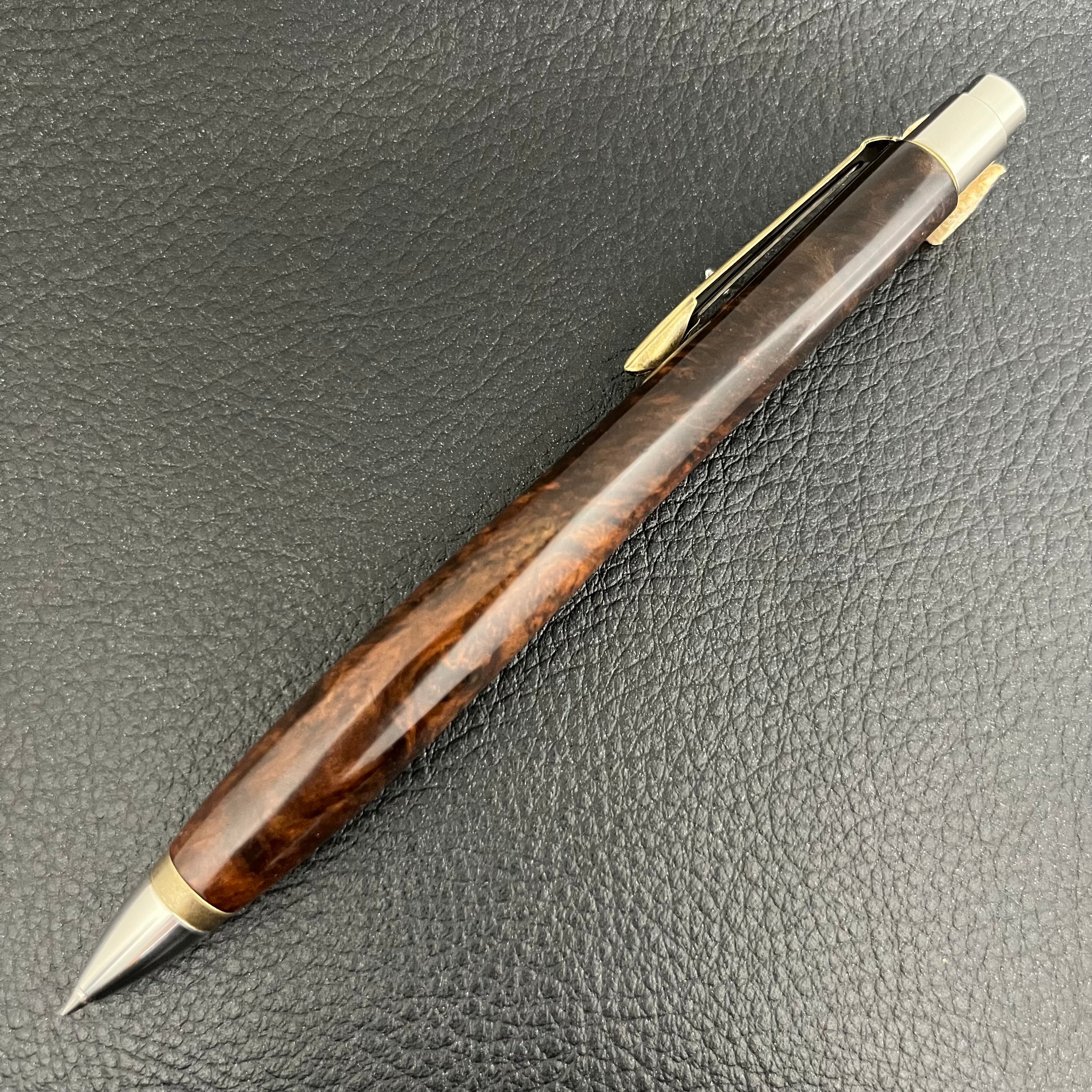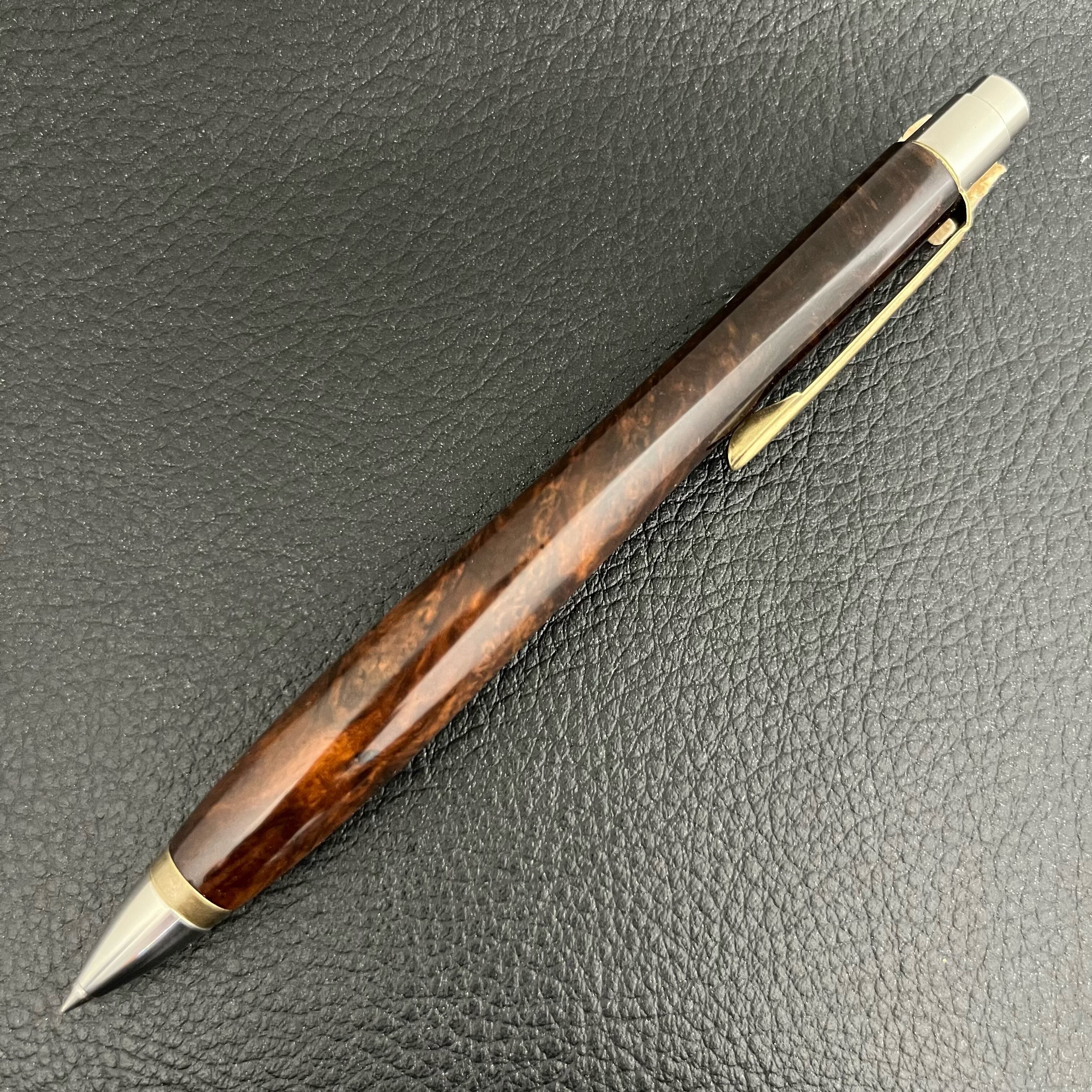 ボールペンのノックシステムは、ドイツ最高のクリックメカニズムを採用してあります。このメカニズムはユニークな機構のため、クリックしたときのカチカチ音が静かで、どんな場所でも気兼ねなく使うことができます。滑らかに動くこのプッシュ感覚を一度味わうと他には戻れなくなってしまうほどの魅力があります。 100分の1単位の加工精度で削り出されたペン先は、軸ブレも全くありません。