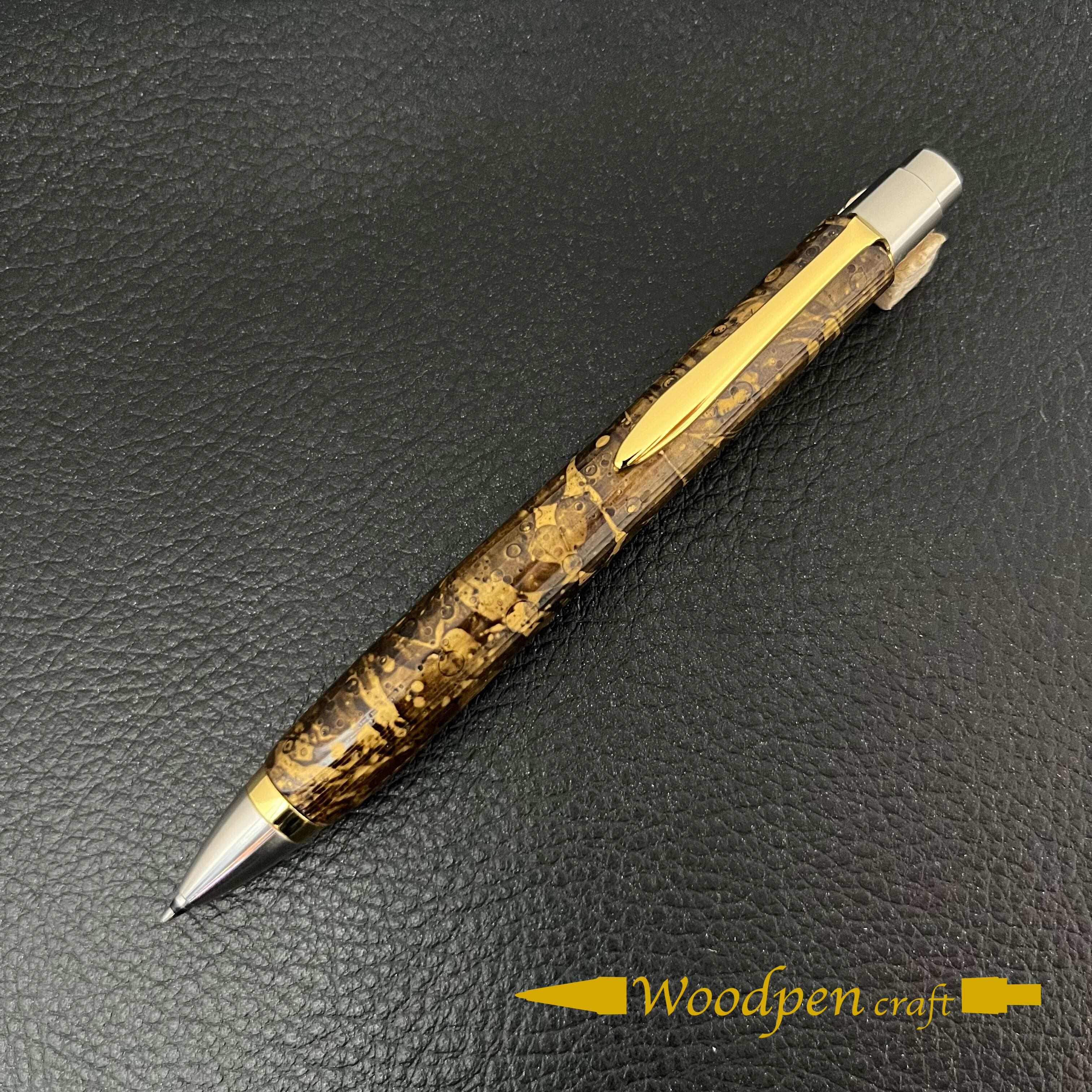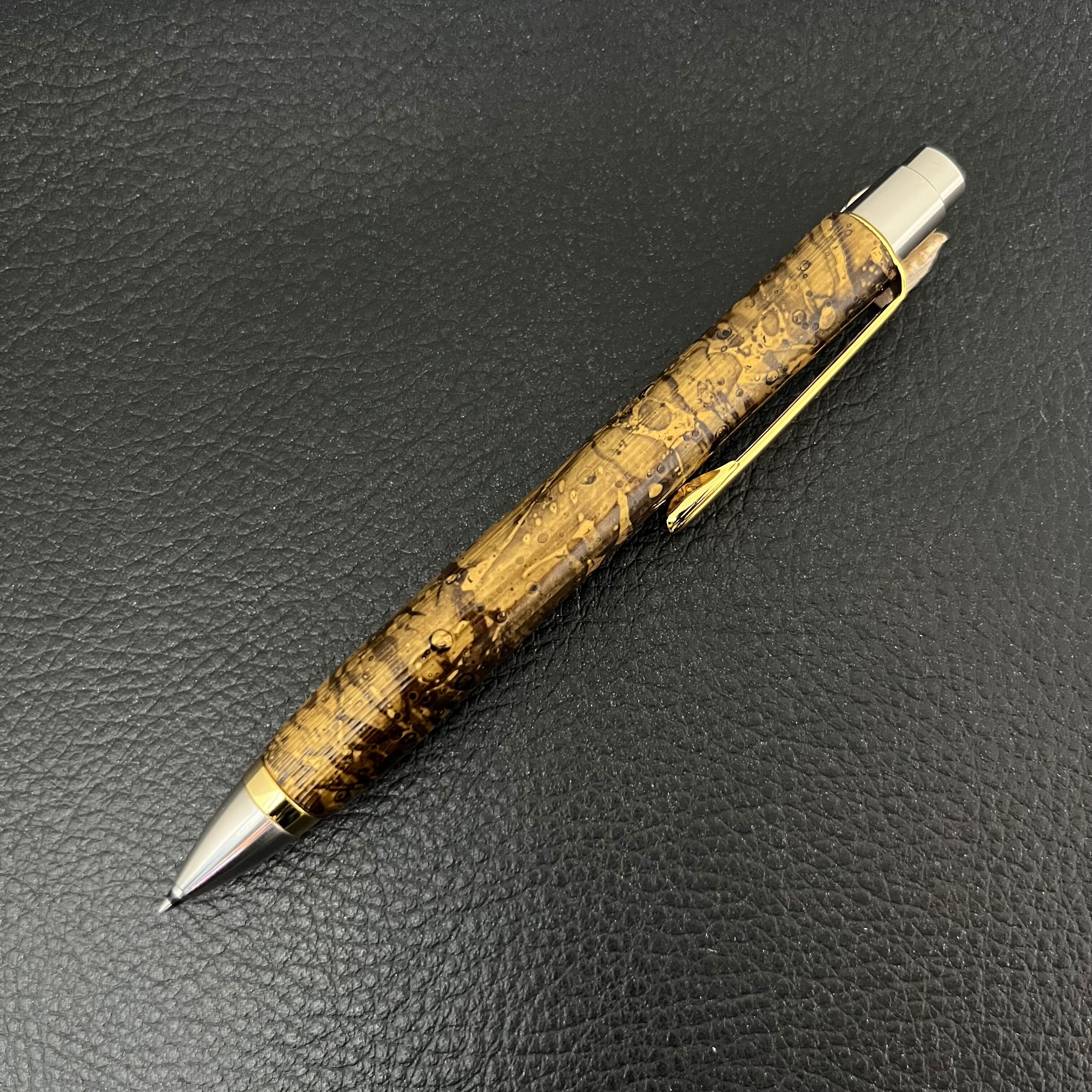 【屋久杉浮造り国産漆流紋・金霞(きんか)-106122121】ショートボールペン(M5手帳サイズ)