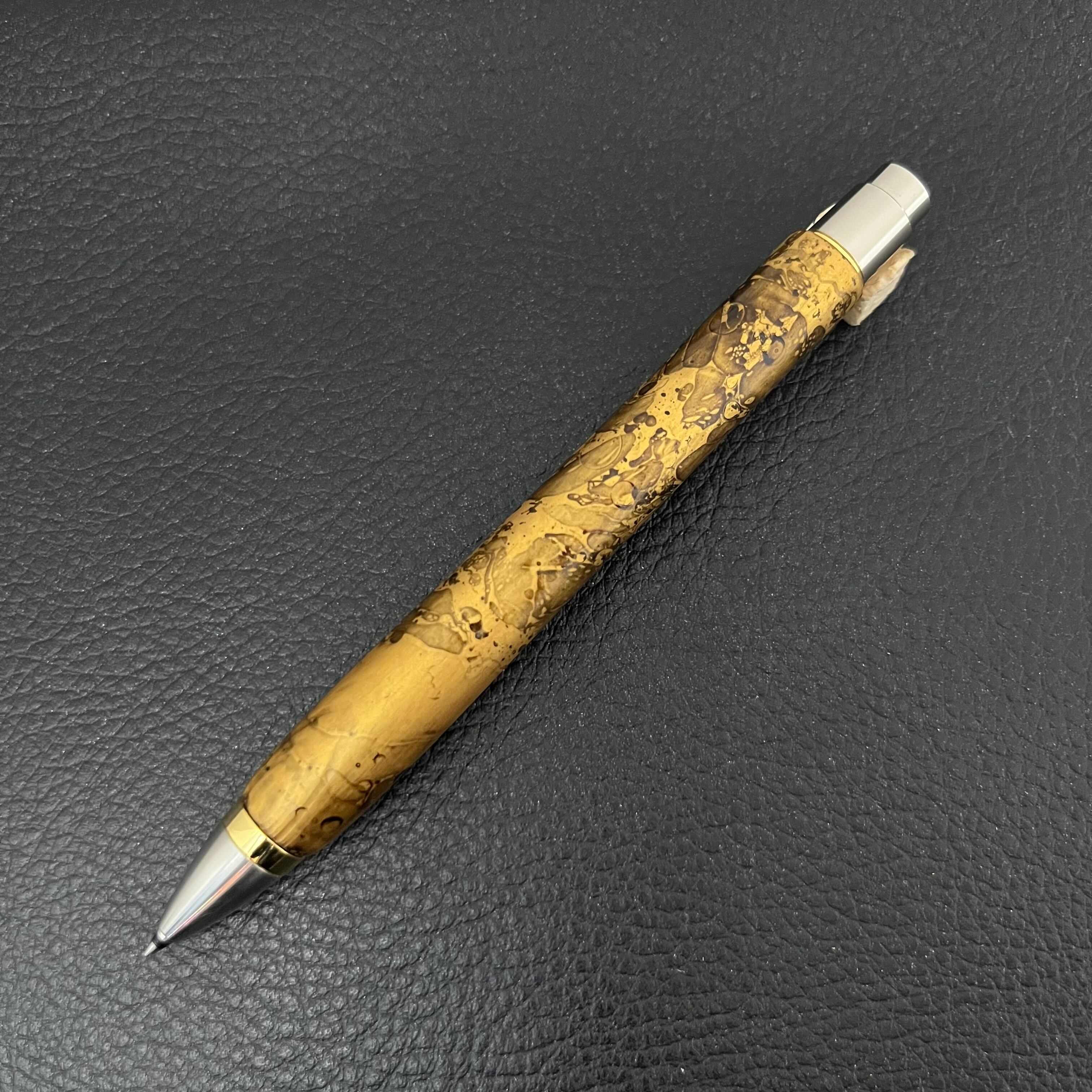 【屋久杉浮造り国産漆流紋・金霞(きんか)-106122122】ショートボールペン(M5手帳サイズ)